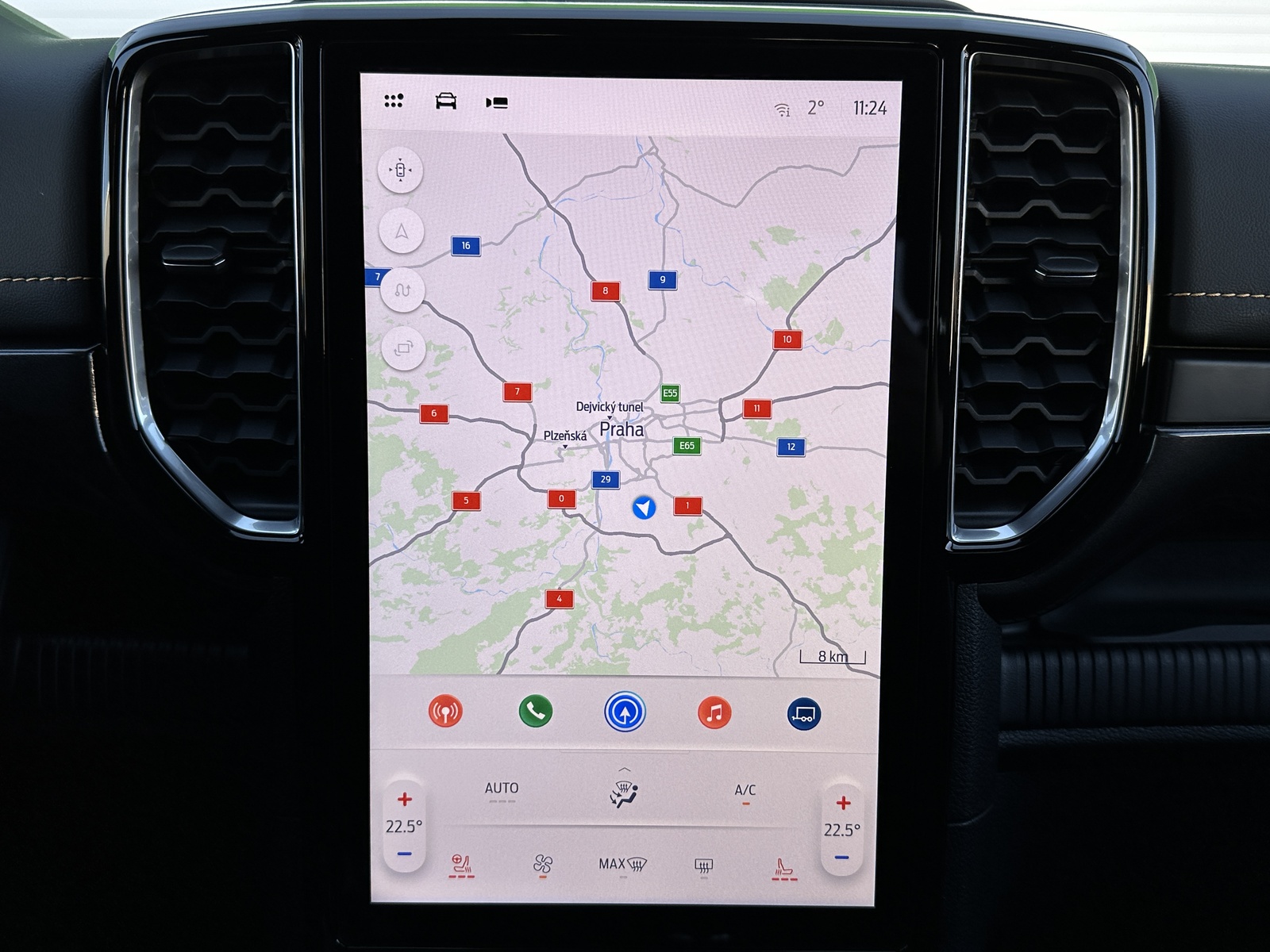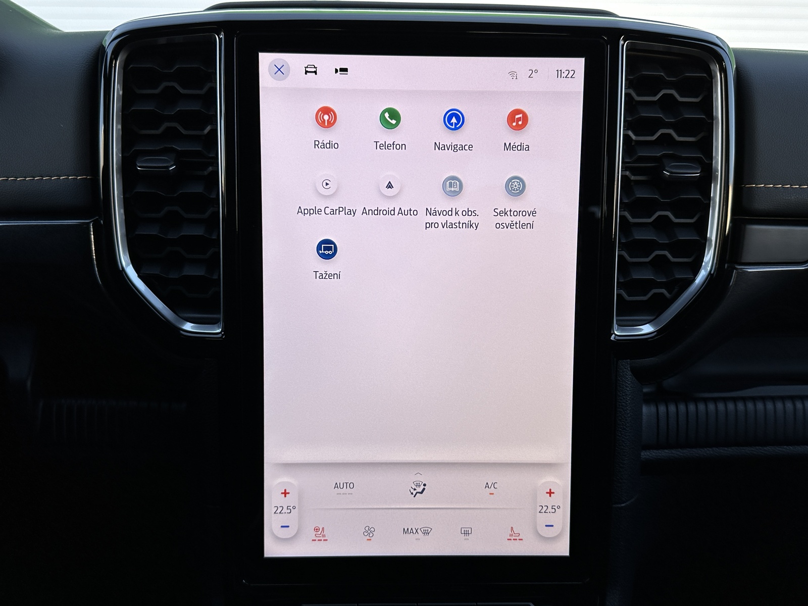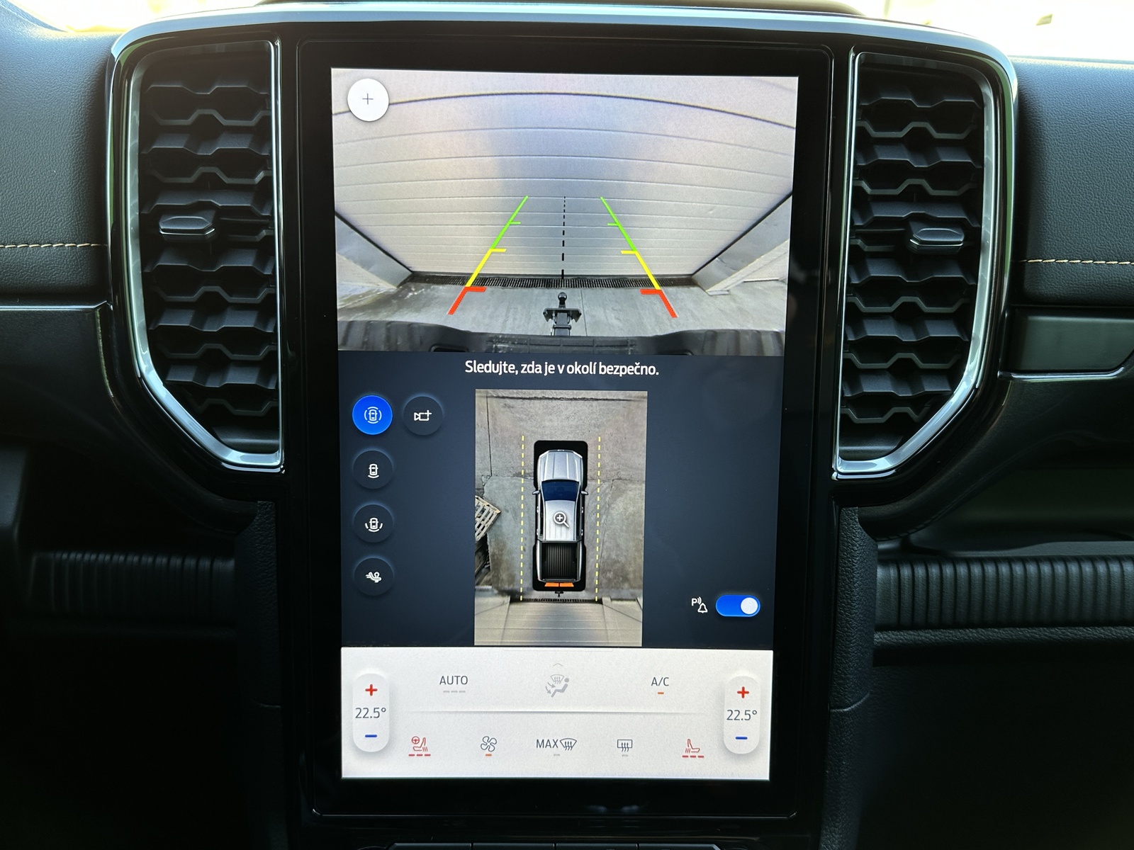 138/10845 Ford Ranger Double Cab Wildtrak 2.0EcoBlue Bi-Turbo 151kW/205PS, 10st. Automatická převodovka, Pohon všech kol 4x4, Tovární záruka Ford Protect 4roky/200.000km, Výbava vozu: Sada Technology Advanced - (360°stupňová kamera s rozděleným obrazem, adaptivní tempomat ACC s inteligentním asistentem rychlosti a funkcí Stop&Go, systém hlídání mrtvého úhlu s optickou signalizací ve vnějších zpětných zrcátkách - BLIS, varování před projíždějícími vozy při couvání z parkovacího místa CTA s aktivním brzděním, systém sledování bdělosti řidiče), Tažné zařízení pevné včetně 13pinové zásuvky - dostupné pouze s automatickou převodovkou, Sada Power Advanced - (podložka bezdrátového nabíjení mobilních telefonů, zásuvka ve 2. řadě a v korbě pro napájení spotřebičů 230 V / 400 W, spínače ovládané zevnitř kabiny pro připojení příslušenství - navijáku nebo světel), Sada Audio 106 - (SYNC 4A s 12" dotykovým displejem a konverzačním rozpoznáváním hlasu, navigační systém s online cloudovým připojením, rozšířený o aktuální informace o dopravě a bodech zájmů (předplatné Connected Nav je 1 rok od počátku záruky vozu), bezdrátové připojení Android Auto nebo Apple CarPlay, 10 prémiových reproduktorů B&O, příjem DAB - rozhlasové digitální vysílání), Elektrické ovládání zadních oken jedním stiskem, Elektricky ovládaný rolovací kryt hliníkový ve stříbrném provedení, 8x Airbag, Možnost deaktivace airbagu spolujezdce, ISOFIX i-Size ve druhé řadě sedadel pro Double Cab, Elektronický stabilizační systém ESP včetně protiblokovacího systému ABS, Asistent pro rozjezd do kopce a sjezd z kopce, Funkce stabilizace přívěsu, Varování při nouzovém brzdění, Elektronická automatická uzávěrka zadního diferenciálu, Asistenční systémy - (adaptivní tempomat ACC, Pre-Collision Assist (PCA) - předkolizní asistent snižuje riziko nehody s chodcem, cyklistou nebo jiným vozem, Automatická aktivace brzd po nárazu - snížení pravděpodobnosti dalších střetů, Funkce rozpoznávání dopravních značek omezujících rychlost, Systém udržování v jízdním pruhu, Asistent vyhýbacího manévru), Zadní parkovací kamera, Zadní parkovací senzory s funkcí brzdění při couvání, Přední parkovací senzory, Sada Winter - (vyhřívaná přední sedadla, vyhřívaný volant obštý vinylem), FordPass Connect - (vestavěný modem s připojením 4G/LTE, vzdálené ovládání vozidla pomocí mobilní aplikace FordPass, online aktualizace softwaru vozidla OTA včetně mapových podkladů - pouze v kombinaci s vestavěným navigačním systémem, možnost rozšířené konektivity díky předplatným FordPass - např. služba pomoci při odcizení vozidla Ford Secure, dopravní informace Local Hazard Information a další, eCall - tlačítko SOS pro automatické i vyžádané nouzové volání), 8" digitální přístrojový panel, Automatická dvouzónová klimatizace s výdechy pro druhou řadu pro Double Cab, Sektorové osvětlení 360 - 4 zóny okolo vozu, Sada Off-Road Security - (Off-Road asistence řidiče na obrazovce SYNC 4A - kromě XL a XLT, ochrana pod motorem a rozvodovkou včetně krytu palivové nádrže, elektronicky ovládaná mechanická uzávěrka diferenciálu zadní nápravy), Terrain Management System - volitelné jízdní režimy, e-4WD - přiřaditelný pohon všech kol manuálně volený (4L/4H), navíc s možností volby stálého pohonu všech kol (4A), Volič automatické převodovky e-Shifter, Elektronická parkovací brzda, Elektrické ovládání předních oken jedním stiskem, Elektrické ovládání zadních oken, Stěrače s dešťovým senzorem včetně akustické fólie čelního skla, Vyhřívané čelní sklo, Vyhřívané zadní sklo, Obvodový alarm s prostorovým senzorem a senzorem náklonu včetně záložní baterie pro napájení klaksonu, Systém KeyFree - vstup do vozu a startování bez použití klíče, Dva sklopné klíče s dálkovým ovládáním centrálního zamykání, Ford Easy Fuel - bezzátkový systém doplňování paliva, Kůže Micro Rib - kombinované čalounění sedadel kůže/vinyl v černé Ebony, Vyhřívaná přední sedadla, Sedadlo řidiče elektricky nastavitelné v 8 směrech, Sedadlo spolujezdce manuálně nastavitelné ve 4 směrech, Středová loketní opěrka pro přední sedadla, Vyhřívaný volant, Hlavice řadicí páky obšitá kůží, Loketní opěrka čalouněná vinylem, Výplně dveří čalouněné vinylem, Stropní konzola se schránkou na brýle a lampičkami na čtení, Čalounění stropu tmavé, Ambientní interiérové osvětlení, Vnitřní zpětné zrcátko s automatickým zatmíváním, USB vpředu a vzadu, 12V zásuvka vpředu a vzadu, Elektronický zámek korby, Osvětlení korby, Vnitřní úchytná oka korby, Podélné ližiny korby, Ochranná vana nákladového prostoru, Wildtrak exteriérová sada - (lakovaná vnější zpětná zrcátka, část předního nárazníku a zadní nárazník v antracitové barvě, lakované kliky dveří v barvě karoserie), Přední lapače nečistot, Zadní lapače nečistot, Schůdek do nákladového prostoru vlevo a vpravo, Střešní podélné ližiny, Aerodynamický ochranný rám za kabinou, Zadní tmavě tónovaná skla Privacy, Elektricky ovládaná, vyhřívaná a sklopná vnější zrcátka s osvětlením nástupního prostoru, Denní svícení, Automatické přepínání dálkových světel, Přední LED světlomety s LED denním svícením, Přední LED mlhové světlomety, Zadní LED světlomety, Systém Stop-Start, Kola z lehkých slitin D2UFA 18" x 7.5" - pneumatiky 255/65 R18 All-season, 18" hliníkové rezervní kolo, Monitoring tlaku v pneumatikách, Nový vůz s registrací, Servisní kniha + dokumentace Ford, Možnost odpočtu DPH 21%, Skladem - ihned k odběru.