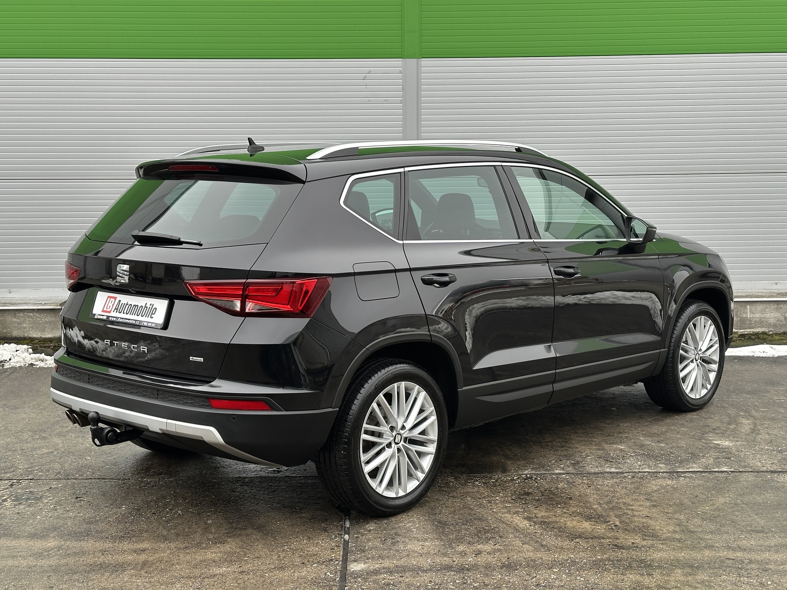 16/11084 Seat Ateca Xcellence 2.0TDi 4Drive DSG 140kW/190PS, 7st. Automatická převodovka DSG, Pohon všech kol 4x4, Výbava vozu: Nezávislé topení – Webasto, Panoramatický kamerový systém – 360° KAMERA, Tažné zařízení sklopné – elektricky odjistitelné, Potah sedadel – Alcantara/KŮŽE, Bi-LED hlavní světlomety s automatickou regulací sklonu při jízdě do zatáčky, Infotainment s Navigací, Adaptivní tempomat – ACC, Kožený sportovní multifunkční volant s pádly řazení pod volantem, Volba jízdních režimů, Uzávěrka diferenciálu XDS – dynamická pomoc pro zlepšení trakce, KESSY – bezklíčové zamykání a startování, Vyhřívání předních sedadel, Vyhřívané čelní sklo, Dvouzónová automatická klimatizace Climatronic, Kola z lehkých slitin ALU Seat 7Jx18", Parkovací senzory vzadu – PDC/Z, Front Assist – asistent varování a brzdění při hrozící kolizi s vozidly, chodci a cyklisty, Senzor únavy řidiče, Senzor tlaku v pneumatikách, Senzor světla a deště, Vnitřní zpětné zrcátko s automatickým zatmavováním, Vnější zpětná zrcátka elektricky sklopná a nastavitelná – vyhřívaná, Sunset – zatmavená zadní okna, Střešní nosič, Dvojitá podlaha v zavazadlovém prostoru, Bederní opěrky v předních sedadlech, Výškově nastavitelná přední sedadla, Loketní opěrka vpředu, Zadní loketní opěrka, Vnitřní osvětlení prostoru nohou vpředu i vzadu, Elektrické stahování oken vpředu i vzadu, Hlavice řadicí páky a madlo ruční brzdy z kůže, Mlhové světlomety, Ostřikovače předních světlometů, Vyhřívané trysky ostřikovače čelního skla, Elektronický program stability – ESP, Start/Stop systém, Palubní počítač, 7× airbag, Isofix, Sada na opravu pneumatik, Mirror Link – zrcadlení aplikací z telefonu do infotainmentu vozidla, Hlasové ovládání, Bluetooth, SD, USB, Servisní kniha + kompletní dokumenteca, Pravidelné servisní prohlídky Seat SERVIS, 2x Klíč + 1x Ovladač Webasto. Skladem - ihned k odběru.