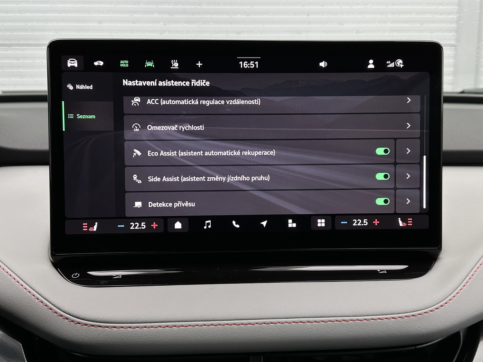 ABS, adaptivní tempomat, airbag, alarm, Ambientní LED osvětlení interiéru, Android Auto, Apple Car Play, Asistent pro jízdu v koloně, Asistent pro odbočování, Asistent pro vedení vozu v jízdních pruzích, asistent rozjezdu do kopce, Asistent udržování odstupu, Asistent změny jízdního pruhu, automatická klimatizace, automatická převodovka, automatické svícení, autorádio, Bezdrátová nabíječka mobilních telefonů (Qi), bezklíčkové ovládání, bluetooth, centrální zamykání, dálkové centrální zamykání, deaktivace airbagu spolujezdce, dělená zadní sedadla, Denní svícení, Digitální příjem rádia (DAB), Digitální přístrojová deska, Dotykové ovládání palubního počítače, Elektrické dovírání zavazadlového prostoru, Elektrické tažné zařízení, Elektrochromatické vnitřní zpětné zrcátko, el. ovládání oken, el. ovládání zrcátek, el. ovládaný kufr, El. parkovací brzda, el. sklopná zrcátka, el. startér, ESP, Hlasové ovládání palubního počítače, hlídání mrtvého úhlu, imobilizér, isofix, kožené čalounění, LED adaptivní světlomety, LED denní svícení, LED matrixové světlomety, LED světlomety plnohodnotné, litá kola, Malý kožený paket, mlhovky, Mobilní připojení, multifunkční volant, nastavitelná sedadla, nastavitelný volant, natáčecí světlomety, navigační systém, nouzové brždění, originál autorádio, Originální autorádio, otáčkoměr, palubní počítač, parkovací kamera, parkovací senzory, Parkovací senzory přední, Parkovací senzory zadní, podélný posuv sedadel, posilovač řízení, Prediktivní tempomat, protiprokluzový systém kol (ASR), přídavná světla, Přístrojová deska s barevným displejem, rádio, Rozpoznávání dopravních značek, satelitní navigace, senzor opotřebení brzd. destiček, senzor stěračů, senzor tlaku v pneumatikách, sledování jízdního pruhu, sledování únavy řidiče, Start/Stop systém, střešní nosič, Systém nouzového zastavení, tažné zařízení, tempomat, Tepelné čerpadlo, tónovaná skla, USB, venkovní teploměr, vnitřní teploměr, Volba jízdního režimu, vyhřívaná sedadla, Vyhřívaná zadní sedadla, vyhřívaná zrcátka, vyhřívané čelní sklo, vyhřívaný volant, výsuvné opěrky hlav, výškově nastavitelná sedadla, výškově nastavitelné sedadlo řidiče, Zadní loketní opěrka, zadní mlhovka, zadní stěrač, záruka, zaslepení zámků, Zatmavená zadní skla, závěsné zařízení v TP