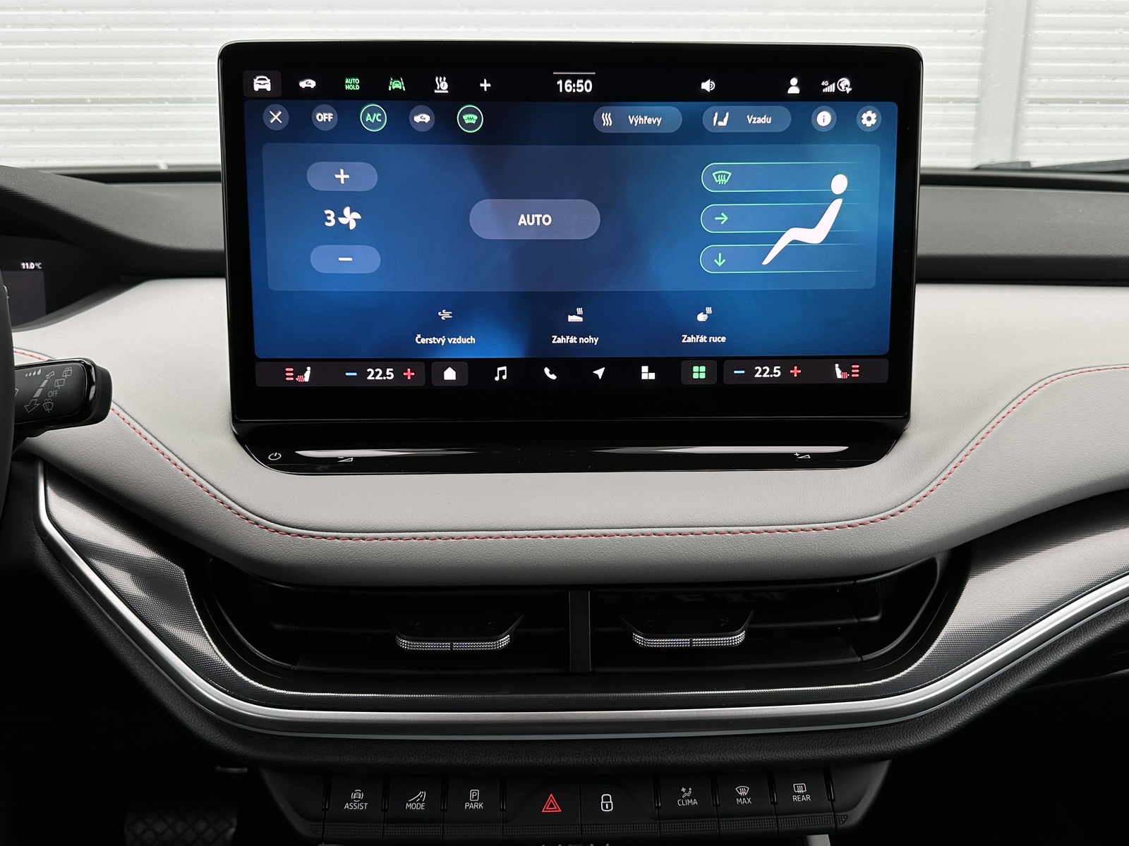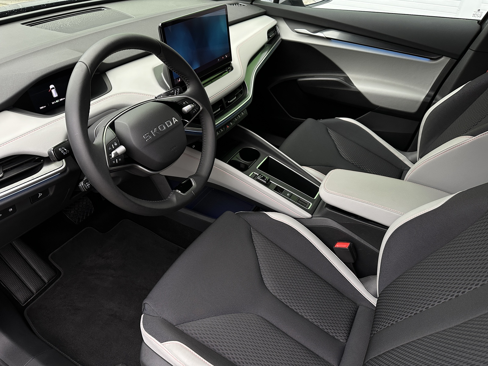 266/10791 Škoda Elroq iV 85 Premium 210kW/286PS, Tovární záruka Škoda Auto 5let/100.000km, Výbava vozu: Paket PREMIUM – (Asistovaná jízda 1.5 PLUS – (Prediktivní tempomat, Adaptivní vedení v jízdním pruhu - Lane Assist+), KESSY s alarmem, Bezdrátové nabíjení pro Smartphone, Akustická přední boční skla, Sunset - zatmavená zadní okna, Elektrická dětská pojistka, USB-C vzadu, Matrix-LED světlomety s funkcí pro špatné počasí, Top LED zadní světla, Virtuální pedál - otevírání víka kufru pohybem nohy pod zavazadlovým prostorem, Boční airbagy vzadu, Paket KLIMA PLUS – (Třízónová automatická klimatizace Climatronic, Vyhřívání sedadel vpředu i vzadu, Vyhřívané čelní sklo), Tepelné čerpadlo – pouze pro model 85), Tažné zařízení sklopné - el. odjistitelné, Kola z lehkých slitin ALU Škoda "VEGA AERO" 8Jx20" vpředu, 9Jx20" vzadu, Interiér Lodge - Látka/kůže, Ambiente LED osvětlení,Volba jízdního režimu, Vyhřívaná přední sedadla, Multifunkční vyhřívaný kožený volant, Infotainment s navigací 13", Zadní loketní opěrka s držákem nápojů, Deštník ve dveřích řidiče, Příprava pro tažné zařízení, Světelný a dešťový senzor, Elektrická okna vpředu i vzadu, Výškově nastavitelná přední sedadla s bederní opěrkou, Automatické stmívání vnitřního zpětného zrcátka, Vnější zpětná zrcátka elektricky nastavitelná a sklopná - vyhřívaná, Elektronická parkovací brzda, LED světlomety, LED zadní světla, Zadní parkovací kamera, Parkovací senzory vpředu i vzadu, Front Assist – varování a brzdění při hrozící kolizi s vozidly, chodci a cyklisty, Asistent pro průjezd křižovatkou, Prediktivní tempomat, Antikolizní asistent, Asistent udržování jízdního pruhu – Lane Assist, Asistent sledování mrtvého úhlu – Side Assist, Rozpoznávání dopravních značek s dohledem nad rychlostí ISA, Rozpoznání únavy, 7x airbag, Proaktivní ochrana cestujících, 2x i-Size a 2x Top Tether vzadu, 1x i-Size pro spolujezdce, Startování tlačítkem, centrální zamykání s dálkovým ovládáním, 2x USB-C vpředu, 12V zásuvka v zavazadlovém prostoru, Virtual Cockpit, Přední loketní opěrka, Kontrola tlaku v pneumatikách, Nabíjecí kabel Mode 3 Typ 2 (16 A), Bluetooth, Smartlink, 8 reproduktorů, Nouzové volání SOS – eCall, Digitální asistentka Laura, Zánovní vůz, Servisní kniha + dokumentace Škoda Auto, Možnost odpočtu DPH 21%, Skladem - ihned k odběru.