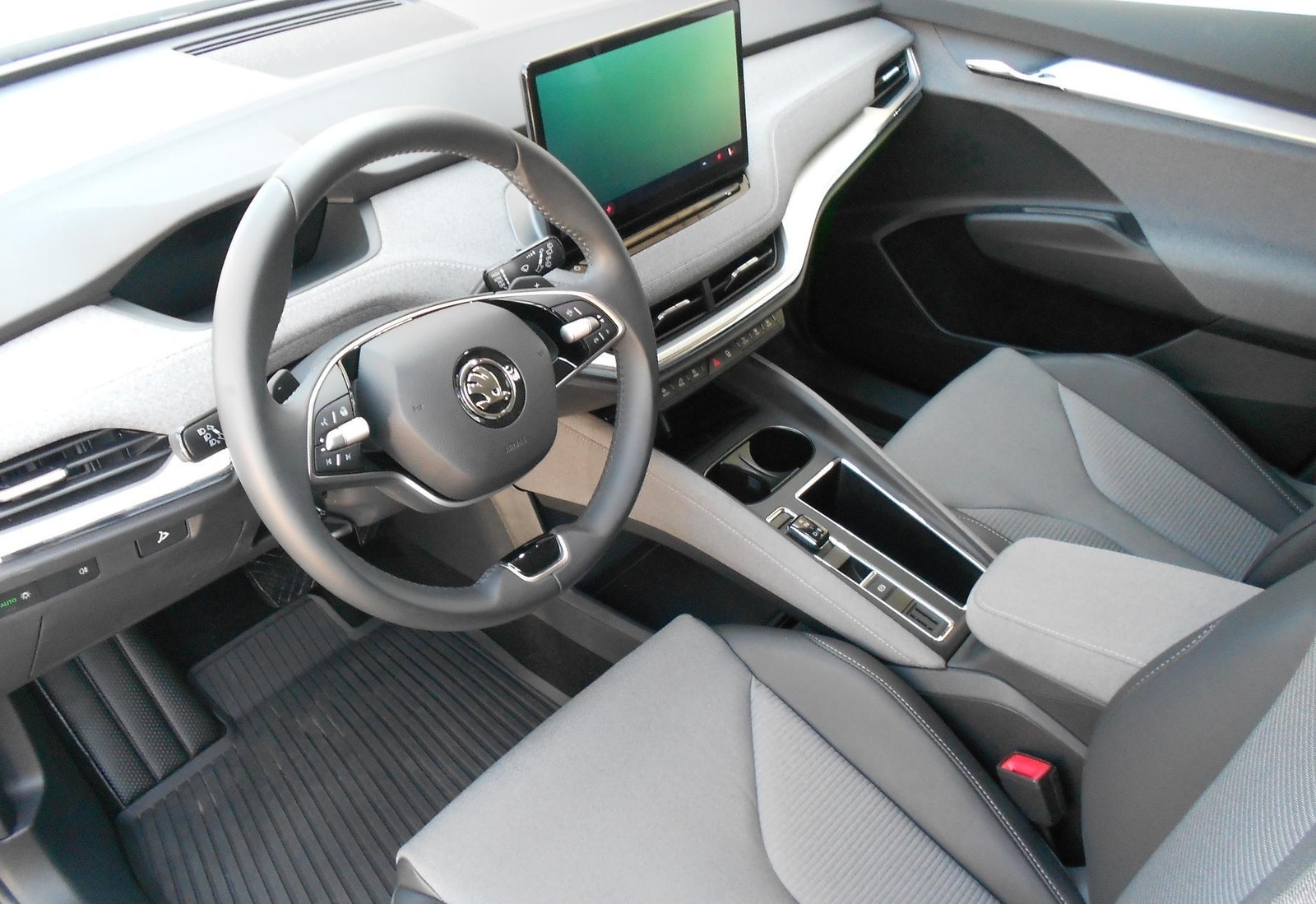 306/11045 Škoda Enyaq iV 50 Tour 125kW/170PS, Automatická převodovka, Tovární záruka Škoda Auto 5let/100.000km, Výbava vozu: Tažné zařízení sklopné - el. odjistitelné, Kola z lehké slitiny Proteus 8Jx19" stříbrná, Interiér Loft - potah sedadel - látka, Ambientní LED osvětlení, Střešní nosič, LED přední světlomety, LED zadní světla, Rozpoznávání dopravních značek, Rozpoznání únavy řidiče, Parkovací kamera vzadu - KAMERA, Parkovací senzory vpředu a vzadu - PDC P/Z, 7x airbag, 2x ISOFIX a 2x Top Tether vzadu, Front Assist - s upozorněním a zabržděním při hrozící kolizi s vozidly, chodci a cyklisty, Výstražná světla při prudkém brzdění, Lane Assist - Asistent udržování jízdního pruhu, Asistovaná jízda 1.0 - (Adaptivní tempomat ACC, Side Assist - Hlídání mrtvého úhlu, Asistent při jízdě v koloně), KESSY - bezklíčové zamykání a startování, 2x USB-C 12V zásuvka v zavazadlovém prostoru, Virtuální kokpit 5,3", Loketní opěrka vpředu Jumbo Box, Loketní opěrka vzadu s držákem nápojů, Příprava pro tažné zařízení, Kontrola tlaku v pneumatikách, Propojovací kabel Mennekes, 11 kW AC nabíjení, DC rychlé nabíjení z 10 na 80% za 25 minut, Family paket - (Rolety zadních oken, 230V zásuvka + 2x USB-C vzadu, Odkládací přihrádka pro zadní sedadla), Světelný a dešťový senzor, Automatické stmívání pro vnitřní zpětné zrcátko, Multifunkční vyhřívaný kožený volant, Sluneční clony s make-up zrcátky u řidiče a spolujezdce, Pádla řazení pod volantem, Vnější zpětná zrcátka, el. stavitelná a sklopná - vyhřívaná, Elektrické ovládání oken vpředu a vzadu, Třízónová automatická klimatizace Climatronic, Elektronická parkovací brzda s funkcí Auto Hold, Výškově nastavitelná přední sedadla s bederními opěrami, Sunset - zatmavená zadní okna, Vyhřívaná přední sedadla, Infotainment 13" - Bluetooth, Web rádio, Digitální asistentka Laura, 8 reproduktorů, Bezdrátové nabíjení telefonu, Navigace, Smartlink - zrcadlení aplikací z telefonu na Infotainment vozidla, Tísňové volání SOS eCall+, Servisní kniha + dokumentace Škoda Auto, Koupeno NOVÉ ČR, Možnost odpočtu DPH 21%, Skladem - ihned k odběru.