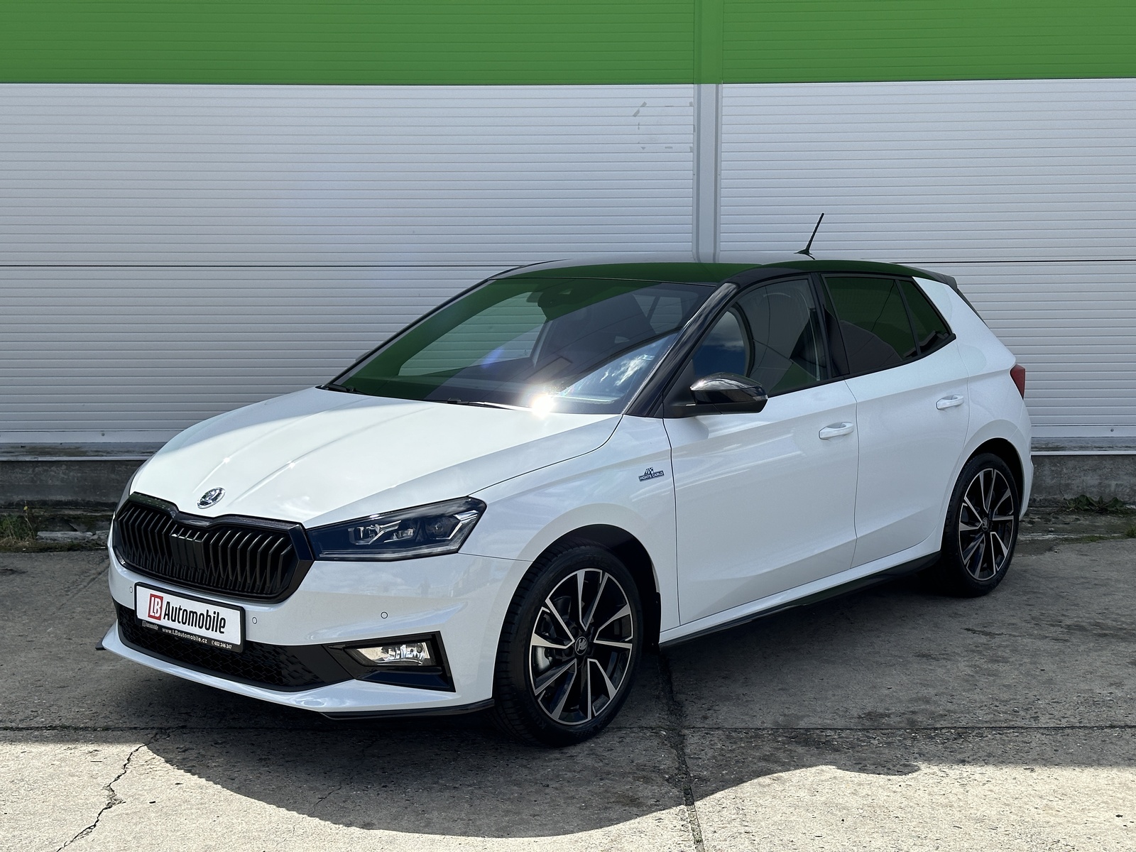 304/10898 Škoda Fabia Monte Carlo 1.0TSi 85kW/116PS, 6.st Manuální převodovka, Tovární záruka Škoda Auto 5let/100.000km, Výbava vozu: Paket Asistovaná jízda 1.5 PLUS - (Adaptivní tempomat - ACC, Asistent hlídání mrtvého úhlu - Side Assist, Adaptivní asistent pro udržování jízdního pruhu – Lane Assist+), Vyhřívané čelní sklo, Kola z lehkých slitin ALU Škoda "PROCYON" 7Jx17" Černá/Leštěná, Parkovací kamera vzadu, Parkovací senzory přední a zadní - PDC P/Z, Asistent varování a brzdění při hrozící kolizi s vozidly, chodci a cyklisty - Front Assist, Asistent rozpoznání únavy řidiče, Asistent rozjezdu do kopce, Rozpoznávání dopravních značek, Systém Start/Stop, Volba jízdního režimu, Bezklíčové odemykání a startování - KESSY, Dvouzónová automatická klimatizace - Climatronic, Vyhřívaný multifunkční kožený volant pro DSG s pádly pod volantem - výškově a podélně nastavitelný, Kožená hlavice řadicí páky a madlo ruční brzdy, Sportovní vyhřívaná přední sedadla s oddělenou regulací, Bederní opěrky na předních sedadlech, Výškově nastavitelné sedadlo řidiče a spolujezdce, Loketní opěrka s Jumbo Boxem, Zadní loketní opěrka, Potahy sedadel - látka, Automaticky zatmavovací vnitřní zpětné zrcátko, Elektrické ovládání oken vpředu i vzadu, Zatmavená zadní okna - Sunset, Vnější zpětná zrcátka elektricky sklopná, nastavitelná a vyhřívaná, Infotainment Bolero 8", Bezdrátový Smartlink, Bluetooth, Virtuální Cockpit, DAB, 6x reproduktor, Bezdrátové nabíjení telefonu, 2x USB-C pro cestující vzadu, Ambientní LED osvětlení interiéru, Bi-LED Přední světlomety, Asistent dálkových světel, Mlhová světla, LED Zadní světla, Senzor světla a deště, Sportovní kryty pedálů, Dekorativní prahové lišty, Sportovní exteriérové doplňky, Bezpečnostní šrouby kol, Sada na opravu pneumatik, Centrální zamykání s dálkovým ovládáním, 3x Isofix a Top Tether – 1x vpředu, 2x vzadu, ABS, ESP, 6x Airbag, Deaktivace airbagu spolujezdce, Nouzové volání SOS - eCall, Nový vůz skladem s registrací 16. 07. 2025, Servisní kniha + dokumentace Škoda Auto, Možnost odpočtu DPH 21%, Termín odběru a předání od 17. 01. 2026.