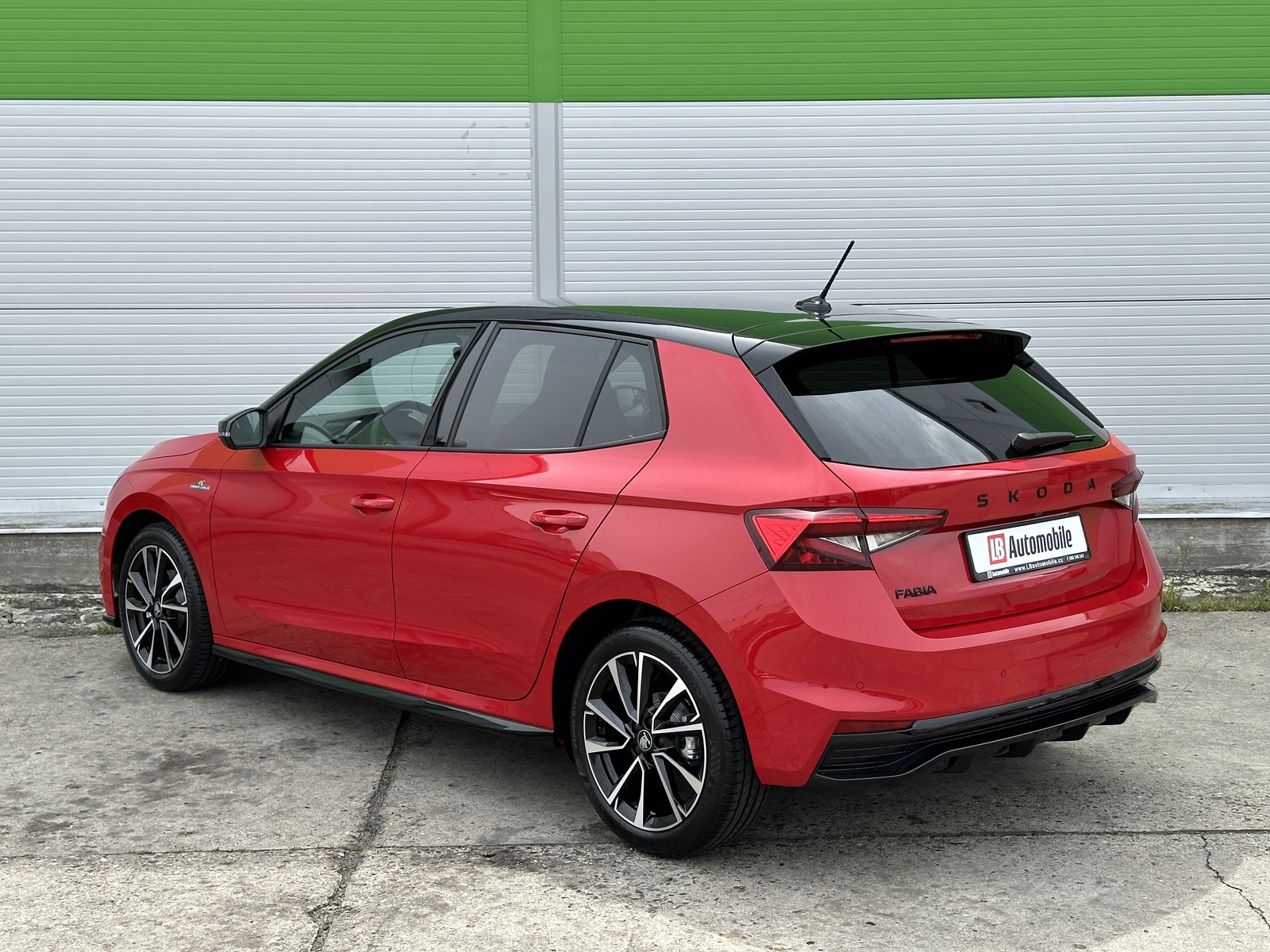 346/10902 Škoda Fabia Monte Carlo 1.0TSi 85kW/116PS, 6.st Manuální převodovka, Tovární záruka Škoda Auto 5let/100.000km, Výbava vozu: Paket Asistovaná jízda 1.5 PLUS - (Adaptivní tempomat - ACC, Asistent hlídání mrtvého úhlu - Side Assist, Adaptivní asistent pro udržování jízdního pruhu – Lane Assist+), Vyhřívané čelní sklo, Kola z lehkých slitin ALU Škoda "PROCYON" 7Jx17" Černá/Leštěná, Parkovací kamera vzadu, Parkovací senzory přední a zadní - PDC P/Z, Asistent varování a brzdění při hrozící kolizi s vozidly, chodci a cyklisty - Front Assist, Asistent rozpoznání únavy řidiče, Asistent rozjezdu do kopce, Rozpoznávání dopravních značek, Systém Start/Stop, Volba jízdního režimu, Bezklíčové odemykání a startování - KESSY, Dvouzónová automatická klimatizace - Climatronic, Vyhřívaný multifunkční kožený volant pro DSG s pádly pod volantem - výškově a podélně nastavitelný, Kožená hlavice řadicí páky a madlo ruční brzdy, Sportovní vyhřívaná přední sedadla s oddělenou regulací, Bederní opěrky na předních sedadlech, Výškově nastavitelné sedadlo řidiče a spolujezdce, Loketní opěrka s Jumbo Boxem, Zadní loketní opěrka, Potahy sedadel - látka, Automaticky zatmavovací vnitřní zpětné zrcátko, Elektrické ovládání oken vpředu i vzadu, Zatmavená zadní okna - Sunset, Vnější zpětná zrcátka elektricky sklopná, nastavitelná a vyhřívaná, Infotainment Bolero 8", Bezdrátový Smartlink, Bluetooth, Virtuální Cockpit, DAB, 6x reproduktor, Bezdrátové nabíjení telefonu, 2x USB-C pro cestující vzadu, Ambientní LED osvětlení interiéru, Bi-LED Přední světlomety, Asistent dálkových světel, Mlhová světla, LED Zadní světla, Senzor světla a deště, Sportovní kryty pedálů, Dekorativní prahové lišty, Sportovní exteriérové doplňky, Bezpečnostní šrouby kol, Sada na opravu pneumatik, Centrální zamykání s dálkovým ovládáním, 3x Isofix a Top Tether – 1x vpředu, 2x vzadu, ABS, ESP, 6x Airbag, Deaktivace airbagu spolujezdce, Nouzové volání SOS - eCall, Nový vůz skladem s registrací 16. 07. 2025, Servisní kniha + dokumentace Škoda Auto, Možnost odpočtu DPH 21%, Termín odběru a předání od 17. 01. 2026.