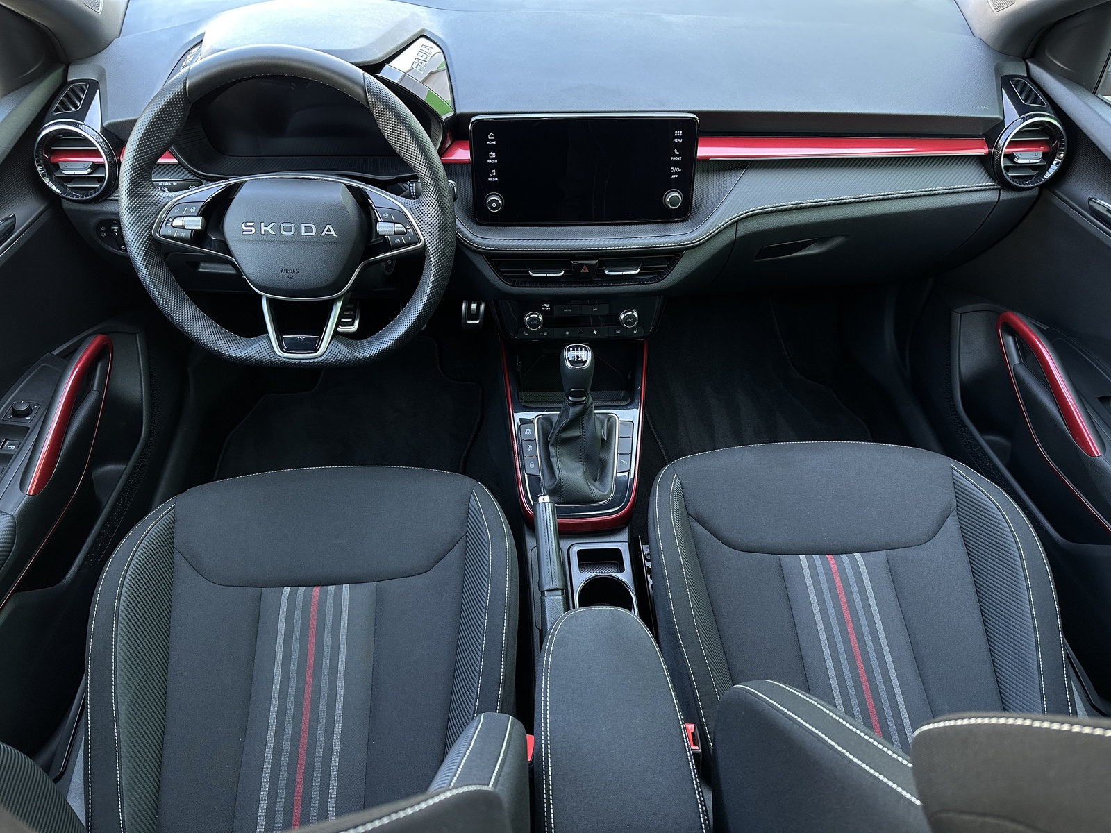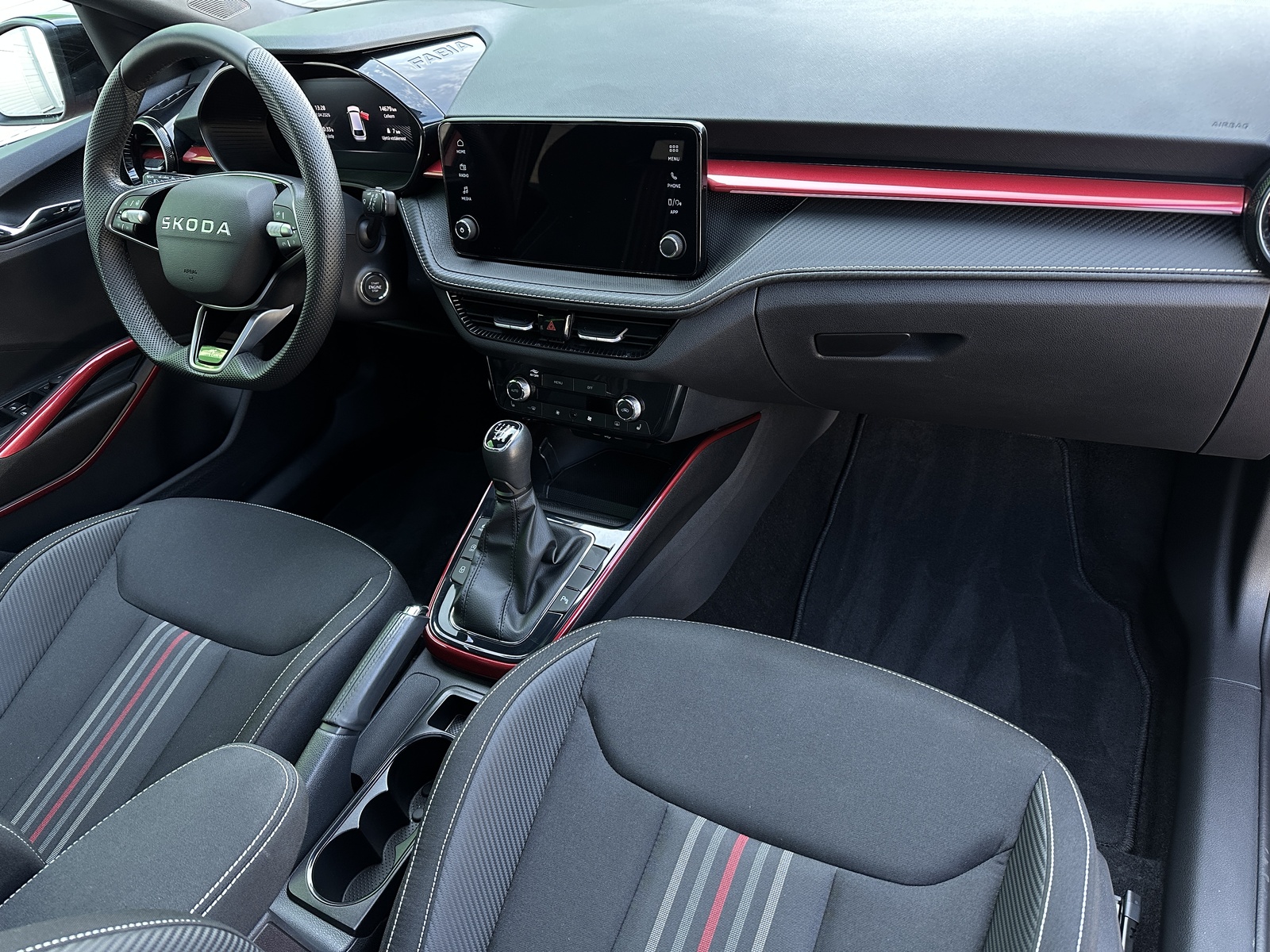 93/11209 Škoda Fabia Monte Carlo 1.0TSi 85kW/116PS, 6st. Manuální převodovka, Tovární záruka Škoda Auto 5let/100.000km, Výbava vozu: Panoramatická střecha, Rezervní ocelové kolo, Bi-LED přední světlomety, Vyhřívaný multifunkční kožený volant pro DSG s pádly pod volantem - výškově a podélně nastavitelný, Bezklíčové odemykání a startování - KESSY, Virtuální Cockpit, Bezdrátové nabíjení telefonu, Bezdrátový Smartlink, Ambientní LED osvětlení interiéru, Dvouzónová automatická klimatizace Climatronic, Sportovní přední sedadla, Bederní opěrky na předních sedadlech, Vyhřívaná přední sedadla s oddělenou regulací, Front Assist – asistent varování a brzdění při hrozící kolizi s vozidly, chodci a cyklisty, Asistent vedení v jízdním pruhu - Lane Assist, Rozpoznávání dopravních značek, Asistent rozpoznání únavy řidiče, Asistent rozjezdu do kopce, Asistent dálkových světel, Parkovací kamera vzadu, Parkovací senzory přední a zadní - PDC P/Z, Nouzové volání SOS - eCall, Deaktivace airbagu spolujezdce, 6x Airbag, ABS, ESP, Vyhřívané ostřikovače čelního skla, Automaticky zatmavovací vnitřní zpětné zrcátko, Vnější zpětná zrcátka elektricky sklopná, nastavitelná a vyhřívaná, Elektrické ovládání oken vpředu i vzadu, Zatmavená zadní okna - Sunset, Kryt zavazadlového prostoru, Loketní opěrka s Jumbo Boxem, Výškově nastavitelné sedadlo řidiče a spolujezdce, Kožená hlavice řadicí páky a madlo ruční brzdy, Infotainment Bolero 8", DAB, 6x reproduktor, 2x USB-C vzadu, Apple konektivita, Smartlink, 3x Isofix a Top Tether – 1x vpředu, 2x vzadu, Koupeno NOVÉ ČR, Servisní kniha + dokumentace Škoda Auto, Možnost odpočtu DPH 21%, Skladem - ihned k odběru.