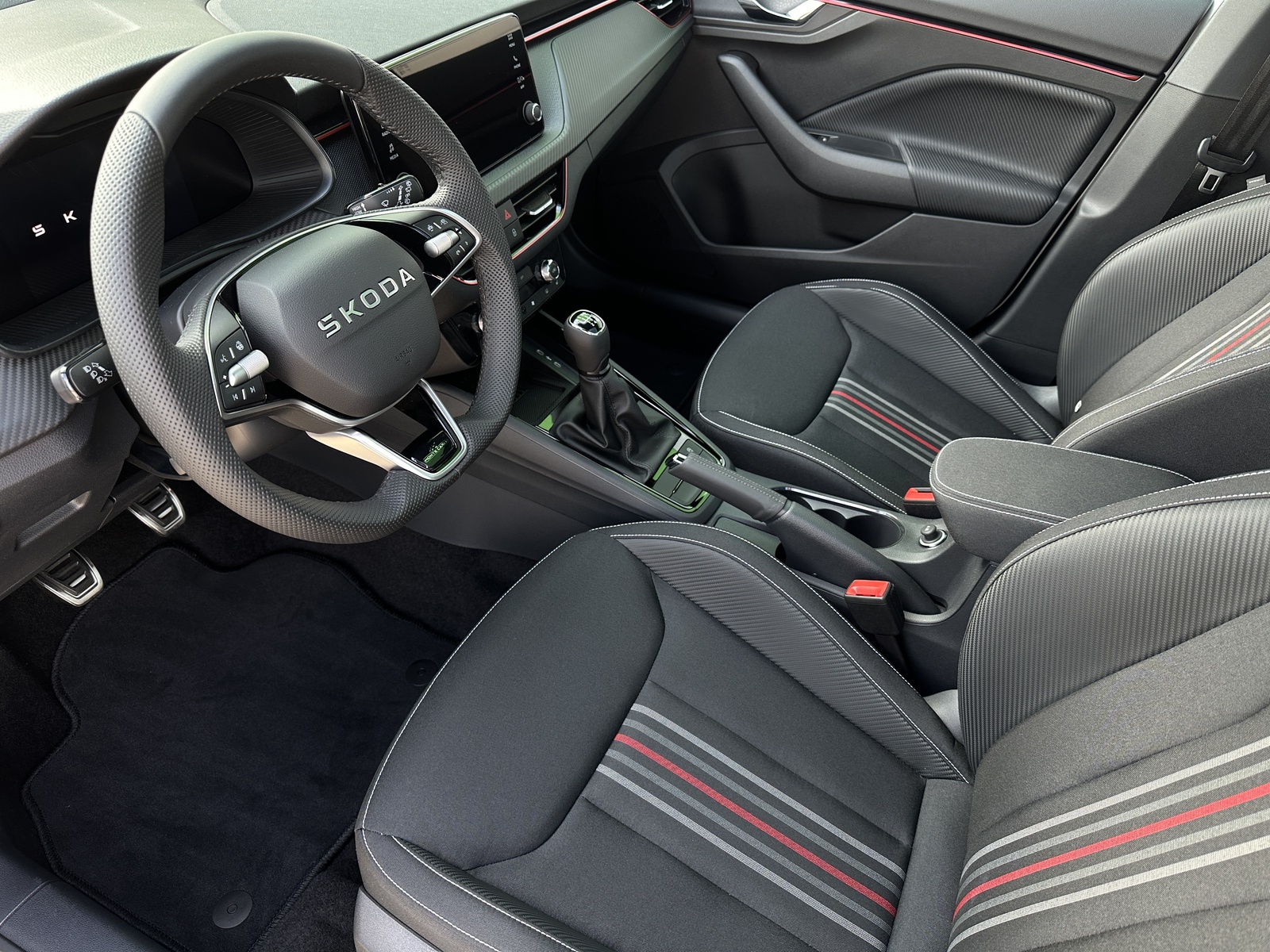 322/10824 Škoda Kamiq Monte Carlo 1.0TSi 85kW/116PS, 6st. Manuální převodovka, Tovární záruka Škoda Auto 5let/100.000km, Výbava vozu: Tažné zařízení sklopné - el. odjistitelné, Asistovaná jízda 1.5 PLUS - (Adaptivní tempomat - ACC, Adaptivní asistent vedení v jízdním pruhu - Adaptivní Lane Assist, Asistent hlídání mrtvého úhlu - Side Assist), Panoramatické střešní okno, Vyhřívané čelní sklo, Dvouzónová automatická klimatizace - Climatronic, Vyhřívaná přední sedadla s oddělenou regulací, Parkovací KAMERA vzadu, Parkovací senzory přední a zadní - PDC P/Z, Asistent varování a brzdění při hrozící kolizi s vozidly, chodci a cyklisty - Front Assist, Asistent rozpoznání únavy řidiče, Asistent rozjezdu do kopce, Rozpoznávání dopravních značek, Systém Start/Stop, Volba jízdního režimu, Bezklíčové odemykání a startování - KESSY, Vyhřívaný multifunkční kožený volant pro DSG s pádly pod volantem - výškově a podélně nastavitelný, Kožená hlavice řadicí páky a madlo ruční brzdy, Sportovní přední sedadla, Bederní opěrky na předních sedadlech, Výškově nastavitelné sedadlo řidiče a spolujezdce, Loketní opěrka s Jumbo Boxem, Zadní loketní opěrka, Potahy sedadel - látka, Automaticky zatmavovací vnitřní zpětné zrcátko, Elektrické ovládání oken vpředu i vzadu, Zatmavená zadní okna - Sunset, Vnější zpětná zrcátka elektricky sklopná, nastavitelná a vyhřívaná, Infotainment Media 8", Bezdrátový Smartlink, Bluetooth, Virtuální Cockpit, DAB, 8x reproduktor, Bezdrátové nabíjení telefonu, Ambientní LED osvětlení interiéru, LED Přední světlomety, Mlhová světla, LED Zadní světla, Senzor světla a deště, Kola z lehkých slitin "KAJAM" 6,5Jx17" s aero kryty, Bezpečnostní šrouby kol, Kontrola tlaku v pneumatikách, Sada na opravu pneumatik, Centrální zamykání s dálkovým ovládáním, 3x Isofix a Top Tether – 1x vpředu, 2x vzadu, ABS, ESP, 6x Airbag, Deaktivace airbagu spolujezdce, Nouzové volání SOS - eCall, Střešní nosič, Zatížení nebržděného tažného zařízení - 610kg, Zatížení bržděného tažného zařízení - 1200kg, Nový vůz s registrací 10. 06. 2025, Servisní kniha + dokumentace Škoda Auto, Možnost odpočtu DPH 21%, Termín odběru a předání od 10. 12. 2025