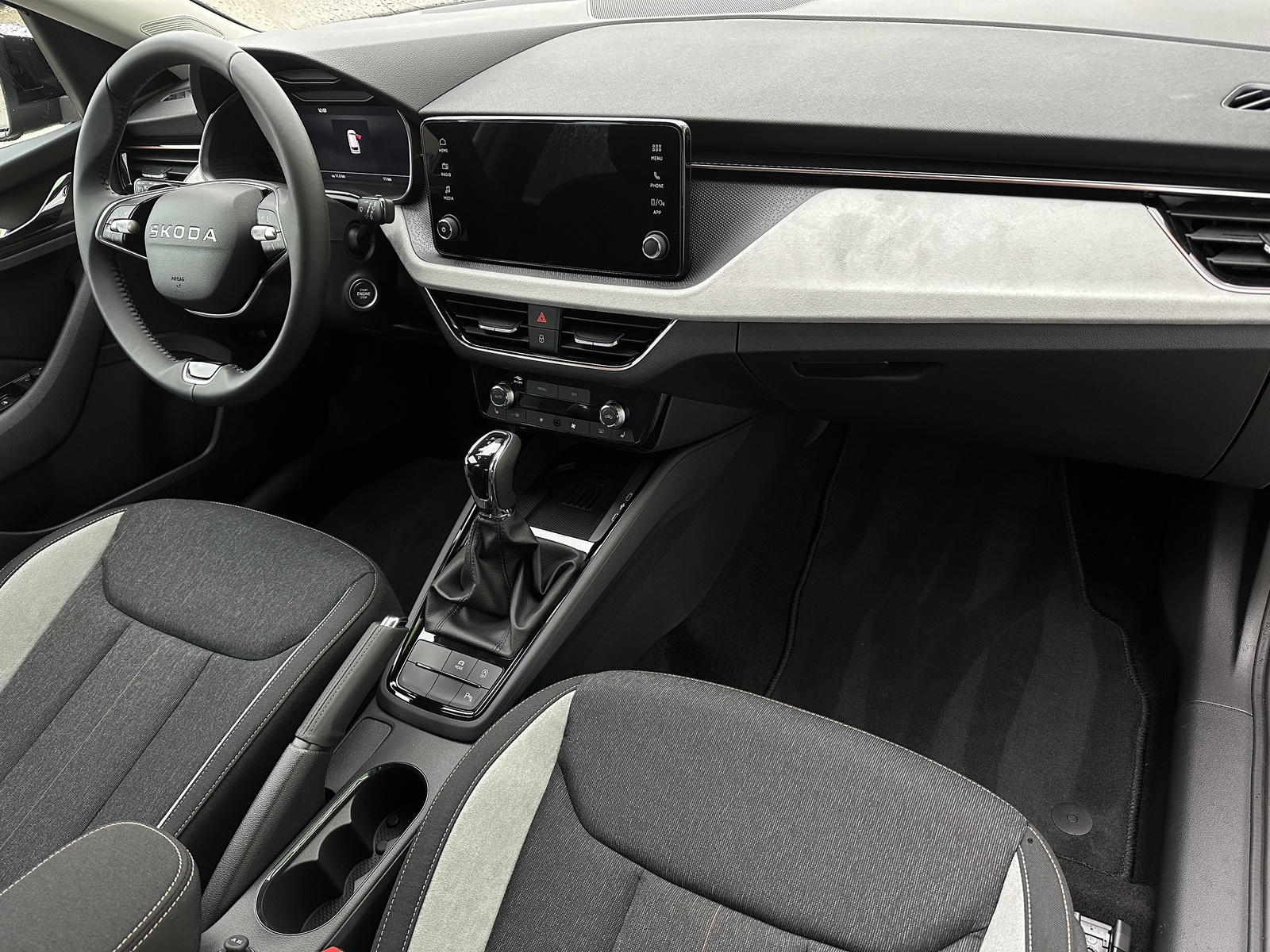 66/10832 Škoda Kamiq Premium 1.0TSi 85kW/116PS, 7st. Automatická převodovka DSG, Tovární záruka Škoda Auto 5let/100.000km, Výbava vozu: Dvojitá podlaha zavazadlového prostoru, Rezervní ocelové kolo, Kola z lehkých slitin ALU Škoda "KAJAM AERO" 6,5J×17" stříbrná, Vyhřívané čelní sklo, LED světlomety s LED denním svícením, Upozornění na únavu řidiče, LED zadní světla, Asistent rozjezdu do kopce, Přední mlhové světlomety, Tempomat, Front Assist – s varováním a brzděním při hrozící kolizi s vozidly, chodci a cyklisty, 6× Airbag, Deaktivace airbagu spolujezdce, Lane Assist – Asistent udržování v jízdním pruhu, 3× ISOFIX a Top Tether – 1× vpředu, 2× vzadu, Zadní parkovací senzory – PDC/Z, Rozpoznávání dopravních značek, Startování tlačítkem a centrální zamykání s dálkovým ovládáním, Světelný senzor, Loketní opěrka s Jumbo Boxem, Elektrické ovládání oken vpředu i vzadu, 2× USB-C, 12V zásuvka vpředu i v zavazadlovém prostoru, Sada na opravu pneumatik, Vyhřívaná přední sedadla, Hlavice řadicí páky a madlo ruční brzdy z kůže, Výškově nastavitelná sedadla řidiče a spolujezdce, Bederní opěrky na předních sedadlech, Nouzový systém tísňového volání SOS eCall+, Dekorativní obložení ze šedé Suedia, rámečky v měděném provedení, Čalounění sedadel – látka, Dvoubarevné LED ambientní osvětlení, Střešní nosič – stříbrný, TOP LED zadní světla s animovanými směrovkami, Corner funkce mlhových světlometů, Elektricky sklopná vnější zpětná zrcátka s automatickým stmíváním na straně řidiče, Vnitřní zpětné zrcátko s automatickým stmíváním, Dešťový senzor, Bezdrátové nabíjení mobilních telefonů s chlazením, Zadní loketní opěrka, Vyhřívaný multifunkční kožený volant pro DSG s pádly řazení pod volantem, Sunset – zatmavená zadní okna, Dvouzónová automatická klimatizace Climatronic, Infotainment – 8 reproduktorů, bezdrátový SmartLink, Side Assist – Asistent hlídání mrtvého úhlu, Zadní parkovací kamera – KAMERA, Přední parkovací senzory – PDC/P, Alarm, Virtuální kokpit 10", Virtuální pedál – elektrické otevírání víka kufru pohybem nohy pod zavazadlovým prostorem, KESSY – bezklíčové zamykání a startování, Volba jízdního režimu, Nový vůz ČR, Servisní kniha + dokumentace Škoda Auto, Možnost odpočtu DPH 21%, Skladem - ihned k odběru.