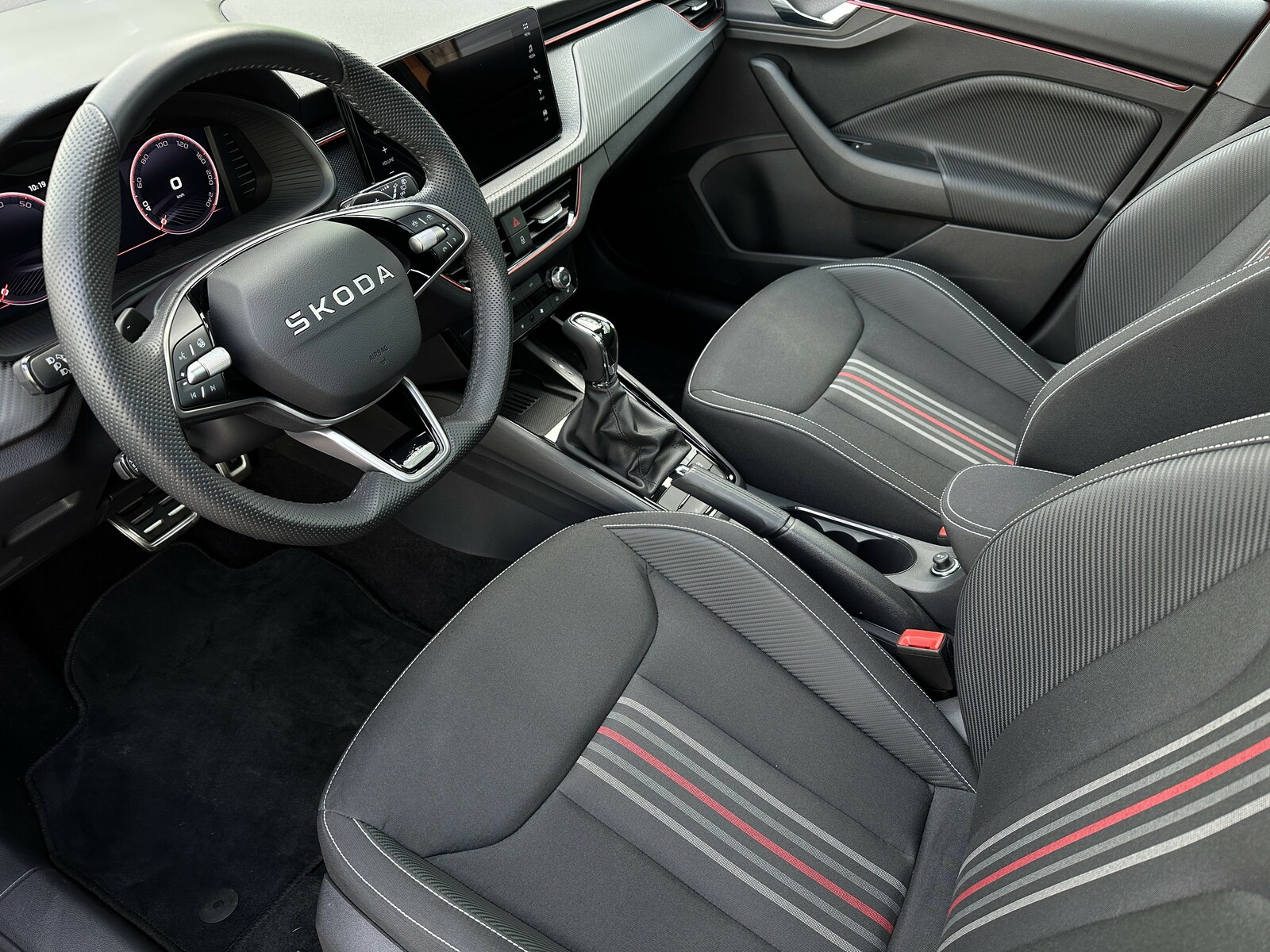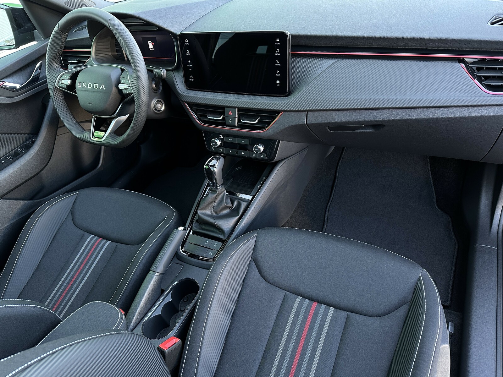 279/10833 Škoda Kamiq Monte Carlo 1.5TSi 110kW/150PS, 7st. Automatická převodovka DSG, Tovární záruka Škoda Auto 5let/100.000km, Výbava vozu: Asistovaná jízda 1.5 PLUS - (Adaptivní tempomat - ACC, Adaptivní vedení v jízdním pruhu - Lane Assist+, Hlídání mrtvého úhlu - Side Assist), Paket NAVI - (Infotainment Amundsen s Navigací, Webradio, Virtuální Cockpit, Digitální asistentka Laura), Tažné zařízení sklopné - el. odjistitelné, Ocelové rezervní kolo, Kola z lehkých slitin ALU Škoda "URSA" 7Jx18" Černá/Leštěná, Vyhřívané čelní sklo, Matrix-LED přední světlomety, Panoramatická střecha, Interiér – sportovní Monte Carlo s černou stropnicí, Černě lakované doplňky karoserie, LED zadní světla s animovanými směrovkami, Vyhřívaný sportovní multifunkční kožený volant – pro DSG s pádly pod volantem, Sportovní kryty pedálů, Dekorativní prahové lišty, KESSY – bezklíčové odemykání a startování, Volba jízdních režimů, Zadní parkovací kamera , Parkovací senzory vpředu a vzadu – PDC, Mlhové světlomety, Elektricky sklopná vnější zrcátka s automatickým stmíváním, 2x USB-C vzadu, Dešťový senzor, Světelný senzor, Vnitřní zpětné zrcátko s automatickým stmíváním, Bezdrátové nabíjení pro Smartphone, Zadní loketní opěrka, Loketní opěrka s Jumbo Boxem vpředu, Dvouzónová automatická klimatizace Climatronic, Vyhřívaná přední sedadla, Bederní opěrky na předních sedadlech, Výškově nastavitelná sedadla řidiče a spolujezdce, Kožená hlavice řadicí páky a madlo ruční brzdy, Vyhřívané trysky ostřikovačů, Elektrické ovládání oken vpředu i vzadu, 12V zásuvka vpředu a vzadu, 2x USB-C, 8 reproduktorů, Bluetooth, 4 reproduktory, DAB, Bezdrátový Smartlink, Front Assist – varování a brzdění při hrozící kolizi s vozidly, chodci a cyklisty, Rozpoznávání dopravních značek, Upozornění na únavu řidiče, Asistent rozjezdu do kopce, Virtual Cockpit , 6x airbag, 3x Isofix a Top Tether, Deaktivace airbagu spolujezdce, Nouzové volání SOS eCall+, Potah sedadel – látka, Sunset – zatmavená zadní okna, Servisní kniha + dokumentace Škoda Auto, Možnost odpočtu DPH 21%, Skladem - ihned k odběru.