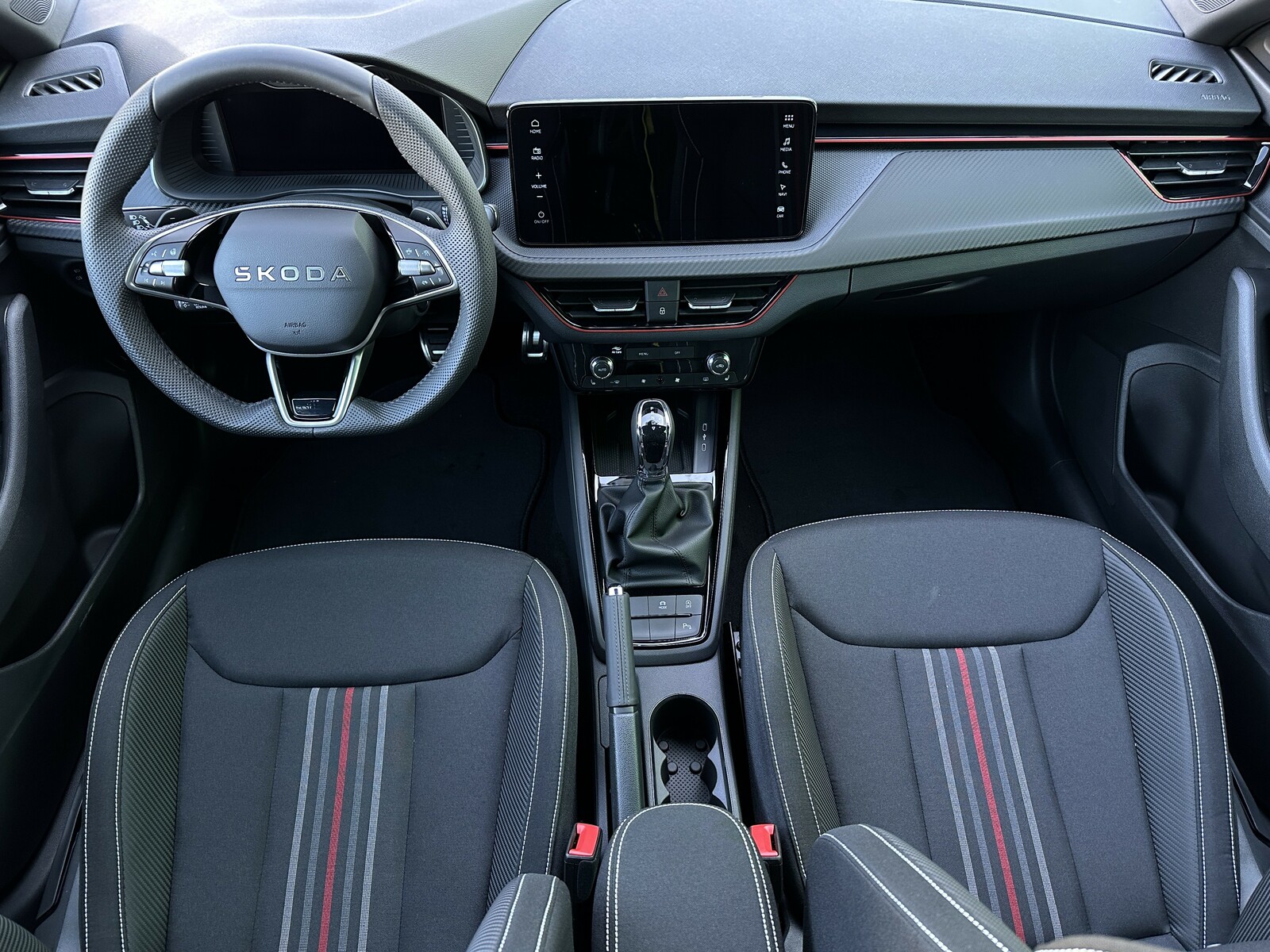 152/10842 Škoda Kamiq Monte Carlo 1.5TSi 110kW/150PS, 7st. Automatická převodovka DSG, Tovární záruka Škoda Auto 5let/100.000km, Výbava vozu: Asistovaná jízda 1.5 PLUS - (Adaptivní tempomat - ACC, Adaptivní vedení v jízdním pruhu - Lane Assist+, Hlídání mrtvého úhlu - Side Assist), Paket NAVI - (Infotainment Amundsen s Navigací, Webradio, Virtuální Cockpit, Digitální asistentka Laura), Tažné zařízení sklopné - el. odjistitelné, Ocelové rezervní kolo, Kola z lehkých slitin ALU Škoda "URSA" 7Jx18" Černá/Leštěná, Vyhřívané čelní sklo, Matrix-LED přední světlomety, Panoramatická střecha, Interiér – sportovní Monte Carlo s černou stropnicí, Černě lakované doplňky karoserie, LED zadní světla s animovanými směrovkami, Vyhřívaný sportovní multifunkční kožený volant – pro DSG s pádly pod volantem, Sportovní kryty pedálů, Dekorativní prahové lišty, KESSY – bezklíčové odemykání a startování, Volba jízdních režimů, Zadní parkovací kamera , Parkovací senzory vpředu a vzadu – PDC, Mlhové světlomety, Elektricky sklopná vnější zrcátka s automatickým stmíváním, 2x USB-C vzadu, Dešťový senzor, Světelný senzor, Vnitřní zpětné zrcátko s automatickým stmíváním, Bezdrátové nabíjení pro Smartphone, Zadní loketní opěrka, Loketní opěrka s Jumbo Boxem vpředu, Dvouzónová automatická klimatizace Climatronic, Vyhřívaná přední sedadla, Bederní opěrky na předních sedadlech, Výškově nastavitelná sedadla řidiče a spolujezdce, Kožená hlavice řadicí páky a madlo ruční brzdy, Vyhřívané trysky ostřikovačů, Elektrické ovládání oken vpředu i vzadu, 12V zásuvka vpředu a vzadu, 2x USB-C, 8 reproduktorů, Bluetooth, 4 reproduktory, DAB, Bezdrátový Smartlink, Front Assist – varování a brzdění při hrozící kolizi s vozidly, chodci a cyklisty, Rozpoznávání dopravních značek, Upozornění na únavu řidiče, Asistent rozjezdu do kopce, Virtual Cockpit , 6x airbag, 3x Isofix a Top Tether, Deaktivace airbagu spolujezdce, Nouzový volání SOS eCall+, Potah sedadel – látka, Sunset – zatmavená zadní okna, Servisní kniha + dokumentace Škoda Auto, Možnost odpočtu DPH 21%, Skladem - ihned k odběru.