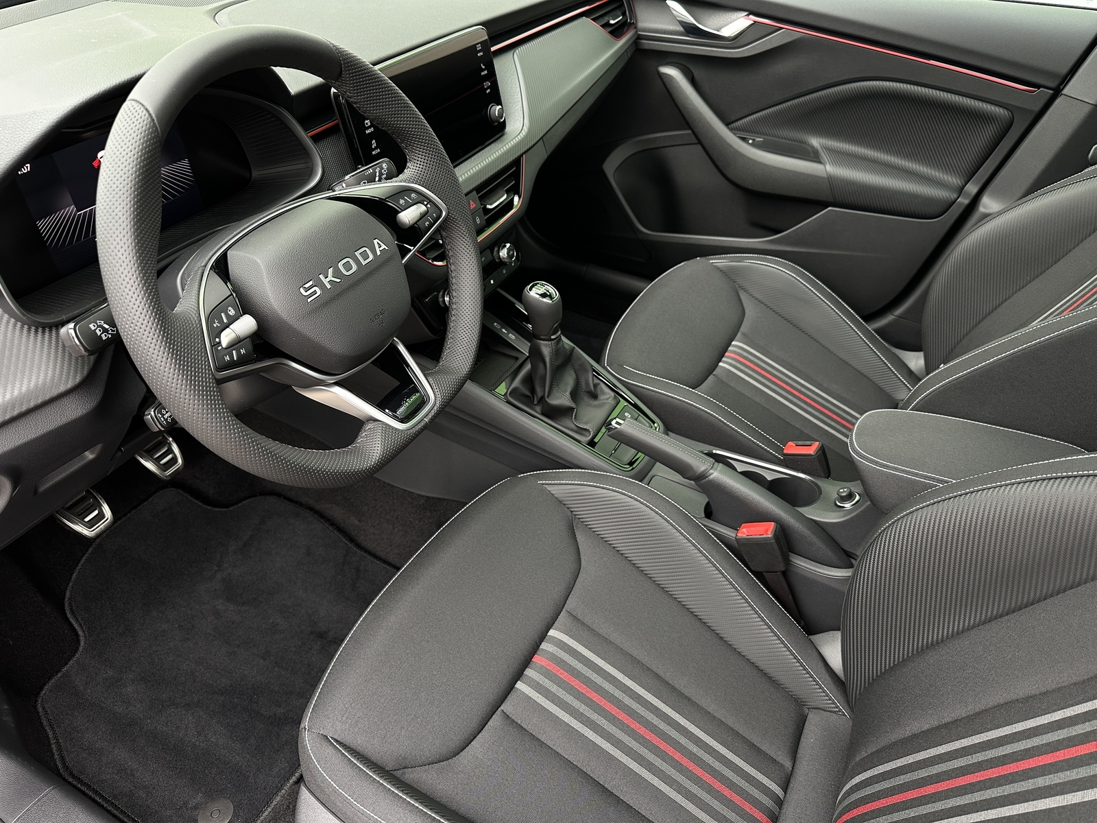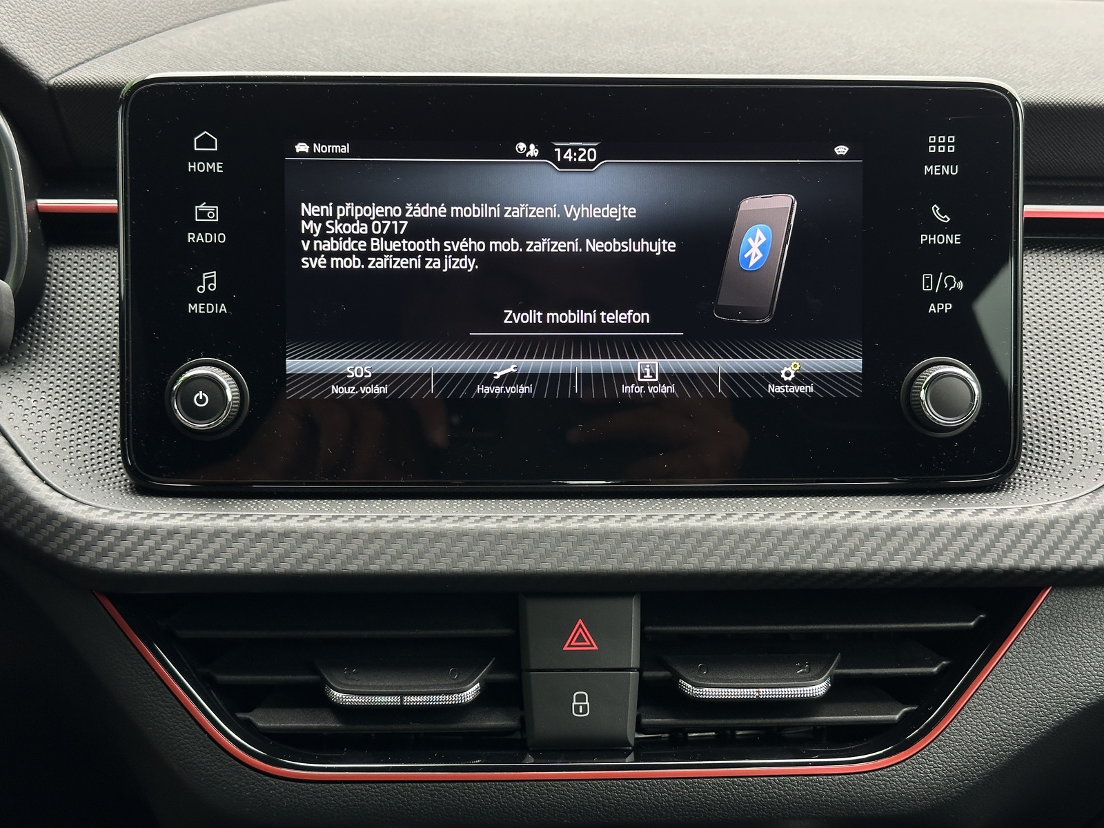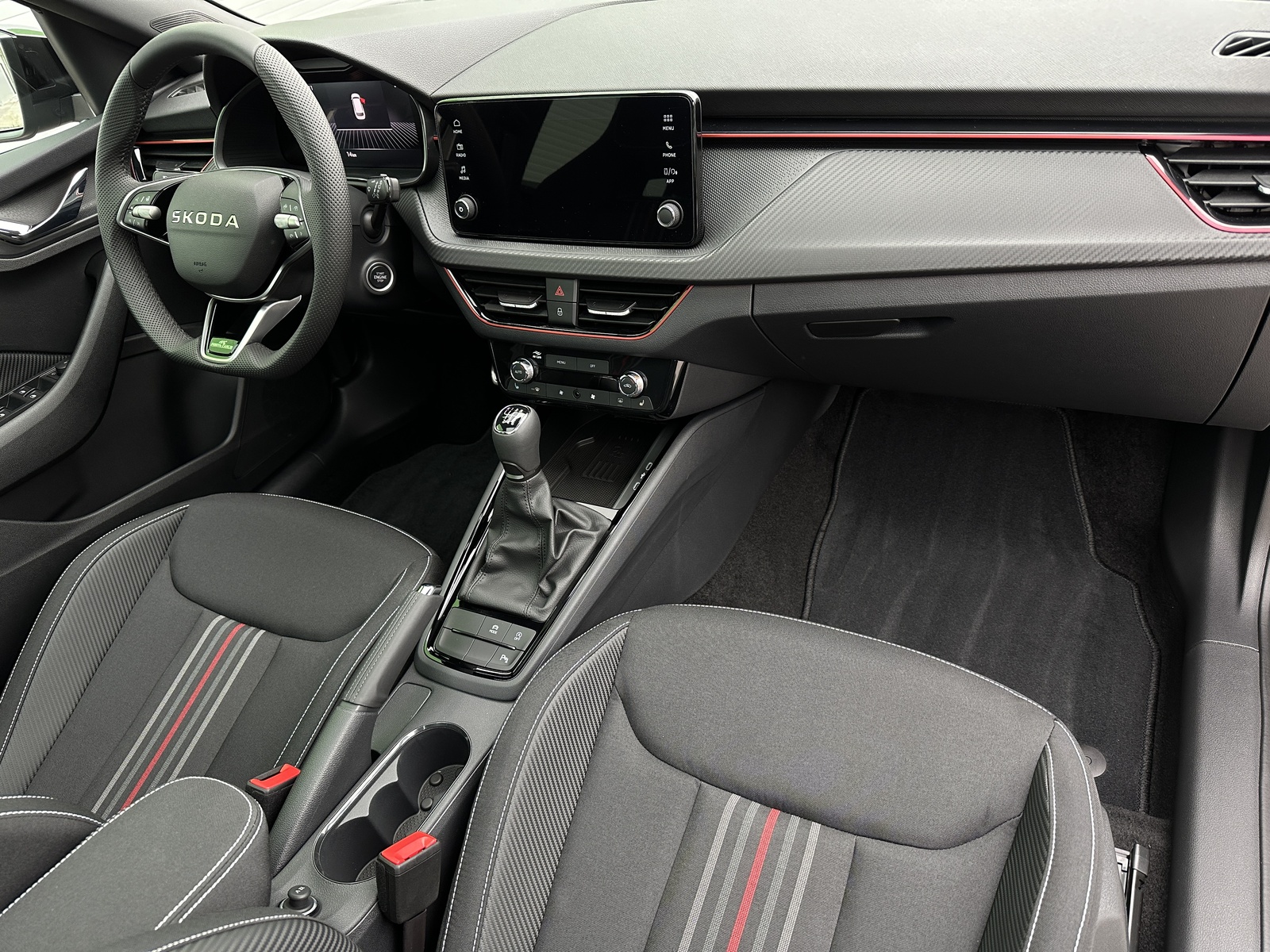 105/10844 Škoda Kamiq Monte Carlo 1.0TSi 85kW/116PS, 6st. Manuální převodovka, Tovární záruka Škoda Auto 5let/100.000km, Výbava vozu: Tažné zařízení sklopné - el. odjistitelné, Asistovaná jízda 1.5 PLUS - (Adaptivní tempomat - ACC, Adaptivní asistent vedení v jízdním pruhu - Adaptivní Lane Assist, Asistent hlídání mrtvého úhlu - Side Assist), Panoramatické střešní okno, Vyhřívané čelní sklo, Dvouzónová automatická klimatizace - Climatronic, Vyhřívaná přední sedadla s oddělenou regulací, Parkovací KAMERA vzadu, Parkovací senzory přední a zadní - PDC P/Z, Asistent varování a brzdění při hrozící kolizi s vozidly, chodci a cyklisty - Front Assist, Asistent rozpoznání únavy řidiče, Asistent rozjezdu do kopce, Rozpoznávání dopravních značek, Systém Start/Stop, Volba jízdního režimu, Bezklíčové odemykání a startování - KESSY, Vyhřívaný multifunkční kožený volant pro DSG s pádly pod volantem - výškově a podélně nastavitelný, Kožená hlavice řadicí páky a madlo ruční brzdy, Sportovní přední sedadla, Bederní opěrky na předních sedadlech, Výškově nastavitelné sedadlo řidiče a spolujezdce, Loketní opěrka s Jumbo Boxem, Zadní loketní opěrka, Potahy sedadel - látka, Automaticky zatmavovací vnitřní zpětné zrcátko, Elektrické ovládání oken vpředu i vzadu, Zatmavená zadní okna - Sunset, Vnější zpětná zrcátka elektricky sklopná, nastavitelná a vyhřívaná, Infotainment Media 8", Bezdrátový Smartlink, Bluetooth, Virtuální Cockpit, DAB, 8x reproduktor, Bezdrátové nabíjení telefonu, Ambientní LED osvětlení interiéru, LED Přední světlomety, Mlhová světla, LED Zadní světla, Senzor světla a deště, Kola z lehkých slitin "KAJAM" 6,5Jx17" s aero kryty, Bezpečnostní šrouby kol, Kontrola tlaku v pneumatikách, Sada na opravu pneumatik, Centrální zamykání s dálkovým ovládáním, 3x Isofix a Top Tether – 1x vpředu, 2x vzadu, ABS, ESP, 6x Airbag, Deaktivace airbagu spolujezdce, Nouzové volání SOS - eCall, Střešní nosič, Zatížení nebržděného tažného zařízení - 610kg, Zatížení bržděného tažného zařízení - 1200kg, Nový vůz s registrací 11. 06. 2025, Servisní kniha + dokumentace Škoda Auto, Možnost odpočtu DPH 21%, Termín odběru a předání od 10. 12. 2025