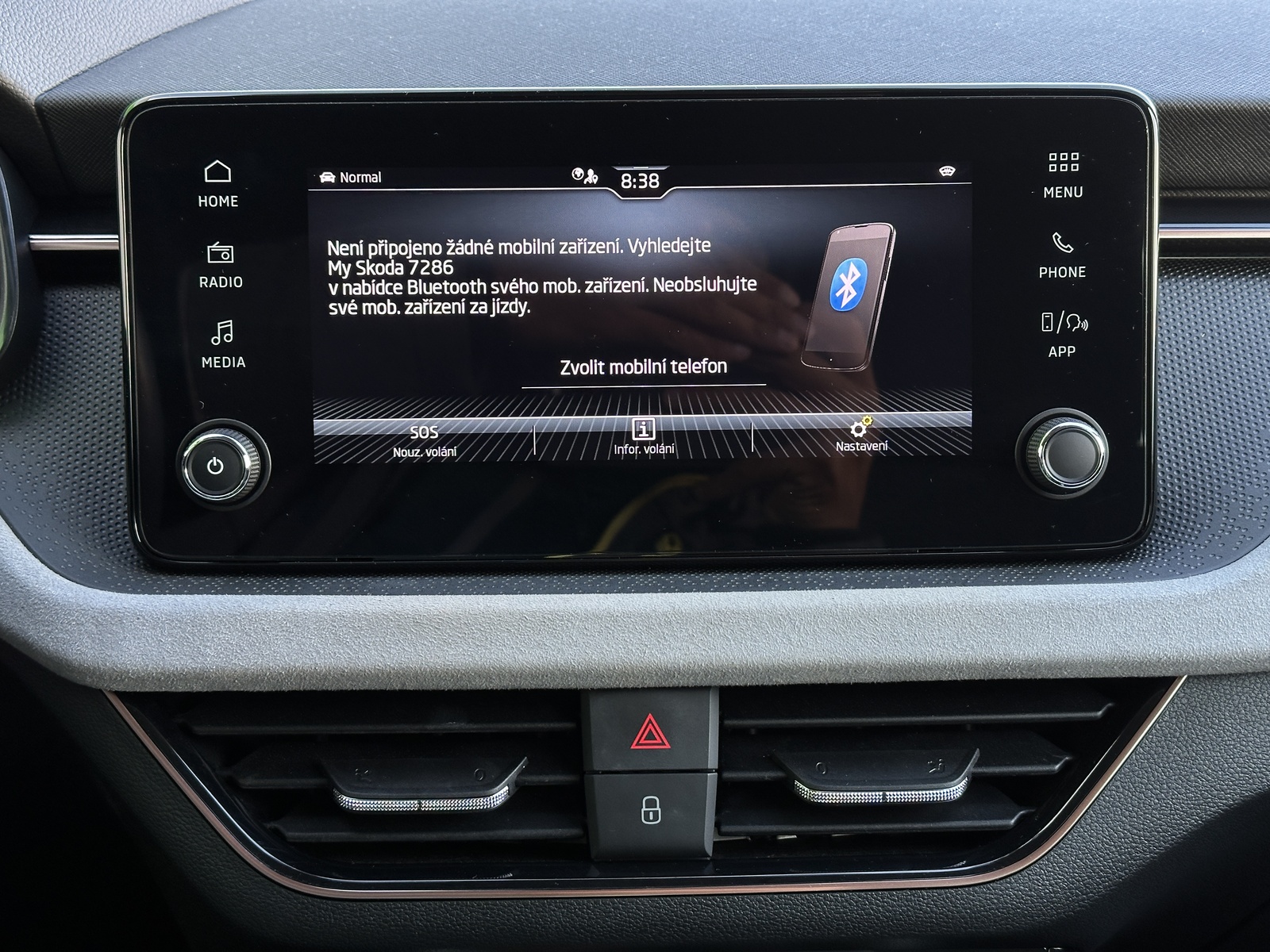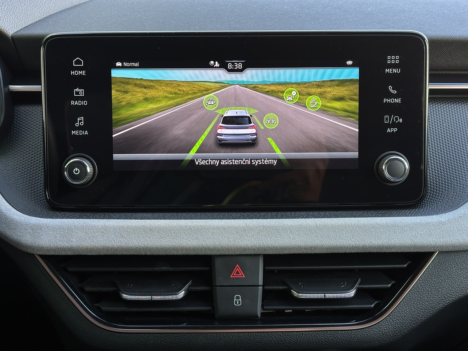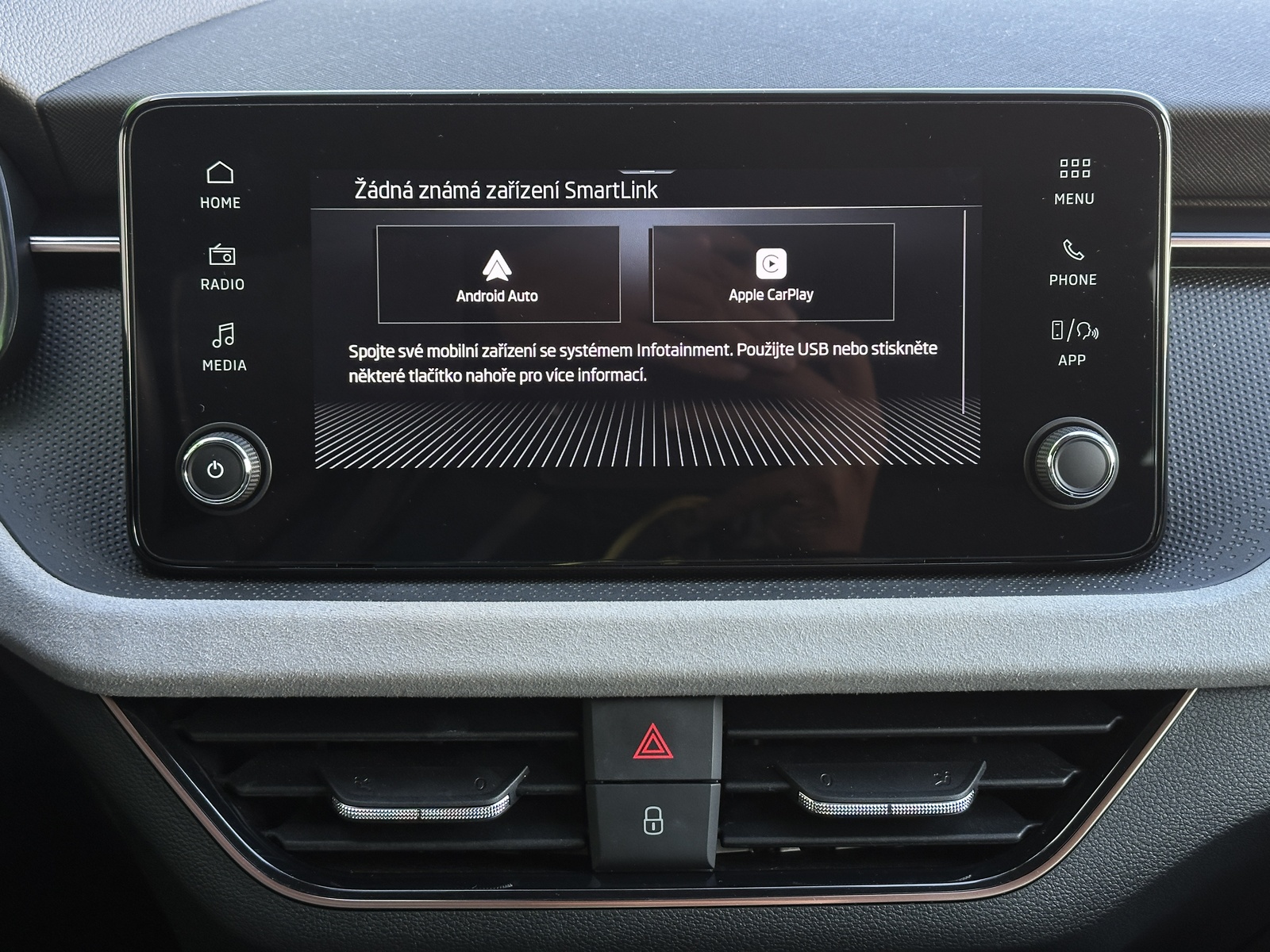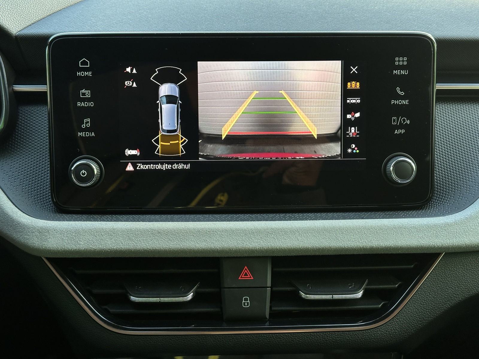 38/10883 Škoda Kamiq TOP Selection 1.0TSi DSG 85kW/116PS, 7st. Automatická převodovka, Tovární záruka Škoda Auto 5let/100.000km, Výbava vozu: Paket City PLUS - (Zadní parkovací kamera, Parkovací senzory vpředu - PDC, KESSY s Alarmem - bezklíčové zamykání a startování včetně Alarmu, Volba jízdního režimu), Tažné zařízení sklopné - el. odjistitelné, Rezervní ocelové kolo, Kola z lehkých slitin ALU Škoda "STRATOS" 6,5Jx17", Vyhřívané čelní sklo, Multifunkční vyhřívaný kožený volant pro DSG s pádly řazení pod volantem, Řadicí páka z kůže, Sunset - zatmavená zadní okna, Mlhová světla s přisvěcováním do zatáček, Virtuální Cockpit Mini 8", Dvouzónová automatická klimatizace Climatronic, Elektricky sklopná vnější zpětná zrcátka s automatickým stmíváním na straně řidiče, Lane Assist - Asistent pro vedení v jízdním pruhu, Front Assist – asistent varování a brzdění při hrozící kolizi s vozidly, chodci a cyklisty, Automatické stmívání vnitřního zpětného zrcátka, LED zadní světlomety s animovaným ukazatelem směru jízdy, LED hlavní světlomety, USB-C – datový i nabíjecí port s vyšším výkonem, Asistent rozpoznání únavy, Bezdrátový Smartlink - zrcadlení aplikací z telefonu na Infotainment vozu, Bluetooth s bezdrátovým nabíjením, 8 reproduktorů, DAB – digitální příjem rádia, Denní svícení s asistenčním světlem a funkcí Coming Home/Leaving Home, Světelný a dešťový senzor, Vyhřívaná přední sedadla, Vyhřívané trysky ostřikovačů čelního skla, Zadní loketní opěrka, Středová loketní opěrka Jumbobox, Manuálně nastavitelná bederní opěrka v opěradlech předních sedadel, Zadní parkovací senzory - PDC, Start/Stop systém, Tempomat s omezovačem rychlosti, Asistent rozjezdu do kopce, Centrální zamykání KESSY, Dálkové centrální zamykání, Elektronický stabilizační program - ESP, 6x Airbag, Deaktivace airbagu spolujezdce, Střešní nosič, Zadní stěrač s ostřikovačem, Potahy sedadel - látka, Mechanické výškové nastavení obou předních sedadel, Zadní opěrky hlavy, 12V zásuvka v zavazadlovém prostoru, Servisní kniha + dokumentace Škoda Auto, Možnost odpočtu DPH 21%, Termín odběru a předání od 22.11.2025.