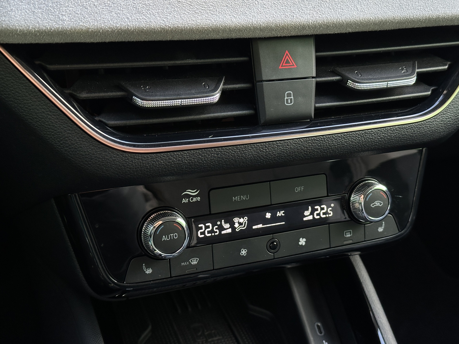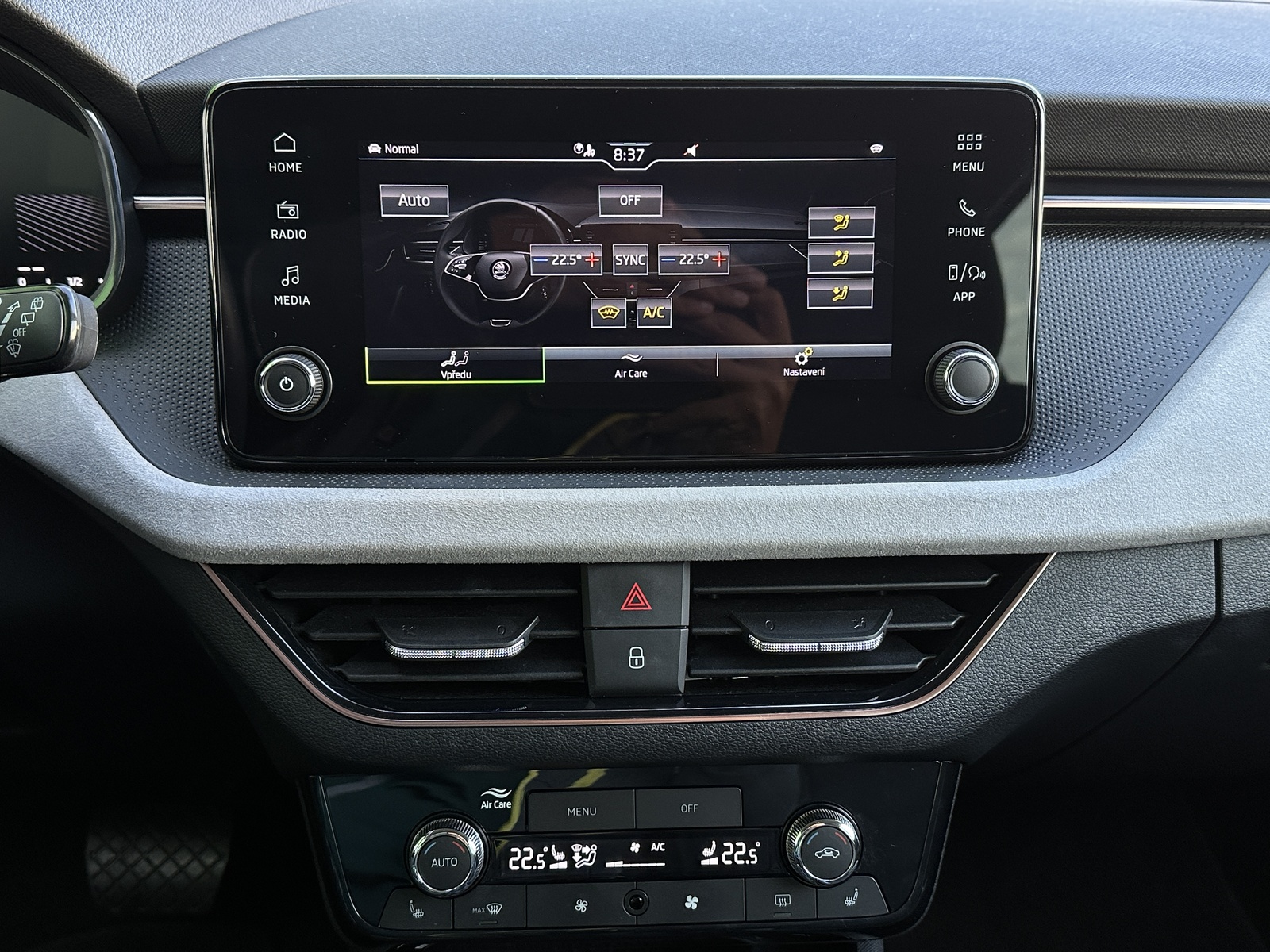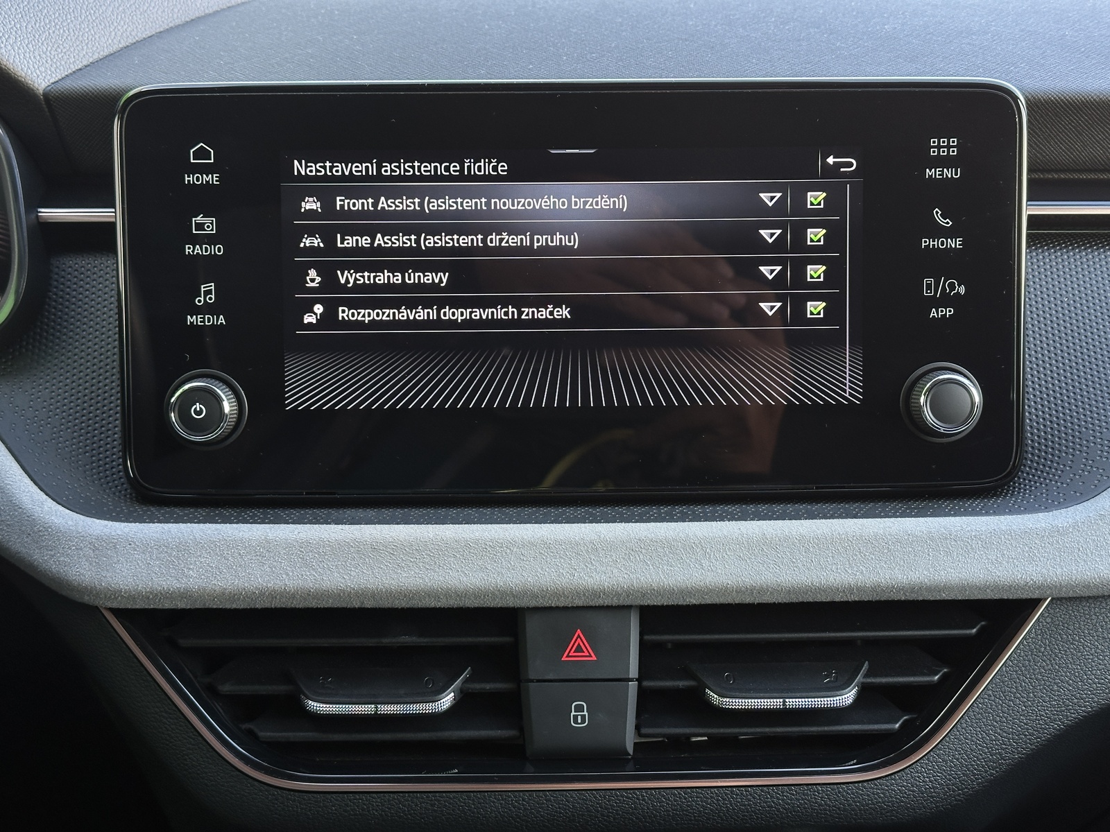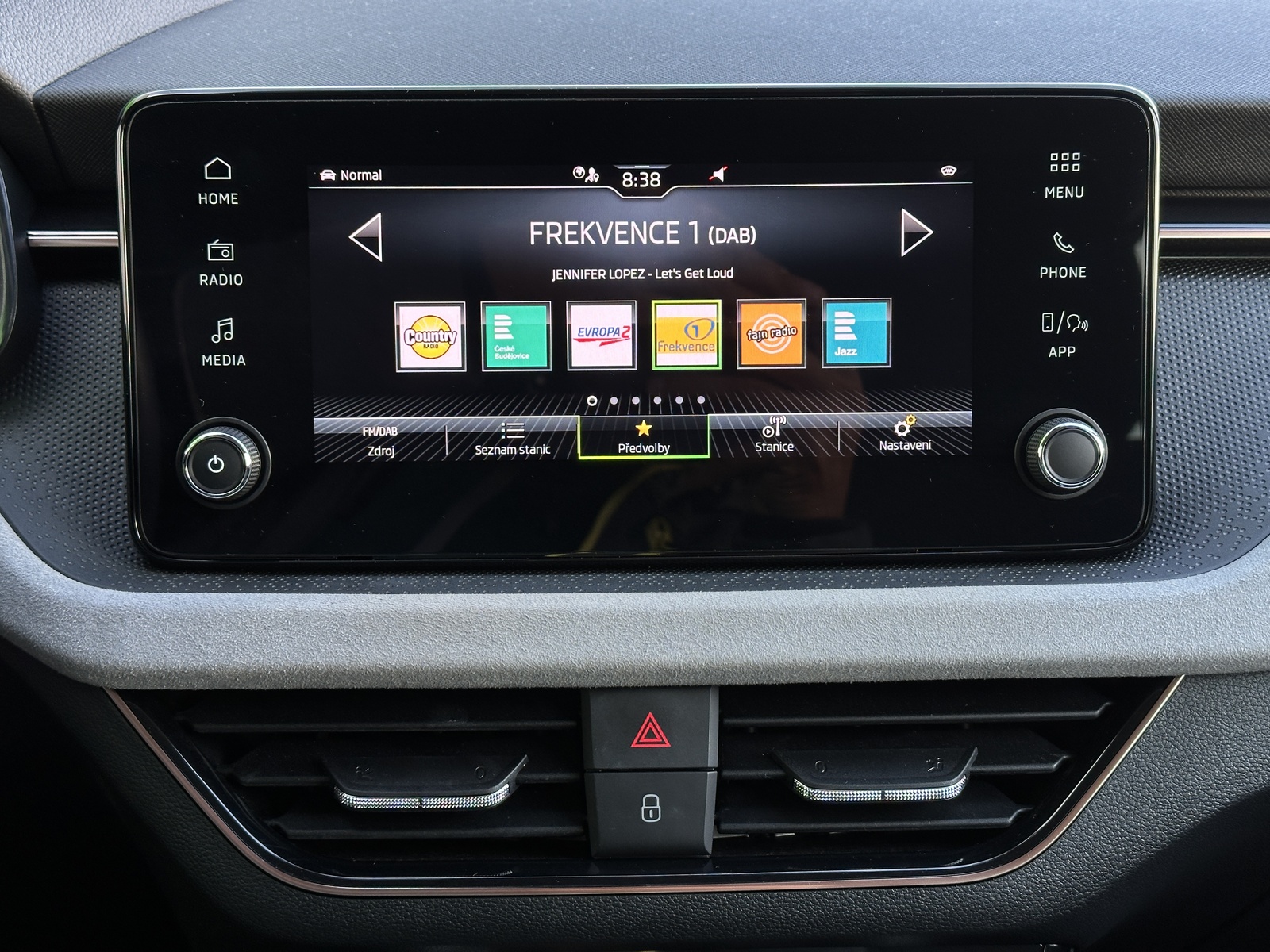 38/10883 Škoda Kamiq TOP Selection 1.0TSi DSG 85kW/116PS, 7st. Automatická převodovka, Tovární záruka Škoda Auto 5let/100.000km, Výbava vozu: Paket City PLUS - (Zadní parkovací kamera, Parkovací senzory vpředu - PDC, KESSY s Alarmem - bezklíčové zamykání a startování včetně Alarmu, Volba jízdního režimu), Tažné zařízení sklopné - el. odjistitelné, Rezervní ocelové kolo, Kola z lehkých slitin ALU Škoda "STRATOS" 6,5Jx17", Vyhřívané čelní sklo, Multifunkční vyhřívaný kožený volant pro DSG s pádly řazení pod volantem, Řadicí páka z kůže, Sunset - zatmavená zadní okna, Mlhová světla s přisvěcováním do zatáček, Virtuální Cockpit Mini 8", Dvouzónová automatická klimatizace Climatronic, Elektricky sklopná vnější zpětná zrcátka s automatickým stmíváním na straně řidiče, Lane Assist - Asistent pro vedení v jízdním pruhu, Front Assist – asistent varování a brzdění při hrozící kolizi s vozidly, chodci a cyklisty, Automatické stmívání vnitřního zpětného zrcátka, LED zadní světlomety s animovaným ukazatelem směru jízdy, LED hlavní světlomety, USB-C – datový i nabíjecí port s vyšším výkonem, Asistent rozpoznání únavy, Bezdrátový Smartlink - zrcadlení aplikací z telefonu na Infotainment vozu, Bluetooth s bezdrátovým nabíjením, 8 reproduktorů, DAB – digitální příjem rádia, Denní svícení s asistenčním světlem a funkcí Coming Home/Leaving Home, Světelný a dešťový senzor, Vyhřívaná přední sedadla, Vyhřívané trysky ostřikovačů čelního skla, Zadní loketní opěrka, Středová loketní opěrka Jumbobox, Manuálně nastavitelná bederní opěrka v opěradlech předních sedadel, Zadní parkovací senzory - PDC, Start/Stop systém, Tempomat s omezovačem rychlosti, Asistent rozjezdu do kopce, Centrální zamykání KESSY, Dálkové centrální zamykání, Elektronický stabilizační program - ESP, 6x Airbag, Deaktivace airbagu spolujezdce, Střešní nosič, Zadní stěrač s ostřikovačem, Potahy sedadel - látka, Mechanické výškové nastavení obou předních sedadel, Zadní opěrky hlavy, 12V zásuvka v zavazadlovém prostoru, Servisní kniha + dokumentace Škoda Auto, Možnost odpočtu DPH 21%, Termín odběru a předání od 22.11.2025.