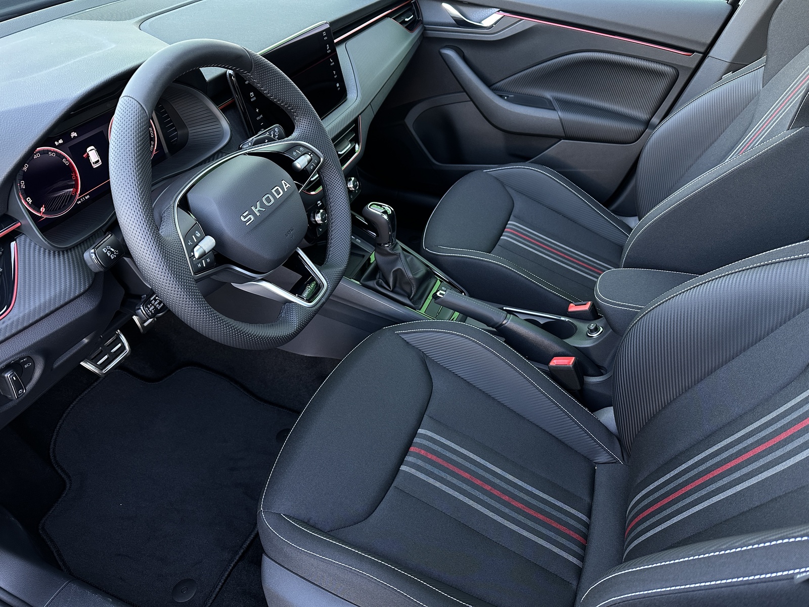 380/10990 Škoda Kamiq Monte Carlo 1.5TSi 110kW/150PS, 7st. Automatická převodovka DSG, Tovární záruka Škoda Auto 5let/100.000km, Výbava vozu: Tažné zařízení sklopné - el. odjistitelné, Asistovaná jízda 1.5 PLUS - (Adaptivní tempomat - ACC, Adaptivní asistent vedení v jízdním pruhu - Adaptivní Lane Assist, Asistent hlídání mrtvého úhlu - Side Assist), Paket NAVI - (Infotainment Amundsen s Navigací, Webradio, Virtuální Cockpit, Digitální asistentka Laura), Paket City PREMIUM - (Parkovací kamera vzadu, Parkovací senzory vpředu - PDC, KESSY s alarmem, Volba jízdních režimů, Virtuální pedál, Virtuální cockpit, Automatické parkování), Vyhřívané čelní sklo, Dvojitá podlaha v zavazadlovém prostoru, Kola z lehkých slitin ALU Škoda "URSA" 7Jx18" Černá/Leštěná, Panoramatická střecha, Parkovací senzory vpředu a vzadu – PDC P/Z, Asistent varování a brzdění při hrozící kolizi s vozidly, chodci a cyklisty - Front Assist, Asistent rozpoznání únavy řidiče, Asistent rozjezdu do kopce, Rozpoznávání dopravních značek, Systém Start/Stop, Volba jízdního režimu, Bezklíčové odemykání a startování - KESSY, Vyhřívaný multifunkční kožený volant pro DSG s pádly pod volantem - výškově a podélně nastavitelný, Kožená hlavice řadicí páky a madlo ruční brzdy, Sportovní přední sedadla, Bederní opěrky na předních sedadlech, Výškově nastavitelné sedadlo řidiče a spolujezdce, Dvouzónová automatická klimatizace - Climatronic, Vyhřívaná přední sedadla s oddělenou regulací, Loketní opěrka s Jumbo Boxem, Zadní loketní opěrka, Sportovní interiér Monte Carlo s černou stropnicí, Potah sedadel – látka, Vnitřní zpětné zrcátko s automatickým stmíváním, Elektrické ovládání oken vpředu i vzadu, Zatmavená zadní okna - Sunset, Vnější zpětná zrcátka elektricky sklopná, nastavitelná a vyhřívaná, Bezdrátový Smartlink, Bluetooth, DAB, 8x reproduktor, Bezdrátové nabíjení telefonu, 2x USB-C a 12V zásuvka předu i vzadu, Ambientní LED osvětlení interiéru, Matrix-LED přední světlomety, Mlhové světlomety, LED zadní světla s animovanými ukazateli směru jízdy, Senzor světla a deště, Kontrola tlaku v pneumatikách, Sada na opravu pneumatik, 3x Isofix a Top Tether, ABS, ESP, 6x Airbag, Deaktivace airbagu spolujezdce, Nouzové volání SOS - eCall, Sportovní kryty pedálů, Dekorativní prahové lišty, Černě lakované doplňky karoserie, Střešní nosič, Zatížení nebržděného tažného zařízení - 640kg, Zatížení bržděného tažného zařízení - 1250kg, Nový vůz, Servisní kniha + dokumentace Škoda Auto, Možnost odpočtu DPH 21%, Skladem - ihned k odběru.