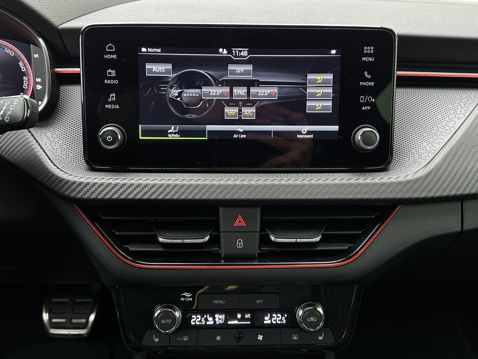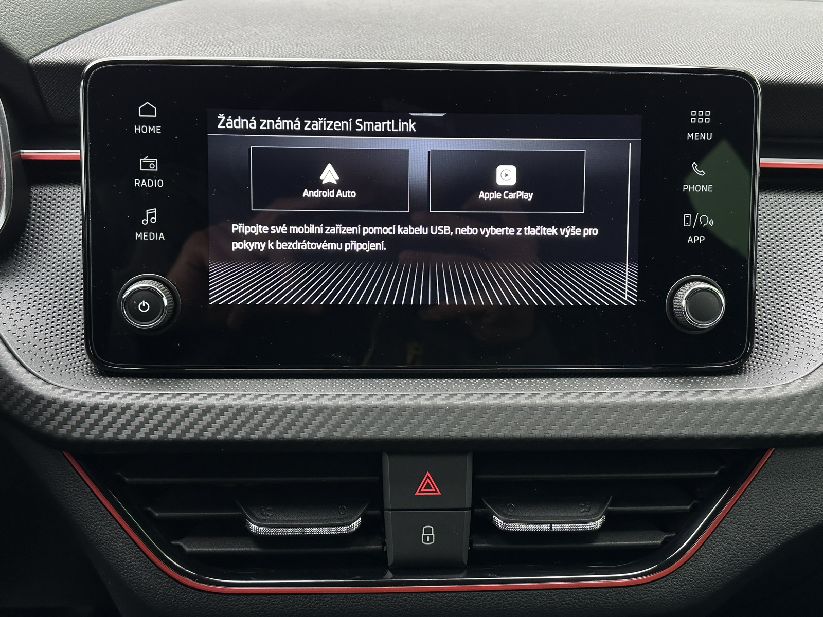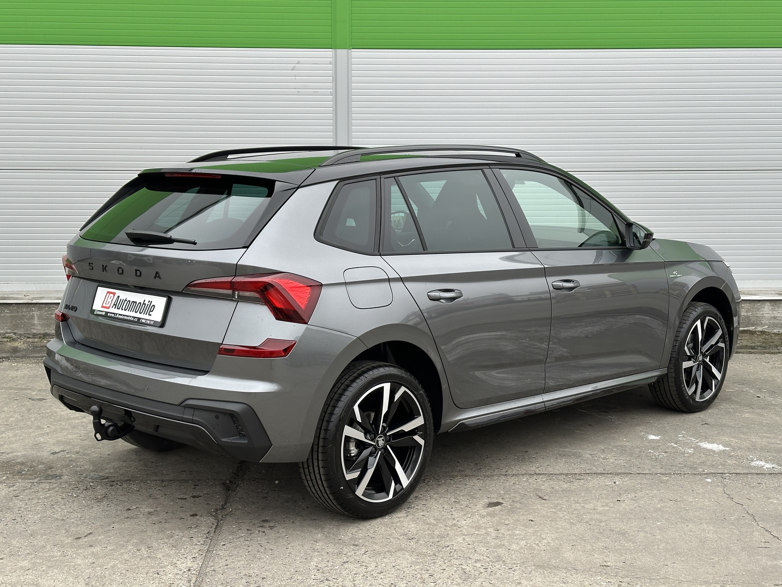 345/11053 Škoda Kamiq Monte Carlo 1.0TSi 85kW/116PS, 7.st Automatická převodovka, Tovární záruka Škoda Auto 5let/100.000km, Výbava vozu: Tažné zařízení sklopné - el. odjistitelné, Vyhřívané čelní sklo, Dvojitá podlaha v zavazadlovém prostoru, Ocelové rezervní kolo, Kola z lehkých slitin ALU Škoda "URSA" 7Jx18" Černá/Leštěná, Panoramatická střecha, Parkovací kamera vzadu, Parkovací senzory vpředu a vzadu - PDC P/Z, Asistent udržování v jízdním pruhu - Lane Assist, Asistent varování a brzdění při hrozící kolizi s vozidly, chodci a cyklisty - Front Assist, Asistent rozpoznání únavy řidiče, Asistent rozjezdu do kopce, Rozpoznávání dopravních značek, Systém Start/Stop, Volba jízdního režimu, Bezklíčové odemykání a startování - KESSY, Tempomat s omezovačem rychlosti, Vyhřívaný multifunkční kožený volant pro DSG s pádly pod volantem - výškově a podélně nastavitelný, Kožená hlavice řadicí páky a madlo ruční brzdy, Sportovní přední sedadla, Bederní opěrky na předních sedadlech, Výškově nastavitelné sedadlo řidiče a spolujezdce, Dvouzónová automatická klimatizace - Climatronic, Vyhřívaná přední sedadla s oddělenou regulací, Loketní opěrka s Jumbo Boxem, Zadní loketní opěrka, Sportovní interiér Monte Carlo s černou stropnicí, Potah sedadel – látka, Vnitřní zpětné zrcátko s automatickým stmíváním, Elektrické ovládání oken vpředu i vzadu, Zatmavená zadní okna - Sunset, Vnější zpětná zrcátka elektricky sklopná, nastavitelná a vyhřívaná, Virtuální Cockpit, Infotainment Media 8", Bezdrátový Smartlink, Bluetooth, DAB, 8x Reproduktor, Bezdrátové nabíjení telefonu, 2x USB-C a 12V zásuvka předu i vzadu, Ambientní LED osvětlení interiéru, Matrix-LED přední světlomety, Mlhové světlomety, LED zadní světla s animovanými ukazateli směru jízdy, Senzor světla a deště, Kontrola tlaku v pneumatikách, Sportovní kryty pedálů, Dekorativní prahové lišty, Černě lakované doplňky karoserie, 3x Isofix a Top Tether, ABS, ESP, 6x Airbag, Deaktivace airbagu spolujezdce, Centrální zamykání s dálkovým ovládáním, Alarm, Nouzové volání SOS - eCall, Zatížení nebržděného tažného zařízení - 610kg, Zatížení bržděného tažného zařízení - 1200kg, Nový vůz s registrací 25. 11. 2025. Servisní kniha + dokumentace Škoda Auto, Možnost odpočtu DPH 21%, Termín odběru a předání od 21. 05. 2026.