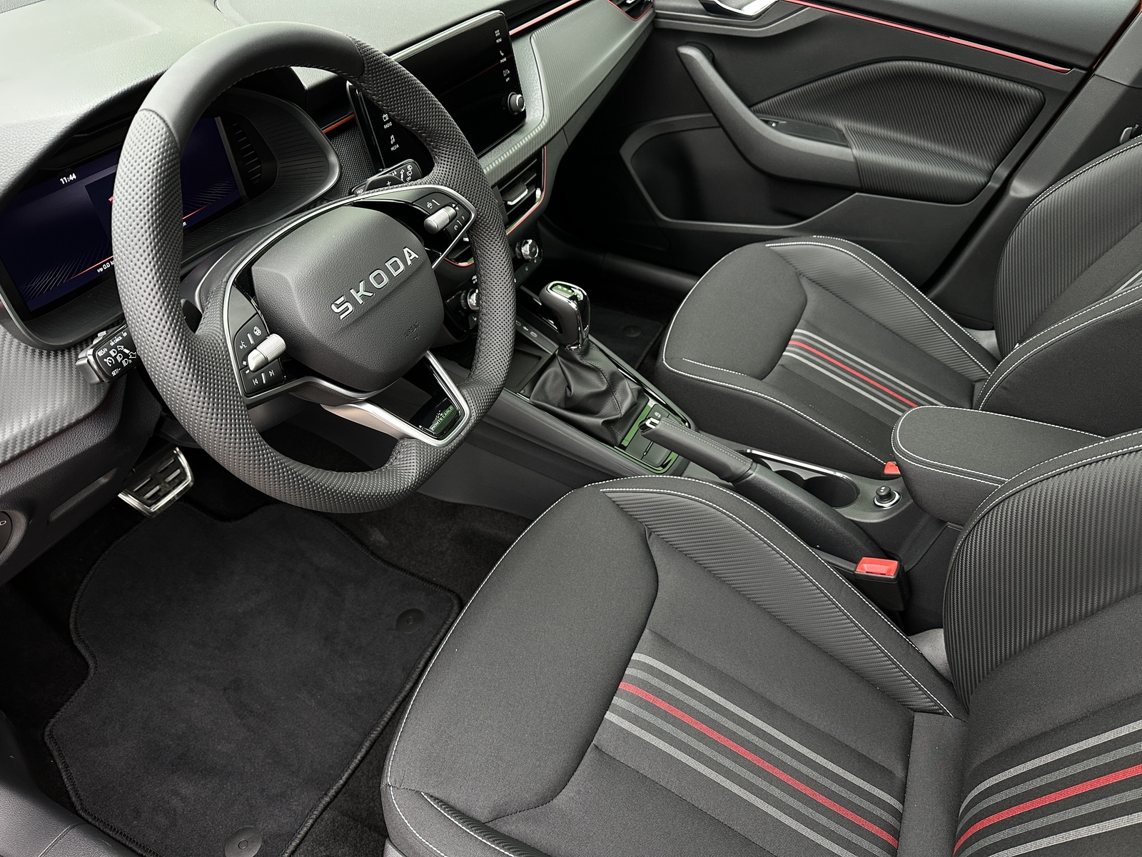 381/11058 Škoda Kamiq Monte Carlo 1.0TSi 85kW/116PS, 7.st Automatická převodovka, Tovární záruka Škoda Auto 5let/100.000km, Výbava vozu: Tažné zařízení sklopné - el. odjistitelné, Vyhřívané čelní sklo, Dvojitá podlaha v zavazadlovém prostoru, Ocelové rezervní kolo, Kola z lehkých slitin ALU Škoda "URSA" 7Jx18" Černá/Leštěná, Panoramatická střecha, Parkovací kamera vzadu, Parkovací senzory vpředu a vzadu - PDC P/Z, Asistent udržování v jízdním pruhu - Lane Assist, Asistent varování a brzdění při hrozící kolizi s vozidly, chodci a cyklisty - Front Assist, Asistent rozpoznání únavy řidiče, Asistent rozjezdu do kopce, Rozpoznávání dopravních značek, Systém Start/Stop, Volba jízdního režimu, Bezklíčové odemykání a startování - KESSY, Tempomat s omezovačem rychlosti, Vyhřívaný multifunkční kožený volant pro DSG s pádly pod volantem - výškově a podélně nastavitelný, Kožená hlavice řadicí páky a madlo ruční brzdy, Sportovní přední sedadla, Bederní opěrky na předních sedadlech, Výškově nastavitelné sedadlo řidiče a spolujezdce, Dvouzónová automatická klimatizace - Climatronic, Vyhřívaná přední sedadla s oddělenou regulací, Loketní opěrka s Jumbo Boxem, Zadní loketní opěrka, Sportovní interiér Monte Carlo s černou stropnicí, Potah sedadel – látka, Vnitřní zpětné zrcátko s automatickým stmíváním, Elektrické ovládání oken vpředu i vzadu, Zatmavená zadní okna - Sunset, Vnější zpětná zrcátka elektricky sklopná, nastavitelná a vyhřívaná, Virtuální Cockpit, Infotainment Media 8", Bezdrátový Smartlink, Bluetooth, DAB, 8x Reproduktor, Bezdrátové nabíjení telefonu, 2x USB-C a 12V zásuvka předu i vzadu, Ambientní LED osvětlení interiéru, Matrix-LED přední světlomety, Mlhové světlomety, LED zadní světla s animovanými ukazateli směru jízdy, Senzor světla a deště, Kontrola tlaku v pneumatikách, Sportovní kryty pedálů, Dekorativní prahové lišty, Černě lakované doplňky karoserie, 3x Isofix a Top Tether, ABS, ESP, 6x Airbag, Deaktivace airbagu spolujezdce, Centrální zamykání s dálkovým ovládáním, Alarm, Nouzové volání SOS - eCall, Zatížení nebržděného tažného zařízení - 610kg, Zatížení bržděného tažného zařízení - 1200kg, Nový vůz s registrací 25. 11. 2025. Servisní kniha + dokumentace Škoda Auto, Možnost odpočtu DPH 21%, Termín odběru a předání od 19. 05. 2026.