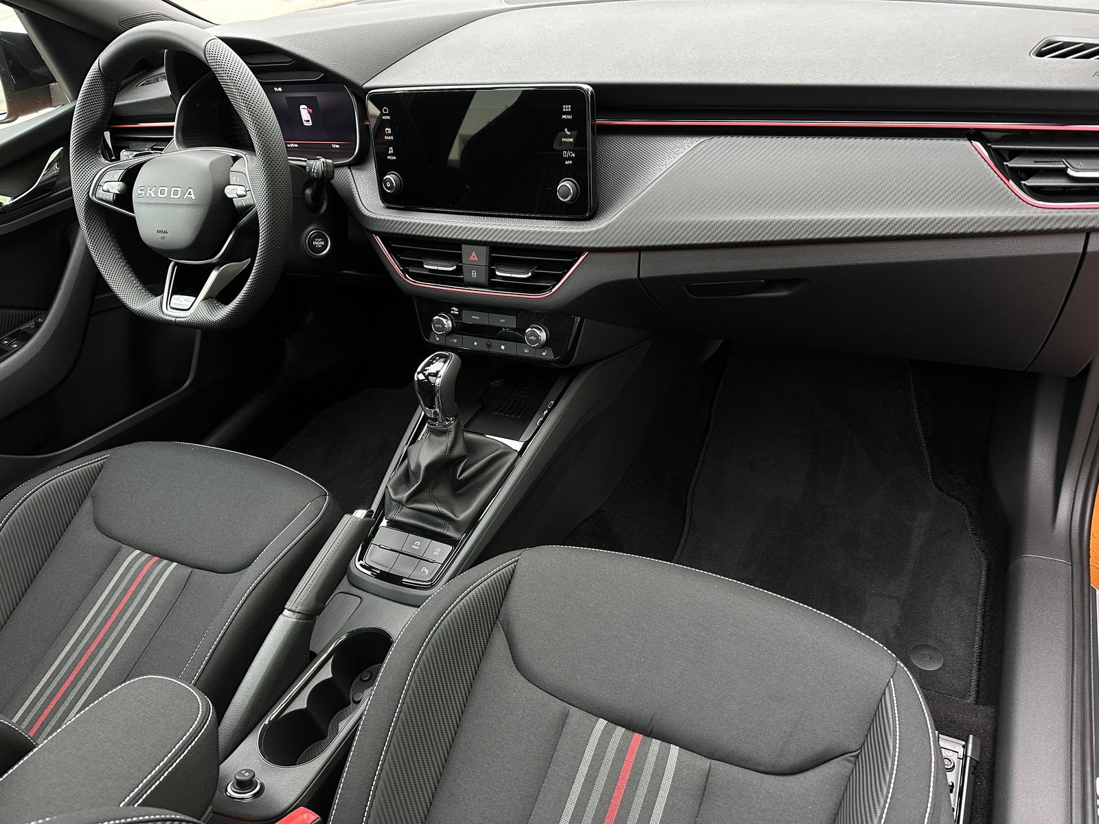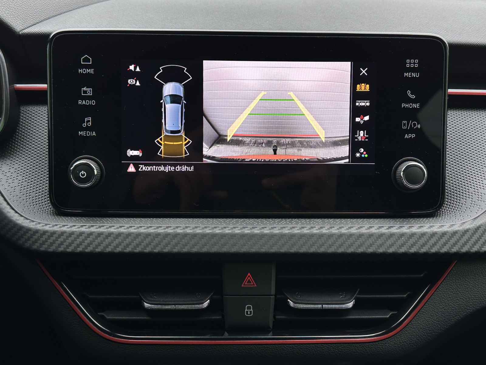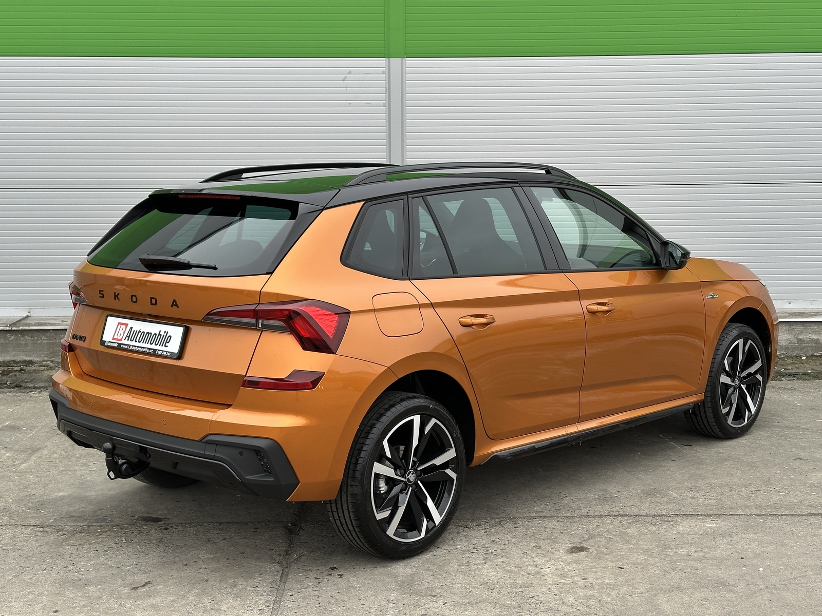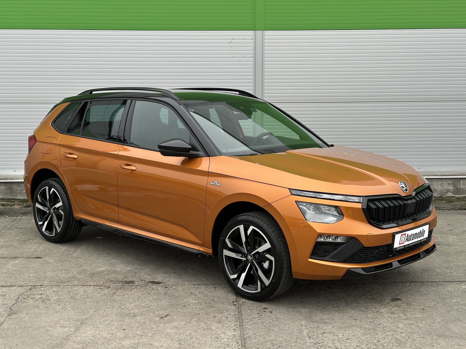 383/11060 Škoda Kamiq Monte Carlo 1.0TSi 85kW/116PS, 7.st Automatická převodovka, Tovární záruka Škoda Auto 5let/100.000km, Výbava vozu: Tažné zařízení sklopné - el. odjistitelné, Vyhřívané čelní sklo, Dvojitá podlaha v zavazadlovém prostoru, Ocelové rezervní kolo, Kola z lehkých slitin ALU Škoda "URSA" 7Jx18" Černá/Leštěná, Panoramatická střecha, Parkovací kamera vzadu, Parkovací senzory vpředu a vzadu - PDC P/Z, Asistent udržování v jízdním pruhu - Lane Assist, Asistent varování a brzdění při hrozící kolizi s vozidly, chodci a cyklisty - Front Assist, Asistent rozpoznání únavy řidiče, Asistent rozjezdu do kopce, Rozpoznávání dopravních značek, Systém Start/Stop, Volba jízdního režimu, Bezklíčové odemykání a startování - KESSY, Tempomat s omezovačem rychlosti, Vyhřívaný multifunkční kožený volant pro DSG s pádly pod volantem - výškově a podélně nastavitelný, Kožená hlavice řadicí páky a madlo ruční brzdy, Sportovní přední sedadla, Bederní opěrky na předních sedadlech, Výškově nastavitelné sedadlo řidiče a spolujezdce, Dvouzónová automatická klimatizace - Climatronic, Vyhřívaná přední sedadla s oddělenou regulací, Loketní opěrka s Jumbo Boxem, Zadní loketní opěrka, Sportovní interiér Monte Carlo s černou stropnicí, Potah sedadel – látka, Vnitřní zpětné zrcátko s automatickým stmíváním, Elektrické ovládání oken vpředu i vzadu, Zatmavená zadní okna - Sunset, Vnější zpětná zrcátka elektricky sklopná, nastavitelná a vyhřívaná, Virtuální Cockpit, Infotainment Media 8", Bezdrátový Smartlink, Bluetooth, DAB, 8x Reproduktor, Bezdrátové nabíjení telefonu, 2x USB-C a 12V zásuvka předu i vzadu, Ambientní LED osvětlení interiéru, Matrix-LED přední světlomety, Mlhové světlomety, LED zadní světla s animovanými ukazateli směru jízdy, Senzor světla a deště, Kontrola tlaku v pneumatikách, Sportovní kryty pedálů, Dekorativní prahové lišty, Černě lakované doplňky karoserie, 3x Isofix a Top Tether, ABS, ESP, 6x Airbag, Deaktivace airbagu spolujezdce, Centrální zamykání s dálkovým ovládáním, Alarm, Nouzové volání SOS - eCall, Zatížení nebržděného tažného zařízení - 610kg, Zatížení bržděného tažného zařízení - 1200kg, Nový vůz s registrací 25. 11. 2025. Servisní kniha + dokumentace Škoda Auto, Možnost odpočtu DPH 21%, Termín odběru a předání od 21. 05. 2026.