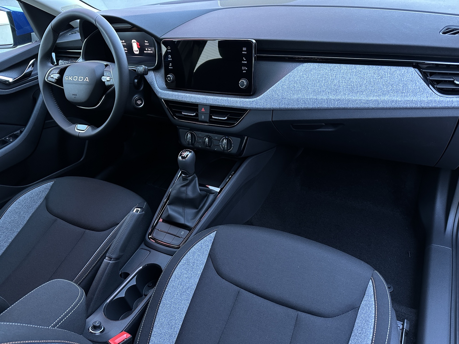 88/11061 Škoda Kamiq 1.0TSi 85kW/116PS, 6st. Manuální převodovka, Tovární záruka Škoda Auto 5let/100.000km, Výbava vozu: Paket Exteriér PLUS – (Dešťový senzor, TOP LED zadní světla, Elektricky sklopná boční zpětná zrcátka, Corner funkce - přisvěcování světlometů do zatáček), Příprava pro tažné zařízení, Rezervní ocelové kolo, Interiér Loft – černá/šedá, Potah sedadel – látka, LED světlomety s LED denním svícením, Upozornění na únavu řidiče, LED zadní světla, Asistent rozjezdu do kopce, Přední mlhové světlomety, Tempomat, Front Assist – varování a brzdění při hrozící kolizi s vozidly, chodci a cyklisty, 6x airbag, Deaktivace airbagu spolujezdce, Asistent udržování jízdního pruhu – Lane Assist, 3x ISOFIX a Top Tether – 1x vpředu, 2x vzadu, Zadní parkovací senzory – PDC, Rozpoznávání dopravních značek, Virtual Cockpit Mini 8", Startování tlačítkem a centrální zamykání s dálkovým ovládáním, Senzor světla, Loketní opěrka, Vnější zpětná zrcátka elektricky nastavitelná a vyhřívaná, Elektrická okna vpředu i vzadu, 2x USB-C, Deštník ve dveřích řidiče, Sada na opravu pneumatik, Multifunkční kožený volant, Hlavice řadicí páky a madlo ruční brzdy z kůže, Manuální klimatizace - AC, Kola z lehkých slitin ALU Škoda "NYOTA" 6Jx16", Vyhřívaná přední sedadla, Výškově nastavitelné sedadlo řidiče i spolujezdce, Bederní opěrky na předních sedadlech, Infotainment Media 8" – (Bluetooth, 4 reproduktory, DAB), Nouzové volání SOS eCall+, Zadní parkovací kamera, 2x USB-C vzadu, Bezdrátový SmartLink, 8 reproduktorů, Nový vůz ČR, Servisní kniha + dokumentace Škoda Auto, Možnost odpočtu DPH 21%, Skladem - ihned k odběru.