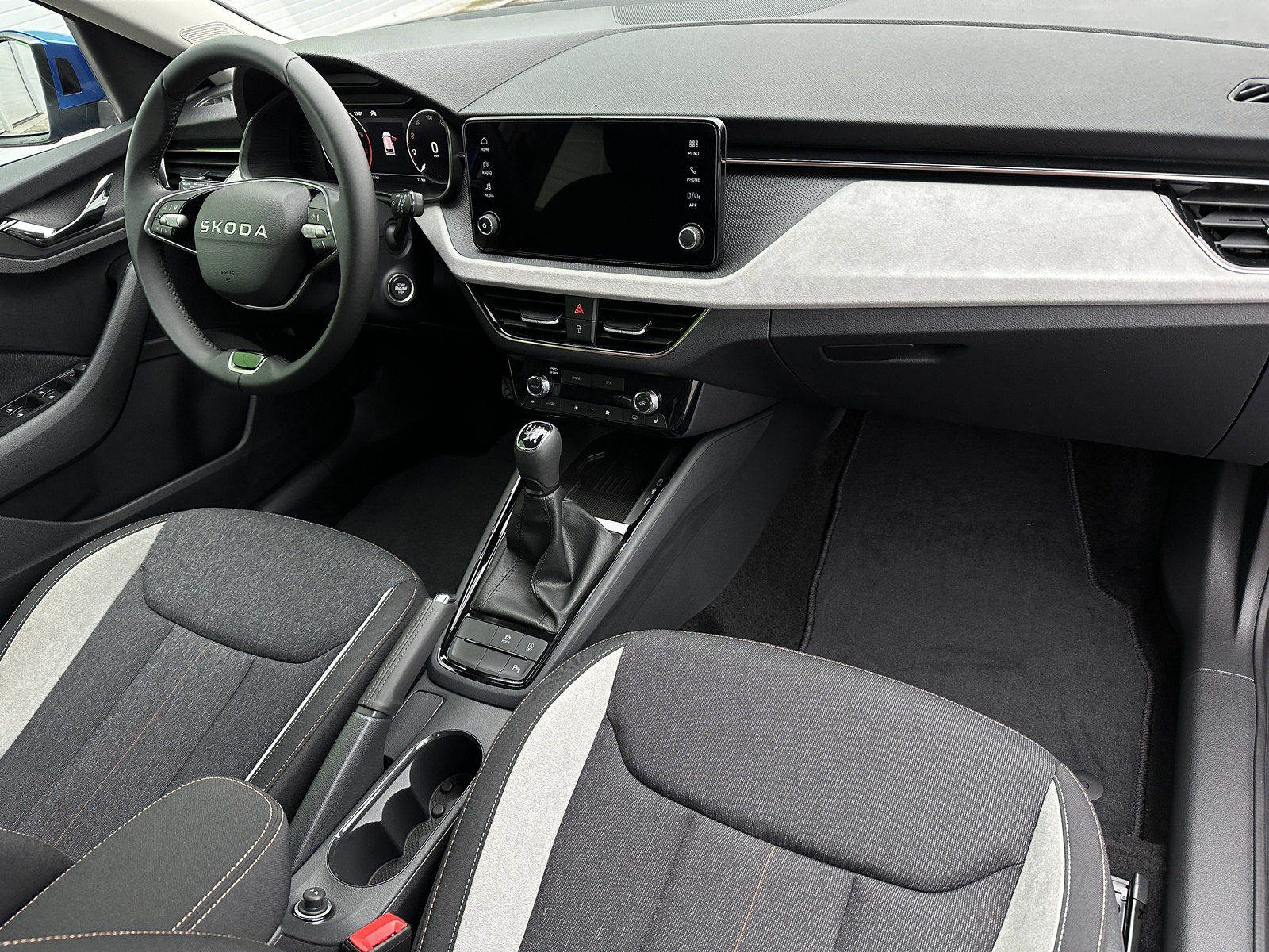 386/11063 Škoda Kamiq Premium 1.0TSi 85kW/116PS, 6st. Manuální převodovka, Tovární záruka Škoda Auto 5let/100.000km, Výbava vozu: LED světlomety s LED denním svícením, Upozornění na únavu řidiče, LED zadní světla, Asistent rozjezdu do kopce, Přední mlhové světlomety, Tempomat, Front Assist – s varováním a brzděním při hrozící kolizi s vozidly, chodci a cyklisty, 6× Airbag, Deaktivace airbagu spolujezdce, Lane Assist – Asistent udržování v jízdním pruhu, 3× ISOFIX a Top Tether – 1× vpředu, 2× vzadu, Zadní parkovací senzory – PDC, Rozpoznávání dopravních značek, Startování tlačítkem a centrální zamykání s dálkovým ovládáním, Světelný senzor, Loketní opěrka s Jumbo Boxem, Elektrické ovládání oken vpředu i vzadu, 2× USB-C, 12V zásuvka vpředu i v zavazadlovém prostoru, Sada na opravu pneumatik, Vyhřívaná přední sedadla, Hlavice řadicí páky a madlo ruční brzdy z kůže, Výškově nastavitelná sedadla řidiče a spolujezdce, Bederní opěrky na předních sedadlech, Nouzový systém tísňového volání SOS eCall+, Dekorativní obložení ze šedé Suedia, rámečky v měděném provedení, Čalounění sedadel – látka, Dvoubarevné LED ambientní osvětlení, Střešní nosič – stříbrný, TOP LED zadní světla s animovanými směrovkami, Corner funkce mlhových světlometů, Elektricky sklopná vnější zpětná zrcátka s automatickým stmíváním na straně řidiče, Vnitřní zpětné zrcátko s automatickým stmíváním, Dešťový senzor, Bezdrátové nabíjení mobilních telefonů s chlazením, Zadní loketní opěrka, Vyhřívaný multifunkční kožený volant pro DSG s pádly řazení pod volantem, Sunset – zatmavená zadní okna, Dvouzónová automatická klimatizace Climatronic, Infotainment – 8 reproduktorů, bezdrátový SmartLink, Kola z lehkých slitin ALU Škoda "STRATOS" 6,5J×17" stříbrná, Side Assist – Asistent hlídání mrtvého úhlu, Zadní parkovací kamera – KAMERA, Přední parkovací senzory – PDC, Alarm, Virtuální kokpit 10", Virtuální pedál – elektrické otevírání víka kufru pohybem nohy pod zavazadlovým prostorem, KESSY – bezklíčové zamykání a startování, Volba jízdního režimu, Nový vůz ČR, Servisní kniha + dokumentace Škoda Auto, Možnost odpočtu DPH 21%, Skladem - ihned k odběru.