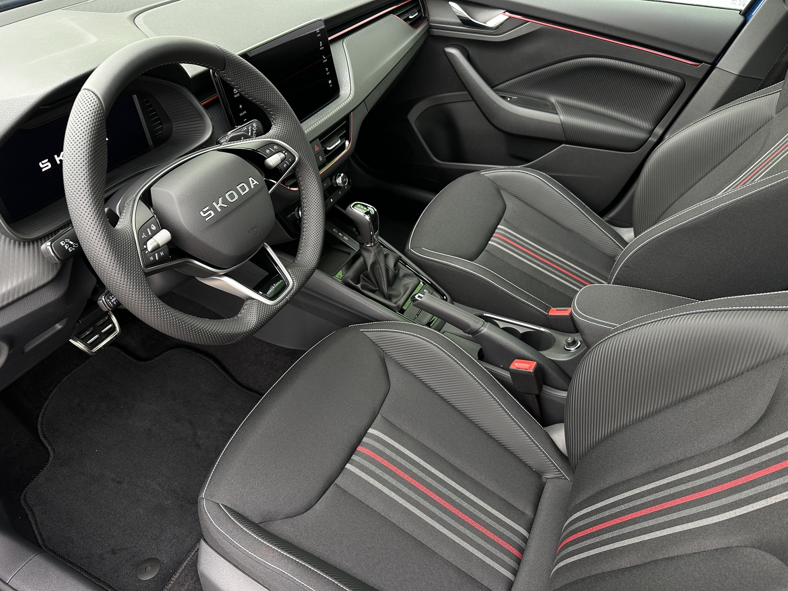 96/11135 Škoda Kamiq Monte Carlo 1.5TSi 110kW/150PS, 7st. Automatická převodovka DSG, Tovární záruka Škoda Auto 5let/100.000km, Výbava vozu: Tažné zařízení sklopné - el. odjistitelné, Paket NAVI - (Infotainment s navigací, Webradio, Virtuální Cockpit, Digitální asistentka Laura), Paket City PREMIUM - (Parkovací kamera vzadu, Parkovací senzory vpředu - PDC/P, KESSY s alarmem, Volba jízdního režimu, Virtuální pedál, Virtuální cockpit, Automatické parkování), Asistovaná jízda 1.5 PLUS - (Adaptivní tempomat - ACC, Adaptivní asistent vedení v jízdním pruhu - Adaptivní Lane Assist, Asistent hlídání mrtvého úhlu - Side Assist), Vyhřívané čelní sklo, Dvojitá podlaha v zavazadlovém prostoru, Kola z lehkých slitin ALU Škoda "URSA" 7Jx18" Černá/Leštěná, Panoramatická střecha, Parkovací senzory vpředu a vzadu – PDC P/Z, Asistent varování a brzdění při hrozící kolizi s vozidly, chodci a cyklisty - Front Assist, Asistent rozpoznání únavy řidiče, Asistent rozjezdu do kopce, Rozpoznávání dopravních značek, Systém Start/Stop, Bezklíčové odemykání a startování - KESSY, Vyhřívaný multifunkční kožený volant pro DSG s pádly pod volantem - výškově a podélně nastavitelný, Kožená hlavice řadicí páky a madlo ruční brzdy, Sportovní přední sedadla, Bederní opěrky na předních sedadlech, Výškově nastavitelné sedadlo řidiče a spolujezdce, Dvouzónová automatická klimatizace - Climatronic, Vyhřívaná přední sedadla s oddělenou regulací, Loketní opěrka s Jumbo Boxem, Zadní loketní opěrka, Sportovní interiér Monte Carlo s černou stropnicí, Potah sedadel – látka, Vnitřní zpětné zrcátko s automatickým stmíváním, Elektrické ovládání oken vpředu i vzadu, Zatmavená zadní okna - Sunset, Vnější zpětná zrcátka elektricky sklopná, nastavitelná a vyhřívaná, Bezdrátový Smartlink, Bluetooth, DAB, 8x reproduktor, Bezdrátové nabíjení telefonu, 2x USB-C a 12 V zásuvka vpředu i vzadu, Ambientní LED osvětlení interiéru, Matrix-LED přední světlomety, Mlhové světlomety, LED zadní světla s animovanými ukazateli směru jízdy, Senzor světla a deště, Kontrola tlaku v pneumatikách, Sada na opravu pneumatik, 3x Isofix a Top Tether, ABS, ESP, 6x Airbag, Deaktivace airbagu spolujezdce, Nouzové volání SOS - eCall, Sportovní kryty pedálů, Dekorativní prahové lišty, Černě lakované doplňky karoserie, Střešní nosič, Zatížení bržděného tažného zařízení - 1250kg, Zatížení nebržděného tažného zařízení - 640kg, NOVÝ VŮZ, Servisní kniha + dokumentace Škoda Auto, Možnost odpočtu DPH 21%, Skladem - ihned k odběru.