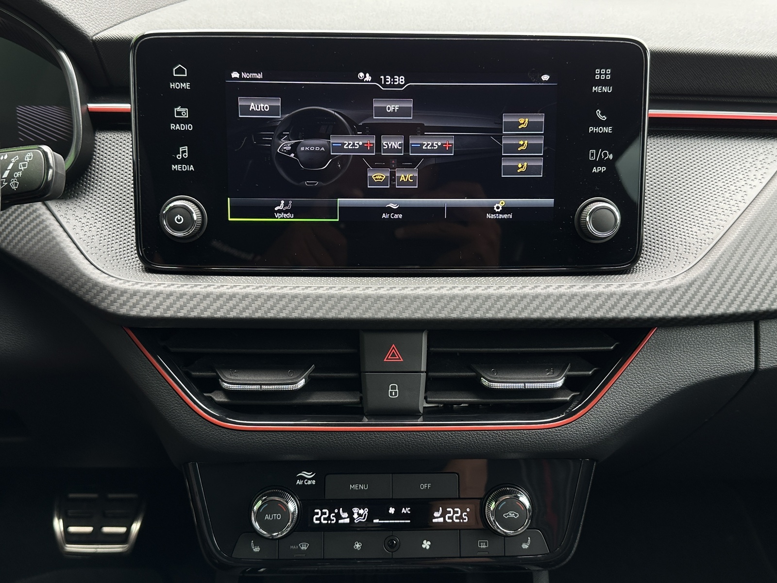 362/11174 Škoda Kamiq Monte Carlo 1.0TSi DSG 85kW/116PS, 7st. Automatická převodovka DSG, Tovární záruka Škoda Auto 5let/100.000km, Výbava vozu: Paket Asistovaná jízda 1.5 PLUS - (Adaptivní tempomat - ACC, Lane Assist Plus - Adaptivní vedení v jízdním pruhu, Side Assist - asistent varování mrtvého úhlu), Dvojitá podlaha zavazadlového prostoru, Kola z lehkých slitin ALU Škoda "URSA" 7Jx18" Černá/Leštěná, Vyhřívané čelní sklo, Matrix-LED přední světlomety, Panoramatická střecha, Interiér – sportovní Monte Carlo s černou stropnicí, Černě lakované doplňky karoserie, LED zadní světla s animovanými směrovkami, Vyhřívaný sportovní multifunkční kožený volant – pro DSG s pádly pod volantem, Sportovní kryty pedálů, Dekorativní prahové lišty, KESSY – bezklíčové odemykání a startování, Volba jízdních režimů, Zadní parkovací kamera, Parkovací senzory vpředu a vzadu – PDC, Mlhové světlomety, Elektricky sklopná vnější zrcátka s automatickým stmíváním, 2x USB-C vzadu, Dešťový senzor, Světelný senzor, Vnitřní zpětné zrcátko s automatickým stmíváním, Bezdrátové nabíjení pro Smartphone, Zadní loketní opěrka, Loketní opěrka s Jumbo Boxem vpředu, Dvouzónová automatická klimatizace Climatronic, Vyhřívaná přední sedadla, Bederní opěrky na předních sedadlech, Výškově nastavitelná sedadla řidiče a spolujezdce, Kožená hlavice řadicí páky a madlo ruční brzdy, Elektrické ovládání oken vpředu i vzadu, 12V zásuvka vpředu a vzadu, 2x USB-C, 8 reproduktorů, Bluetooth, DAB, Bezdrátový Smartlink - zrcadlení aplikací z mobilního telefonu na Infotainment vozu, Front Assist – varování a brzdění při hrozící kolizi s vozidly, chodci a cyklisty, Rozpoznávání dopravních značek, Upozornění na únavu řidiče, Asistent rozjezdu do kopce, Virtual Cockpit, 6x airbag, 3x Isofix a Top Tether, Deaktivace airbagu spolujezdce, Nouzové volání SOS - eCall, Potah sedadel – látka, Sunset – zatmavená zadní okna, Nový vůz s registrací, Servisní kniha + dokumentace Škoda Auto, Možnost odpočtu DPH 21%, Termín odběru a předání od 15.4.2026.