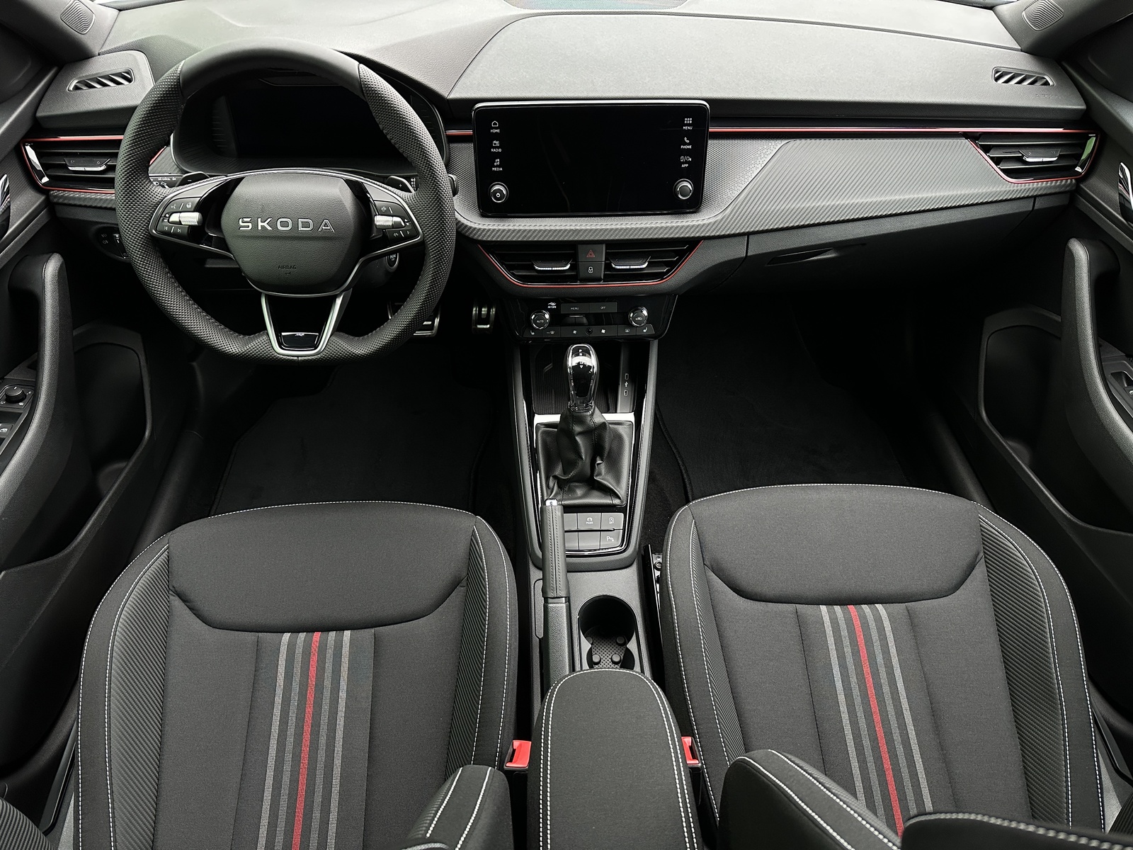 49/11180 Škoda Kamiq Monte Carlo 1.0TSi DSG 85kW/116PS, 7st. Automatická převodovka DSG, Tovární záruka Škoda Auto 5let/100.000km, Výbava vozu: Paket Asistovaná jízda 1.5 PLUS - (Adaptivní tempomat - ACC, Lane Assist Plus - Adaptivní vedení v jízdním pruhu, Side Assist - asistent varování mrtvého úhlu), Dvojitá podlaha zavazadlového prostoru, Kola z lehkých slitin ALU Škoda "URSA" 7Jx18" Černá/Leštěná, Vyhřívané čelní sklo, Matrix-LED přední světlomety, Panoramatická střecha, Interiér – sportovní Monte Carlo s černou stropnicí, Černě lakované doplňky karoserie, LED zadní světla s animovanými směrovkami, Vyhřívaný sportovní multifunkční kožený volant – pro DSG s pádly pod volantem, Sportovní kryty pedálů, Dekorativní prahové lišty, KESSY – bezklíčové odemykání a startování, Volba jízdních režimů, Zadní parkovací kamera, Parkovací senzory vpředu a vzadu – PDC, Mlhové světlomety, Elektricky sklopná vnější zrcátka s automatickým stmíváním, 2x USB-C vzadu, Dešťový senzor, Světelný senzor, Vnitřní zpětné zrcátko s automatickým stmíváním, Bezdrátové nabíjení pro Smartphone, Zadní loketní opěrka, Loketní opěrka s Jumbo Boxem vpředu, Dvouzónová automatická klimatizace Climatronic, Vyhřívaná přední sedadla, Bederní opěrky na předních sedadlech, Výškově nastavitelná sedadla řidiče a spolujezdce, Kožená hlavice řadicí páky a madlo ruční brzdy, Elektrické ovládání oken vpředu i vzadu, 12V zásuvka vpředu a vzadu, 2x USB-C, 8 reproduktorů, Bluetooth, DAB, Bezdrátový Smartlink - zrcadlení aplikací z mobilního telefonu na Infotainment vozu, Front Assist – varování a brzdění při hrozící kolizi s vozidly, chodci a cyklisty, Rozpoznávání dopravních značek, Upozornění na únavu řidiče, Asistent rozjezdu do kopce, Virtual Cockpit, 6x airbag, 3x Isofix a Top Tether, Deaktivace airbagu spolujezdce, Nouzové volání SOS - eCall, Potah sedadel – látka, Sunset – zatmavená zadní okna, Nový vůz s registrací, Servisní kniha + dokumentace Škoda Auto, Možnost odpočtu DPH 21%, Termín odběru a předání od 15.4.2026.
