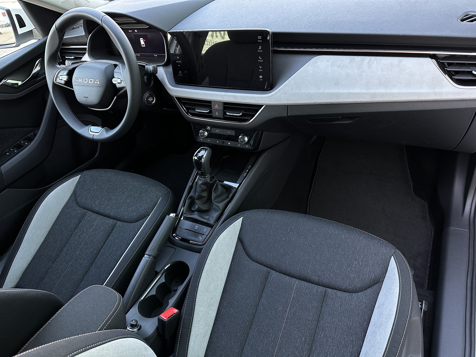 403/11234 Škoda Kamiq Premium 1.5TSi 110kW/150PS, 7st. Automatická převodovka DSG, Tovární záruka Škoda Auto 5let/100.000km, Výbava vozu: Paket Asistovaná jízda 1.5 PLUS - (Adaptivní tempomat - ACC, Lane Assist Plus - Adaptivní vedení v jízdním pruhu, Side Assist - asistent varování mrtvého úhlu), Paket NAVI - (Infotainment s navigací, Webradio, Virtuální Cockpit, Digitální asistentka Laura), Tažné zařízení sklopné - el. odjistitelné, Dvojitá podlaha zavazadlového prostoru, Kola z lehkých slitin ALU Škoda "KAJAM AERO" 6,5J×17" stříbrná, Vyhřívané čelní sklo, LED světlomety s LED denním svícením, Upozornění na únavu řidiče, LED zadní světla, Asistent rozjezdu do kopce, Přední mlhové světlomety, Tempomat, Front Assist – s varováním a brzděním při hrozící kolizi s vozidly, chodci a cyklisty, 6× Airbag, Deaktivace airbagu spolujezdce, Lane Assist – Asistent udržování v jízdním pruhu, 3× ISOFIX a Top Tether – 1× vpředu, 2× vzadu, Zadní parkovací senzory – PDC/Z, Rozpoznávání dopravních značek, Startování tlačítkem a centrální zamykání s dálkovým ovládáním, Světelný senzor, Loketní opěrka s Jumbo Boxem, Elektrické ovládání oken vpředu i vzadu, 2× USB-C, 12V zásuvka vpředu i v zavazadlovém prostoru, Sada na opravu pneumatik, Vyhřívaná přední sedadla, Hlavice řadicí páky a madlo ruční brzdy z kůže, Výškově nastavitelná sedadla řidiče a spolujezdce, Bederní opěrky na předních sedadlech, Nouzový systém tísňového volání SOS eCall+, Dekorativní obložení ze šedé Suedia, rámečky v měděném provedení, Čalounění sedadel – látka, Dvoubarevné LED ambientní osvětlení, Střešní nosič – stříbrný, TOP LED zadní světla s animovanými směrovkami, Corner funkce mlhových světlometů, Elektricky sklopná vnější zpětná zrcátka s automatickým stmíváním na straně řidiče, Vnitřní zpětné zrcátko s automatickým stmíváním, Dešťový senzor, Bezdrátové nabíjení mobilních telefonů s chlazením, Zadní loketní opěrka, Vyhřívaný multifunkční kožený volant pro DSG s pádly řazení pod volantem, Sunset – zatmavená zadní okna, Dvouzónová automatická klimatizace Climatronic, Infotainment – 8 reproduktorů, bezdrátový SmartLink, Side Assist – Asistent hlídání mrtvého úhlu, Zadní parkovací kamera – KAMERA, Přední parkovací senzory – PDC/P, Alarm, Virtuální kokpit 10", Virtuální pedál – elektrické otevírání víka kufru pohybem nohy pod zavazadlovým prostorem, KESSY – bezklíčové zamykání a startování, Volba jízdního režimu, Nový vůz ČR, Servisní kniha + dokumentace Škoda Auto, Možnost odpočtu DPH 21%, Skladem - ihned k odběru.