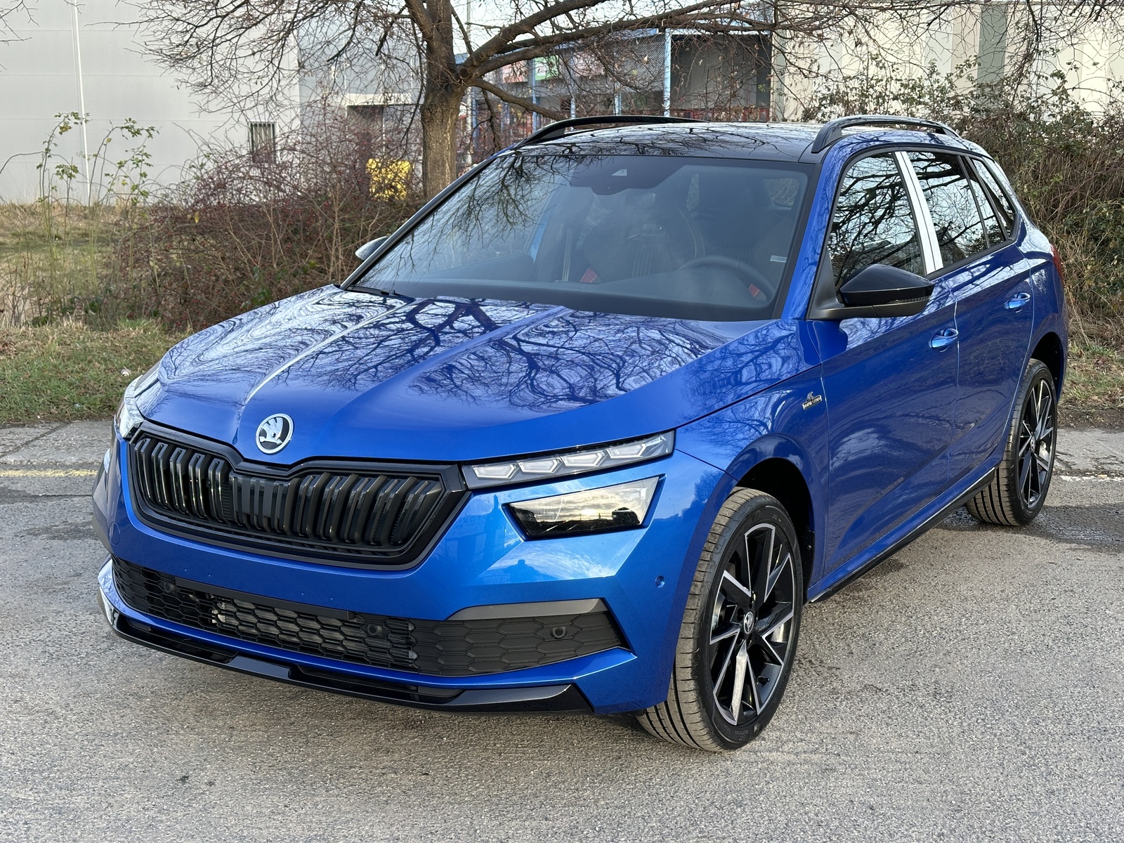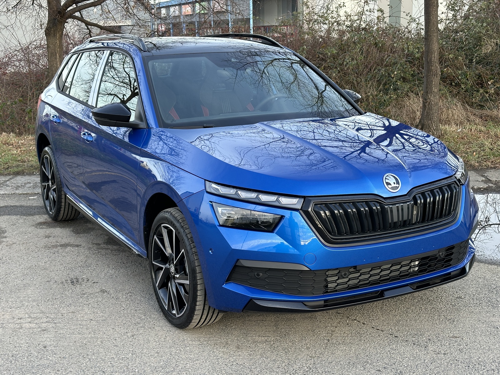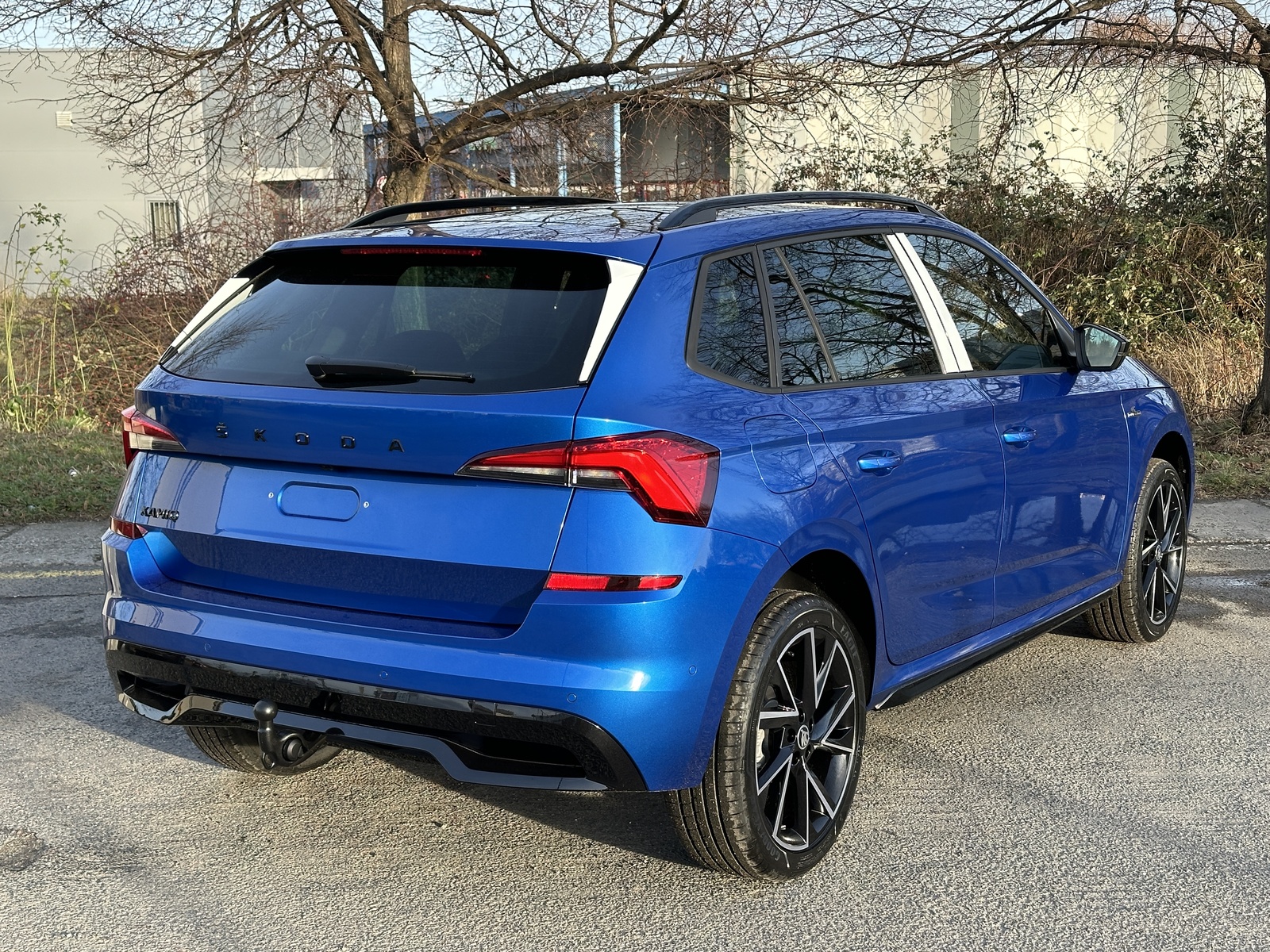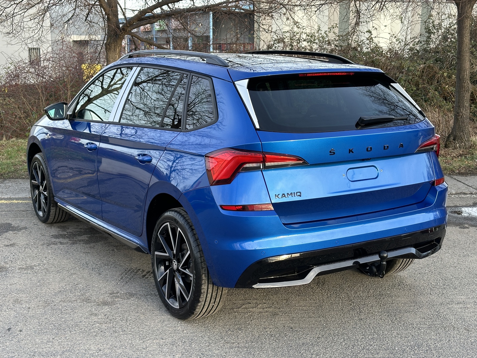 Škoda Kamiq 1.5TSi DSG Monte Carlo 110kW/150PS, 7st. Automatická převodovka DSG, Tovární záruka Škoda Auto 5let/100.000km, Výbava vozu: Tažné zařízení sklopné - el. odjistitelné, Travel Assist TOP - (Infotainment Amundsen 9,2" s Navigací, Digitální asistentka Laura, Virtuální Cockpit, Adaptivní vedení v jízdním pruhu - Lane Assist+, Rozpoznávání dopravních značek, Prediktivní tempomat - ACC, Vyhřívání volantu, Automatické parkování, Asistent jízdy v koloně, Nouzový asistent), Komfort Paket - (El. ovládané víko zavazadlového prostoru, Vyhřívané čelní sklo, Vyhřívání volantu, Středová loketní opěrka vzadu), Simply Clever Paket - (Ochrana hran bočních dveří, 12V zásuvka v zavazadlovém prostoru, Úložný prostor pod předními sedadly), Zpětná zrcátka v černé barvě, Dekor Black Dots s černým orámováním, Ambientní LED osvětlení - červené, Černě lakované doplňky karoserie, Panoramatické střešní okno, Bi-LED přední světlomety + Top LED zadní světla, Rozpoznávání únavy řidiče, Sunset, Volba jízdního režimu, Sportovní multifunkční kožený volant, Dekorativní prahové lišty, Sportovní kryty pedálů, Parkovací senzory vpředu a vzadu - PDC, Parkovací KAMERA vzadu, Sportovní sedadla Monte Carlo, KESSY - bezklíčové odemykání a startování, Elektrochromatické vnitřní zpětná zrcátko, El. sklápění pro vnější zp. zrcátka, El. ovládání předních a zadních oken, Dvouzónová automatická klimatizace Climatronic, Vyhřívání předních sedadel, Senzor světel a stěračů, Isofix, 9x airbag, 3x USB-C, Bederní opěrky v předních sedadlech, Smartlink - AndroidAuto + Apple CarPlay, Kola z lehkých slitin ALU Škoda "VEGA" 7Jx18", Nový vůz, Servisní kniha + kompletní dokumentace Škoda Auto, Možnost odpočtu DPH 21%, Skladem - ihned k odběru.