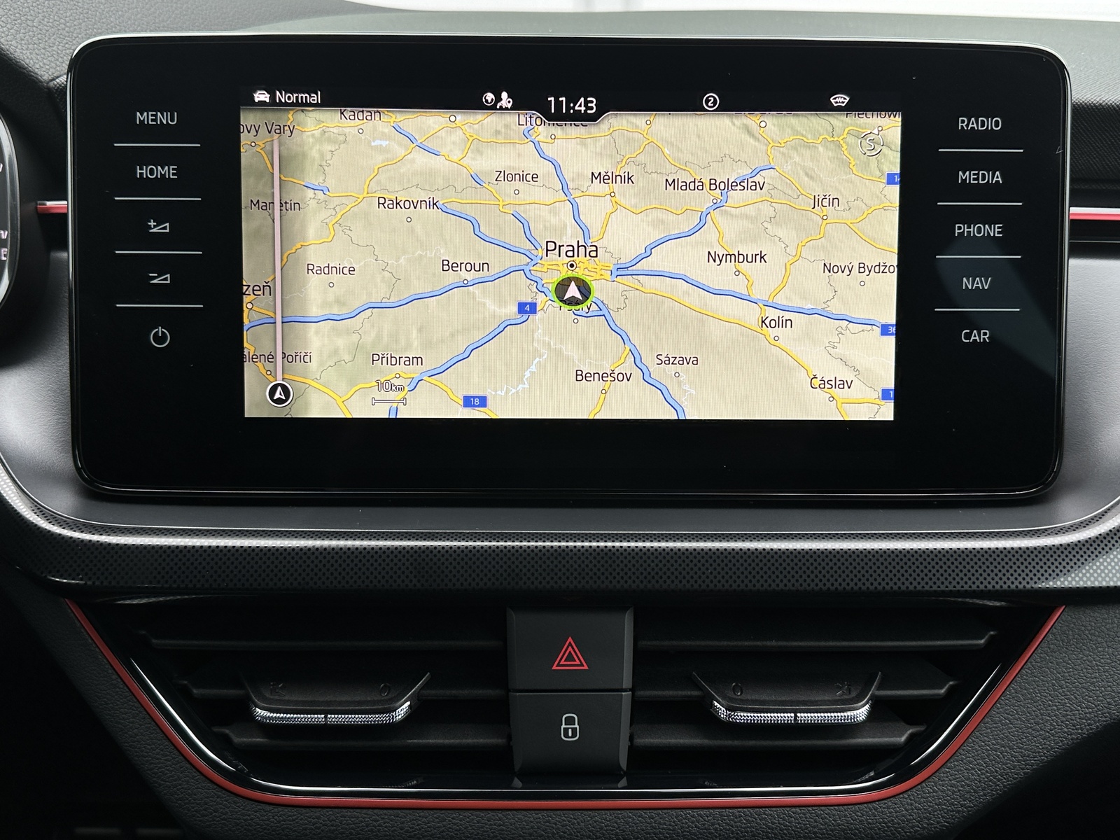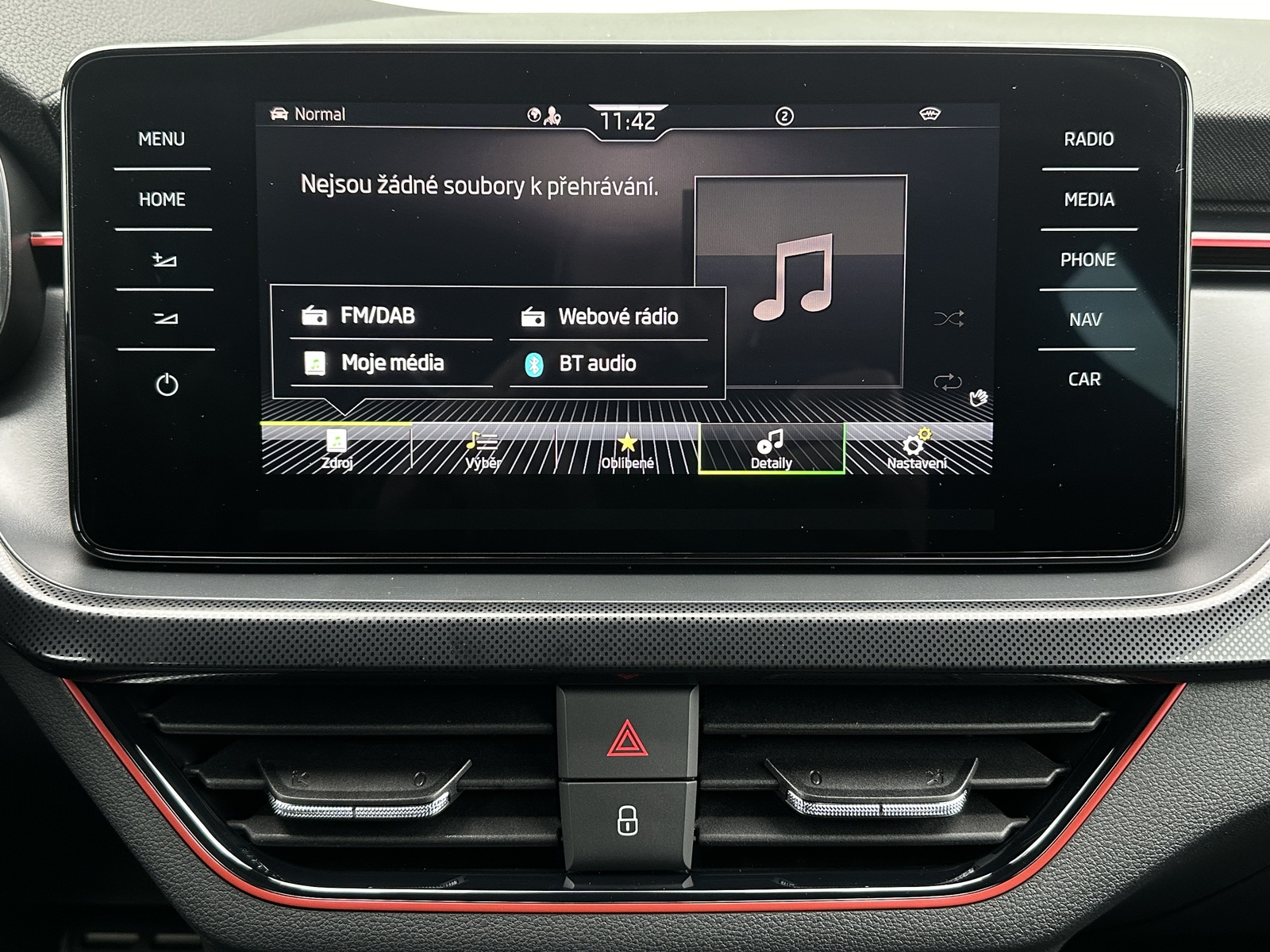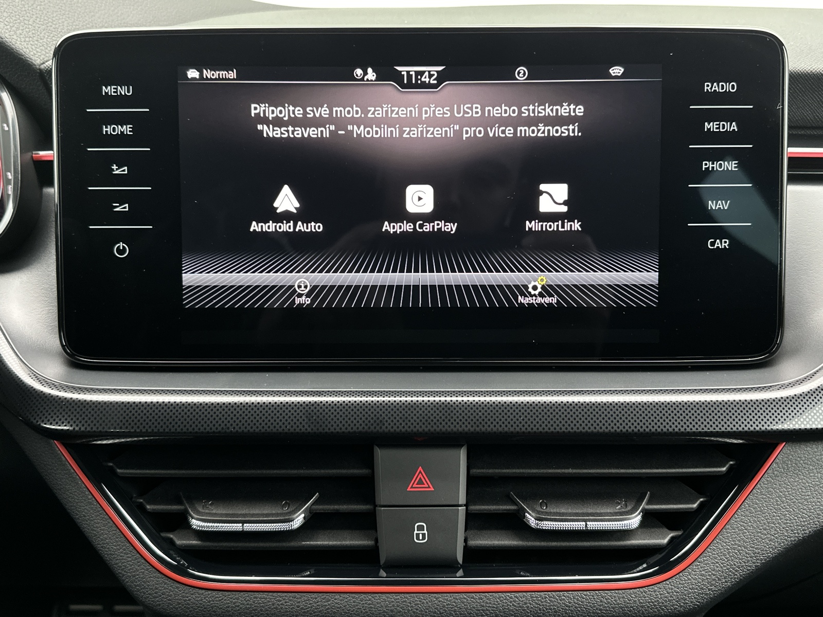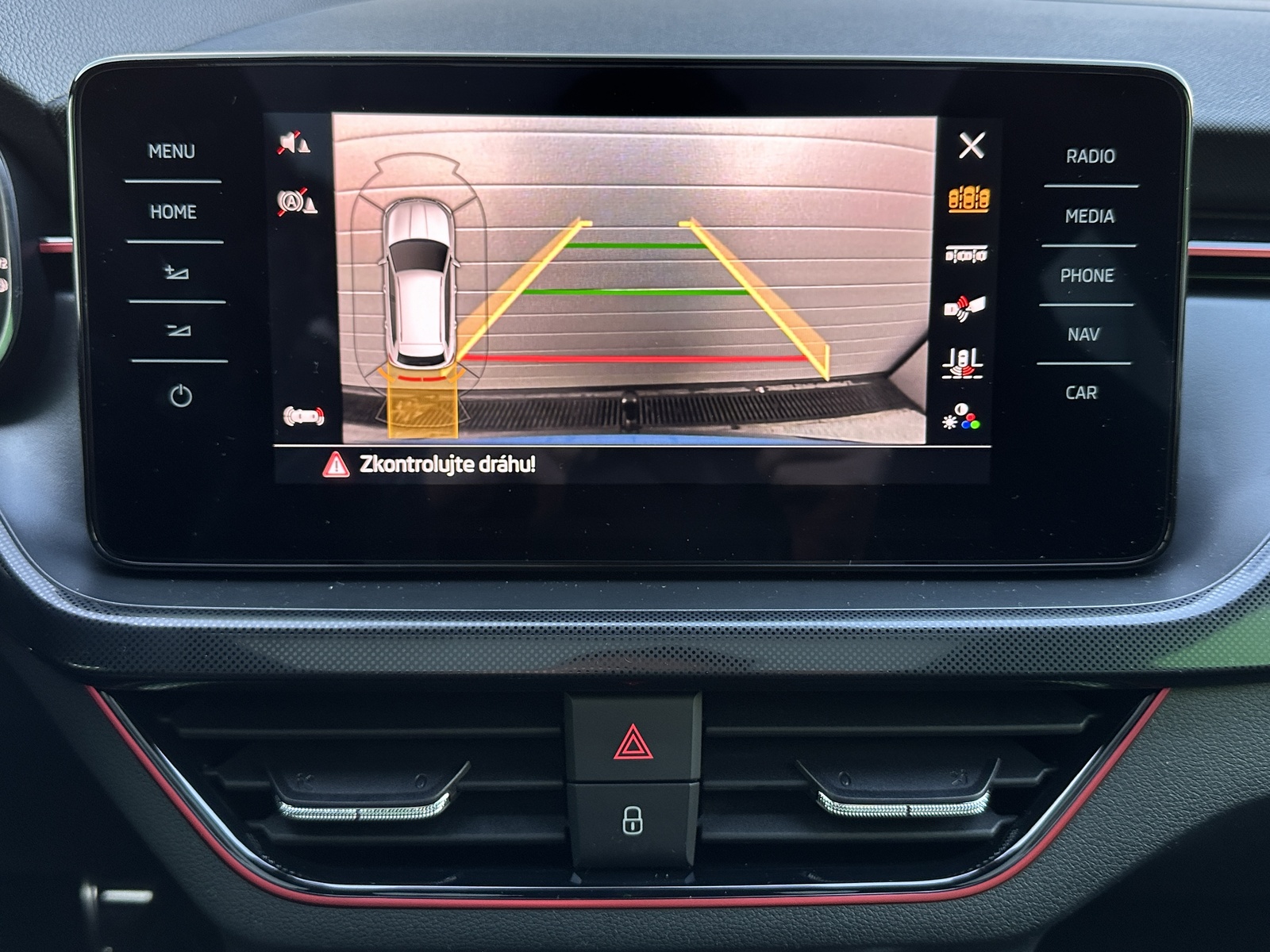 Škoda Kamiq 1.5TSi DSG Monte Carlo 110kW/150PS, 7st. Automatická převodovka DSG, Tovární záruka Škoda Auto 5let/100.000km, Výbava vozu: Tažné zařízení sklopné - el. odjistitelné, Travel Assist TOP - (Infotainment Amundsen 9,2" s Navigací, Digitální asistentka Laura, Virtuální Cockpit, Adaptivní vedení v jízdním pruhu - Lane Assist+, Rozpoznávání dopravních značek, Prediktivní tempomat - ACC, Vyhřívání volantu, Automatické parkování, Asistent jízdy v koloně, Nouzový asistent), Komfort Paket - (El. ovládané víko zavazadlového prostoru, Vyhřívané čelní sklo, Vyhřívání volantu, Středová loketní opěrka vzadu), Simply Clever Paket - (Ochrana hran bočních dveří, 12V zásuvka v zavazadlovém prostoru, Úložný prostor pod předními sedadly), Zpětná zrcátka v černé barvě, Dekor Black Dots s černým orámováním, Ambientní LED osvětlení - červené, Černě lakované doplňky karoserie, Panoramatické střešní okno, Bi-LED přední světlomety + Top LED zadní světla, Rozpoznávání únavy řidiče, Sunset, Volba jízdního režimu, Sportovní multifunkční kožený volant, Dekorativní prahové lišty, Sportovní kryty pedálů, Parkovací senzory vpředu a vzadu - PDC, Parkovací KAMERA vzadu, Sportovní sedadla Monte Carlo, KESSY - bezklíčové odemykání a startování, Elektrochromatické vnitřní zpětná zrcátko, El. sklápění pro vnější zp. zrcátka, El. ovládání předních a zadních oken, Dvouzónová automatická klimatizace Climatronic, Vyhřívání předních sedadel, Senzor světel a stěračů, Isofix, 9x airbag, 3x USB-C, Bederní opěrky v předních sedadlech, Smartlink - AndroidAuto + Apple CarPlay, Kola z lehkých slitin ALU Škoda "VEGA" 7Jx18", Nový vůz, Servisní kniha + kompletní dokumentace Škoda Auto, Možnost odpočtu DPH 21%, Skladem - ihned k odběru.