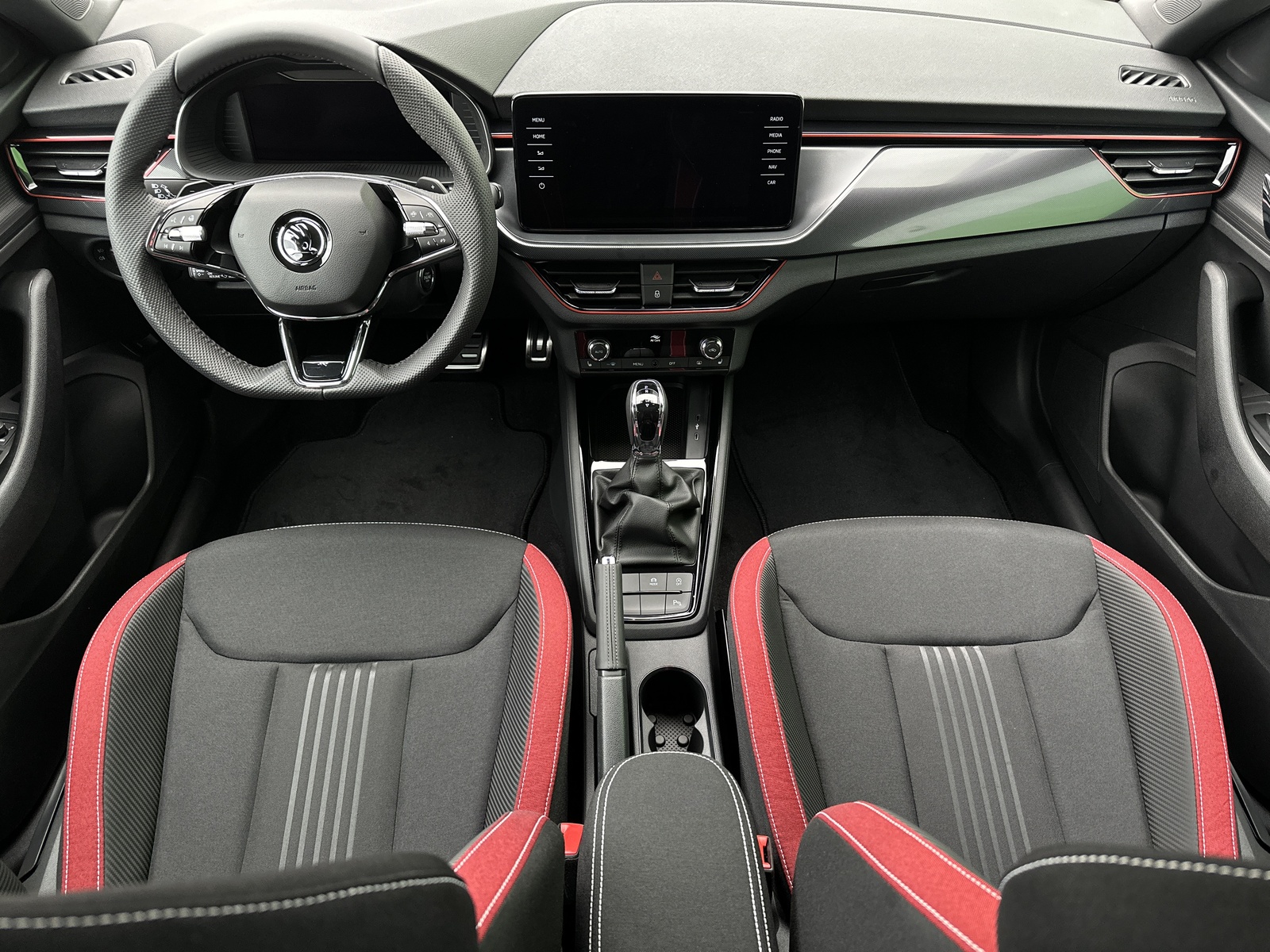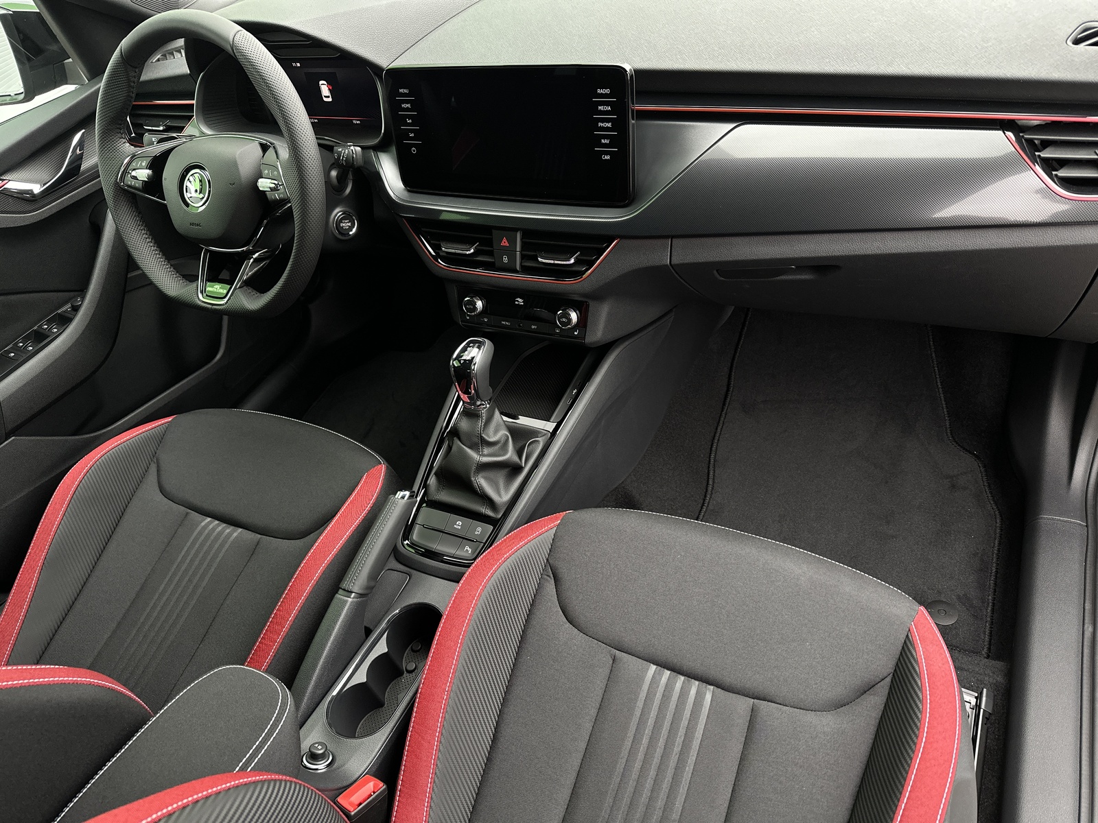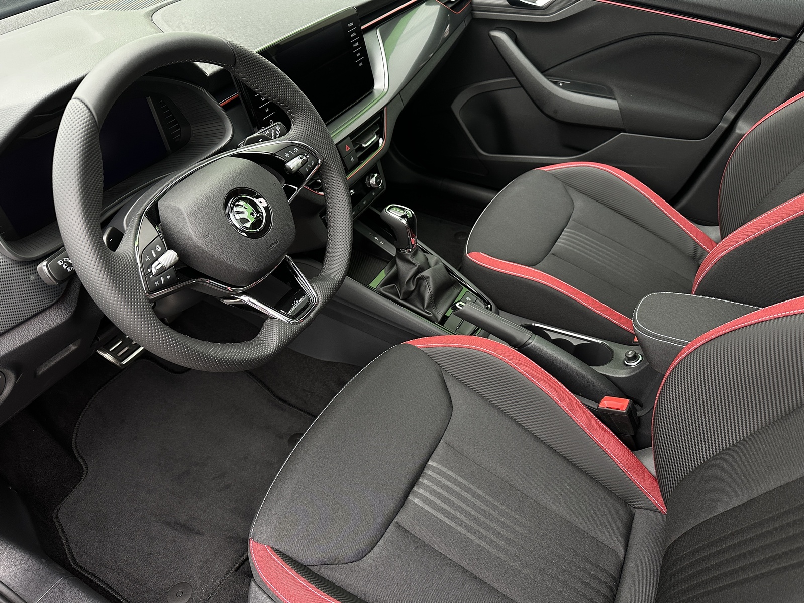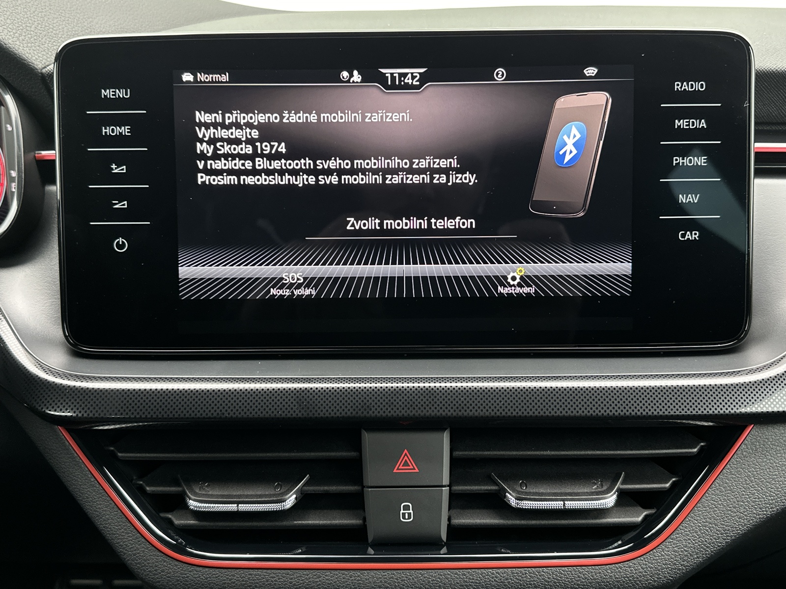 Škoda Kamiq 1.5TSi DSG Monte Carlo 110kW/150PS, 7st. Automatická převodovka DSG, Tovární záruka Škoda Auto 5let/100.000km, Výbava vozu: Tažné zařízení sklopné - el. odjistitelné, Travel Assist TOP - (Infotainment Amundsen 9,2" s Navigací, Digitální asistentka Laura, Virtuální Cockpit, Adaptivní vedení v jízdním pruhu - Lane Assist+, Rozpoznávání dopravních značek, Prediktivní tempomat - ACC, Vyhřívání volantu, Automatické parkování, Asistent jízdy v koloně, Nouzový asistent), Komfort Paket - (El. ovládané víko zavazadlového prostoru, Vyhřívané čelní sklo, Vyhřívání volantu, Středová loketní opěrka vzadu), Simply Clever Paket - (Ochrana hran bočních dveří, 12V zásuvka v zavazadlovém prostoru, Úložný prostor pod předními sedadly), Zpětná zrcátka v černé barvě, Dekor Black Dots s černým orámováním, Ambientní LED osvětlení - červené, Černě lakované doplňky karoserie, Panoramatické střešní okno, Bi-LED přední světlomety + Top LED zadní světla, Rozpoznávání únavy řidiče, Sunset, Volba jízdního režimu, Sportovní multifunkční kožený volant, Dekorativní prahové lišty, Sportovní kryty pedálů, Parkovací senzory vpředu a vzadu - PDC, Parkovací KAMERA vzadu, Sportovní sedadla Monte Carlo, KESSY - bezklíčové odemykání a startování, Elektrochromatické vnitřní zpětná zrcátko, El. sklápění pro vnější zp. zrcátka, El. ovládání předních a zadních oken, Dvouzónová automatická klimatizace Climatronic, Vyhřívání předních sedadel, Senzor světel a stěračů, Isofix, 9x airbag, 3x USB-C, Bederní opěrky v předních sedadlech, Smartlink - AndroidAuto + Apple CarPlay, Kola z lehkých slitin ALU Škoda "VEGA" 7Jx18", Nový vůz, Servisní kniha + kompletní dokumentace Škoda Auto, Možnost odpočtu DPH 21%, Skladem - ihned k odběru.
