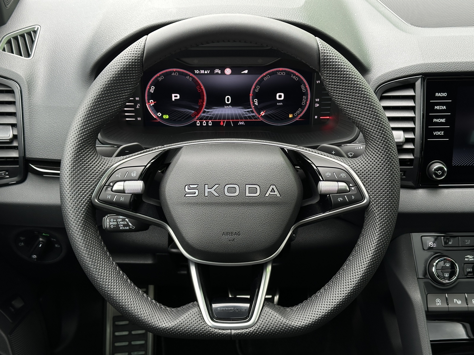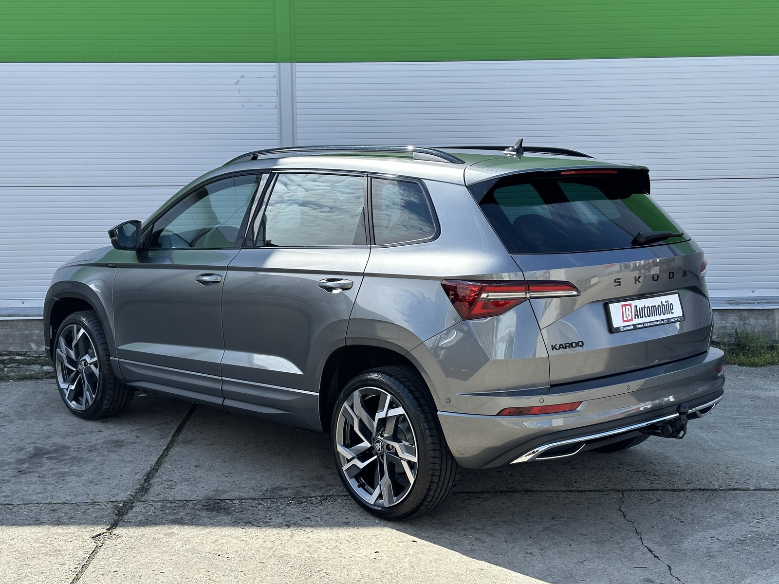 352/10908 Škoda Karoq Sportline 1.5TSi DSG 110kW/150PS, 7st. Automatická převodovka, Tovární záruka Škoda Auto 5let/100.000km, Šedá Graphite metalíza, Výbava vozu: Tažné zařízení sklopné - el. odjistitelné, Kola z lehkých slitin ALU Škoda "SAGITARIUS" 8Jx19" Antracitová/Leštěná, 230V zásuvka a nabíjecí port USB-C pro cestující vzadu, Asistovaná jízda 2.0 - (Prediktivní tempomat - ACC, Rozpoznávání dopravních značek, Adaptivní asistent pro udržování jízdního pruhu – Lane Assist+, Asistent hlídání mrtvého úhlu – Side Assist, Automatické parkování), Panoramatický kamerový systém 360°KAMERA, Parkovací senzory přední a zadní - PDC P/Z, Asistent varování a brzdění při hrozící kolizi s vozidly, chodci a cyklisty - Front Assist, Asistent nouzového zastavení - Emergency Assist, Asistent pro jízdu v zácpě, Asistent rozpoznání únavy řidiče, Asistent rozjezdu do kopce, Systém Start/Stop, Volba jízdního režimu, Bezklíčové odemykání a startování - KESSY, Dvouzónová automatická klimatizace - Climatronic, Vyhřívané čelní sklo, Vyhřívané trysky ostřikovačů, Vyhřívaný multifunkční kožený volant pro DSG s pádly pod volantem - výškově a podélně nastavitelný, Kožená hlavice řadicí páky, Výškově nastavitelná sportovní přední sedadla s bederními opěrkami, Vyhřívaná sedadla vpředu i vzadu, Loketní opěrka s Jumbo Boxem, Zadní loketní opěrka, Potah sedadel - látka, Automaticky zatmavovací vnitřní zpětné zrcátko, Elektrické ovládání oken vpředu i vzadu, Zatmavená zadní okna - Sunset, Vnější zpětná zrcátka elektricky sklopná, nastavitelná a vyhřívaná, Infotainment 8" s navigací, Bezdrátový Smartlink, Bluetooth, Hlasové ovládání - digitální asistentka Laura, Soundsystem CANTON - (10x reproduktor, Digitální ekvalizér), DAB - Digitální příjem rádia, Virtual Cockpit 10", Bezdrátové nabíjení telefonu, 2x USB-C vpředu, USB-C pro vnitřní zpětné zrcátko, Ambientní LED osvětlení interiéru, Matrix-LED hlavní světlomety, Ostřikovače předních světlometů, Top-LED zadní světla s animovanými směrovými světly, Mlhová světla, Senzor světla a deště, Kontrola tlaku v pneumatikách, Centrální zamykání s dálkovým ovládáním, Isofix a Top Tether - 2x vzadu, ABS, ESP, 8x Airbag, Deaktivace airbagu spolujezdce, Nouzové volání SOS - eCall, Dvojitá podlaha zavazadlového prosotru, Virtuální pedál - otevírání víka kufru pohybem nohy pod zavazadlovým prostorem, Sportovní kryty pedálů, Střešní nosič, Dekorativní prahové lišty, Černě lakované doplňky karoserie, Zatížení bržděného tažného zařízení - 1500kg, Zatížení nebržděného tažného zařízení - 700kg, Nový vůz skladem s registrací 15. 08. 2025, Servisní kniha + dokumentace Škoda Auto, Možnost odpočtu DPH 21%, Skladem - ihned k odběru.