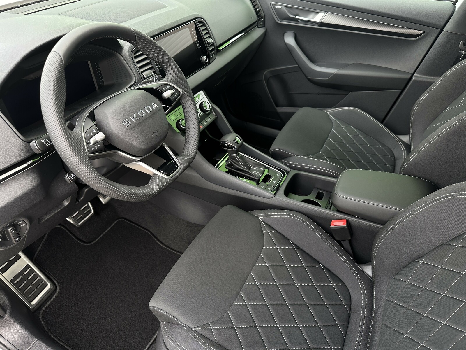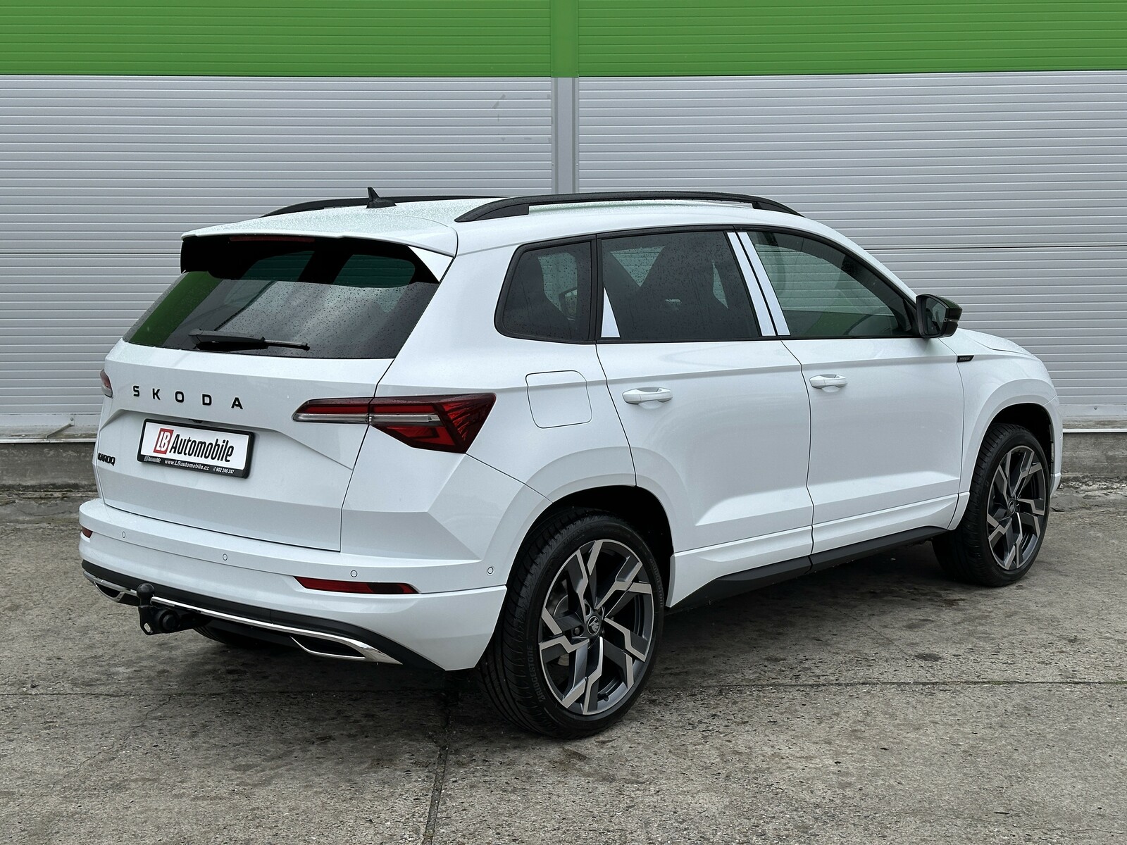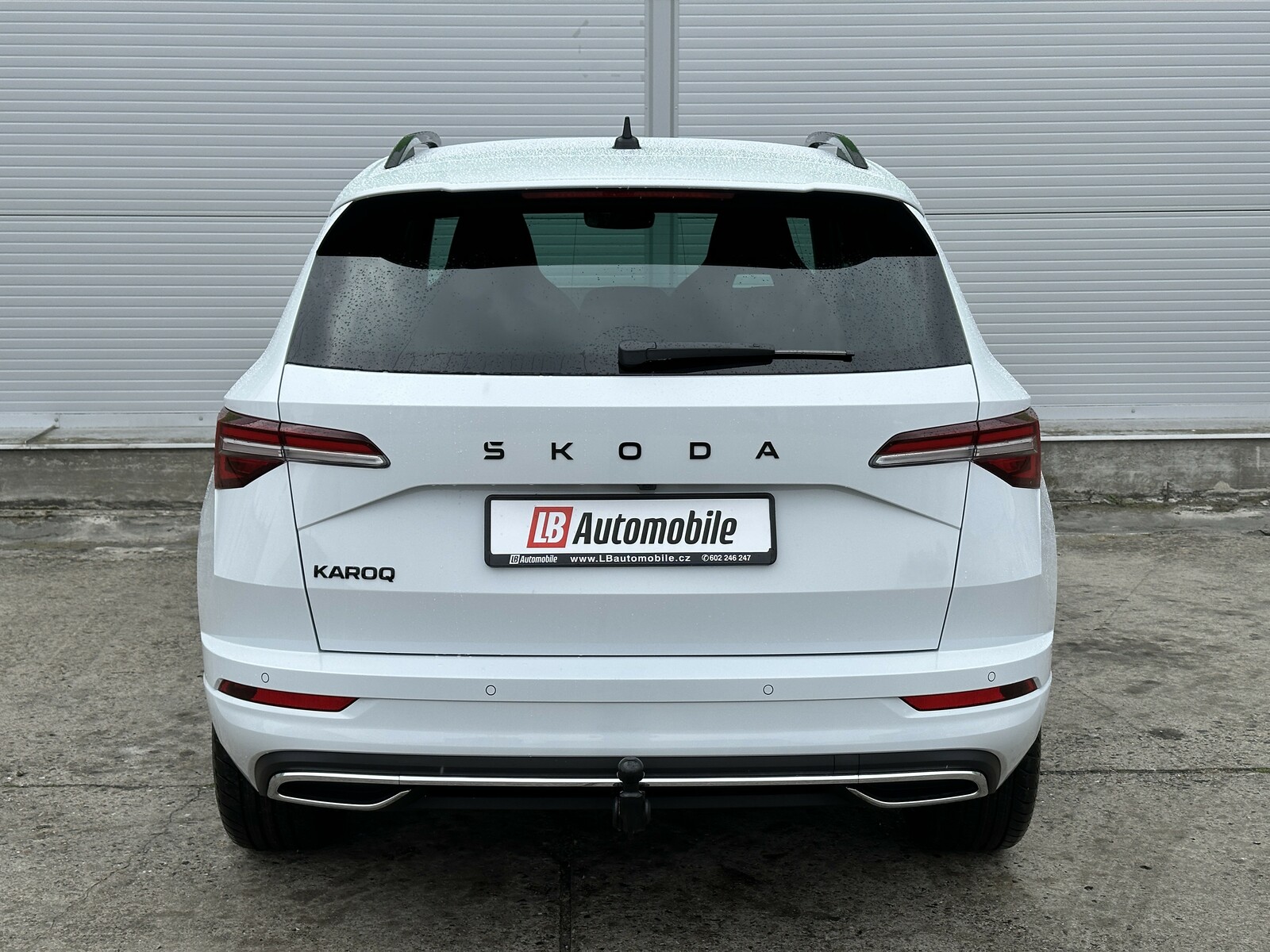 377/10987 Škoda Karoq Sportline 1.5TSi DSG 110kW/150PS, 7st. Automatická převodovka, Tovární záruka Škoda Auto 5let/100.000km, Černá Magic metalíza, Výbava vozu: Tažné zařízení sklopné - el. odjistitelné, Kola z lehkých slitin ALU Škoda "SAGITARIUS" 8Jx19" Antracitová/Leštěná, Asistovaná jízda 2.0 - (Prediktivní tempomat - ACC, Rozpoznávání dopravních značek, Adaptivní asistent pro udržování jízdního pruhu – Lane Assist+, Asistent hlídání mrtvého úhlu – Side Assist, Automatické parkování), Panoramatický kamerový systém 360°KAMERA, Parkovací senzory přední a zadní - PDC P/Z, Asistent varování a brzdění při hrozící kolizi s vozidly, chodci a cyklisty - Front Assist, Asistent nouzového zastavení - Emergency Assist, Asistent pro jízdu v zácpě, Asistent rozpoznání únavy řidiče, Asistent rozjezdu do kopce, Start/Stop systém, Volba jízdního režimu, Bezklíčové odemykání a startování - KESSY, Dvouzónová automatická klimatizace - Climatronic, Vyhřívané čelní sklo, Vyhřívané trysky ostřikovačů, Vyhřívaný multifunkční kožený volant pro DSG s pádly pod volantem - výškově a podélně nastavitelný, Kožená hlavice řadicí páky, Výškově nastavitelná sportovní přední sedadla s bederními opěrkami, Vyhřívaná sedadla vpředu i vzadu, Loketní opěrka s Jumbo Boxem, Zadní loketní opěrka, Potah sedadel - látka, Automaticky zatmavovací vnitřní zpětné zrcátko, Elektrické ovládání oken vpředu i vzadu, Zatmavená zadní okna - Sunset, Vnější zpětná zrcátka elektricky sklopná, nastavitelná a vyhřívaná, Infotainment 8" s Navigací, Bezdrátový Smartlink, Bluetooth, Hlasové ovládání - digitální asistentka Laura, Soundsystem CANTON - (10x reproduktor, Digitální ekvalizér), DAB - Digitální příjem rádia, Virtual Cockpit 10", Bezdrátové nabíjení telefonu, 2x USB-C vpředu, USB-C pro vnitřní zpětné zrcátko, Ambientní LED osvětlení interiéru, Matrix-LED hlavní světlomety, Ostřikovače předních světlometů, Top-LED zadní světla s animovanými směrovými světly, Mlhová světla, Senzor světla a deště, Kontrola tlaku v pneumatikách, Centrální zamykání s dálkovým ovládáním, Isofix a Top Tether - 2x vzadu, ABS, ESP, 8x Airbag, Deaktivace airbagu spolujezdce, Nouzové volání SOS - eCall, Dvojitá podlaha zavazadlového prosotru, Virtuální pedál - otevírání víka kufru pohybem nohy pod zavazadlovým prostorem, Sportovní kryty pedálů, Střešní nosič, Dekorativní prahové lišty, Černě lakované doplňky karoserie, Zatížení bržděného tažného zařízení - 1500kg, Zatížení nebržděného tažného zařízení - 700kg, Nový vůz bez registrace, Servisní kniha + dokumentace Škoda Auto, Možnost odpočtu DPH 21%, Skladem - ihned k odběru.