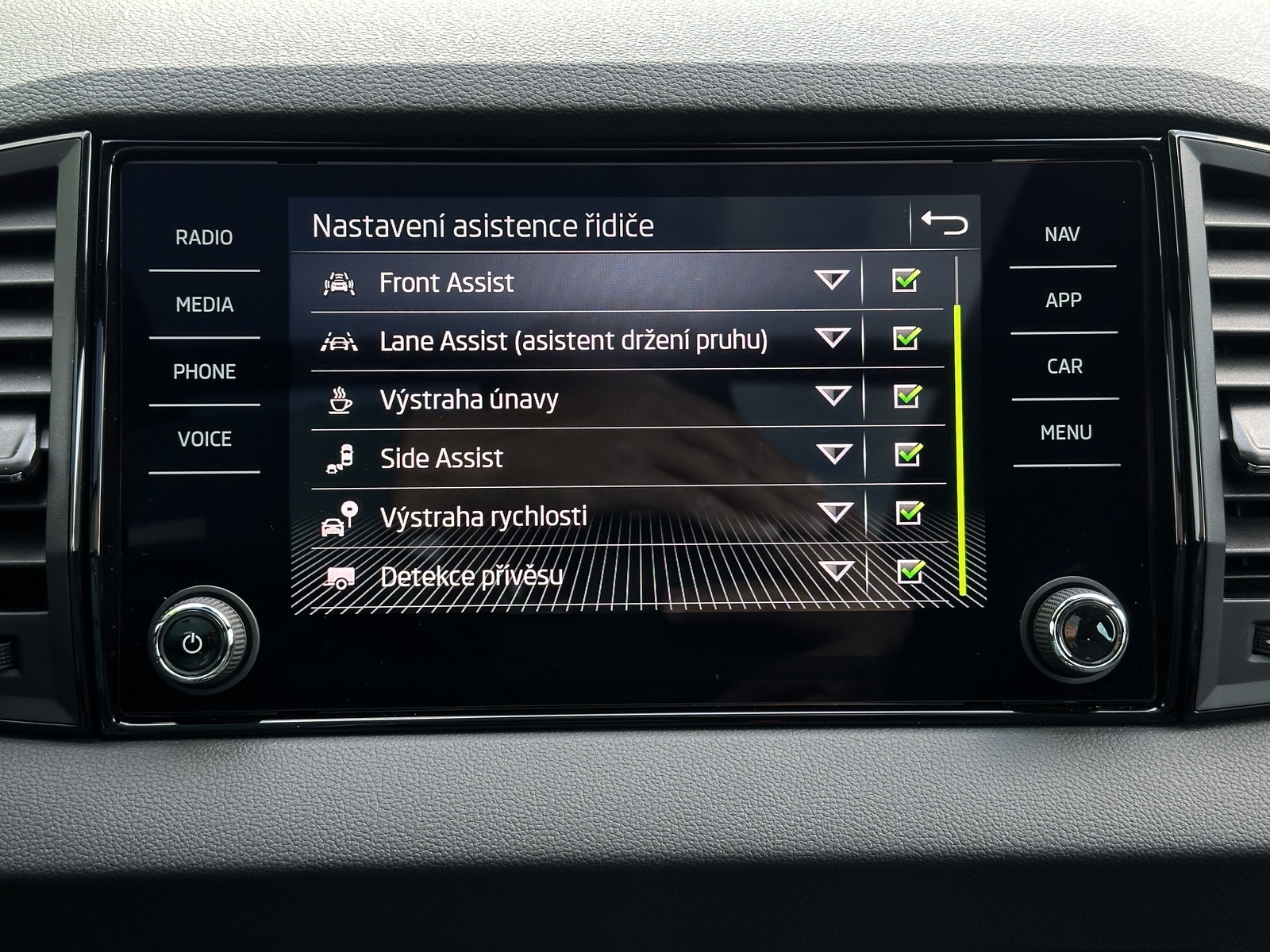 ABS, Adaptivní regulace podvozku, adaptivní tempomat, airbag, Ambientní LED osvětlení interiéru, Android Auto, Apple Car Play, Asistent pro odbočování, Asistent pro vedení vozu v jízdních pruzích, Asistent při jízdě ze svahu, asistent rozjezdu do kopce, Asistent udržování odstupu, Asistent změny jízdního pruhu, automatická klimatizace, automatická převodovka, automatická uzávěrka diferenciálu, automatické svícení, autorádio, Bezdrátová nabíječka mobilních telefonů (Qi), bezklíčkové ovládání, bluetooth, centrální zamykání, dálkové centrální zamykání, deaktivace airbagu spolujezdce, dělená zadní sedadla, Denní svícení, Digitální příjem rádia (DAB), Digitální přístrojová deska, Dotykové ovládání palubního počítače, dvouzónová klimatizace, EDS, Elektrické dovírání zavazadlového prostoru, Elektrické tažné zařízení, Elektrochromatické vnitřní zpětné zrcátko, Elektronická uzávěrka diferenciálu (EDS), el. ovládání oken, el. ovládání zrcátek, el. ovládaný kufr, El. parkovací brzda, el. sklopná zrcátka, el. startér, ESP, Hlasové ovládání palubního počítače, hlídání mrtvého úhlu, imobilizér, isofix, katalyzátor, LED adaptivní světlomety, LED denní svícení, LED matrixové světlomety, LED světlomety plnohodnotné, litá kola, Malý kožený paket, mlhovky, Mobilní připojení, multifunkční volant, nastavitelná sedadla, nastavitelný volant, natáčecí světlomety, navigační systém, nezávislé topení, nouzové brždění, originál autorádio, Originální autorádio, otáčkoměr, Pádla řazení na volantu, palubní počítač, parkovací asistent, parkovací kamera, parkovací senzory, Parkovací senzory přední, Parkovací senzory zadní, podélný posuv sedadel, pohon 4 x 4, posilovač řízení, Prediktivní tempomat, Premiový audiosystém, protiprokluzový systém kol (ASR), Přístrojová deska s barevným displejem, rádio, regulace při jízdě ze svahu, regulace tuhosti podvozku, rezervní kolo, Rozpoznávání dopravních značek, satelitní navigace, senzor stěračů, senzor tlaku v pneumatikách, sledování jízdního pruhu, sledování únavy řidiče, sportovní sedadla, Start/Stop systém, střešní nosič, Systém nouzového zastavení, tažné zařízení, tempomat, tónovaná skla, USB, uzávěrka mezinápravového diferenciálu, venkovní teploměr, vnitřní teploměr, Volba jízdního režimu, vyhřívaná sedadla, Vyhřívaná zadní sedadla, vyhřívaná zrcátka, vyhřívané čelní sklo, vyhřívaný volant, výsuvné opěrky hlav, výškově nastavitelná sedadla, výškově nastavitelné sedadlo řidiče, Zadní loketní opěrka, zadní stěrač, záruka, Zatmavená zadní skla, závěsné zařízení v TP, 360° monitorovací systém (AVM), 8 x airbag
