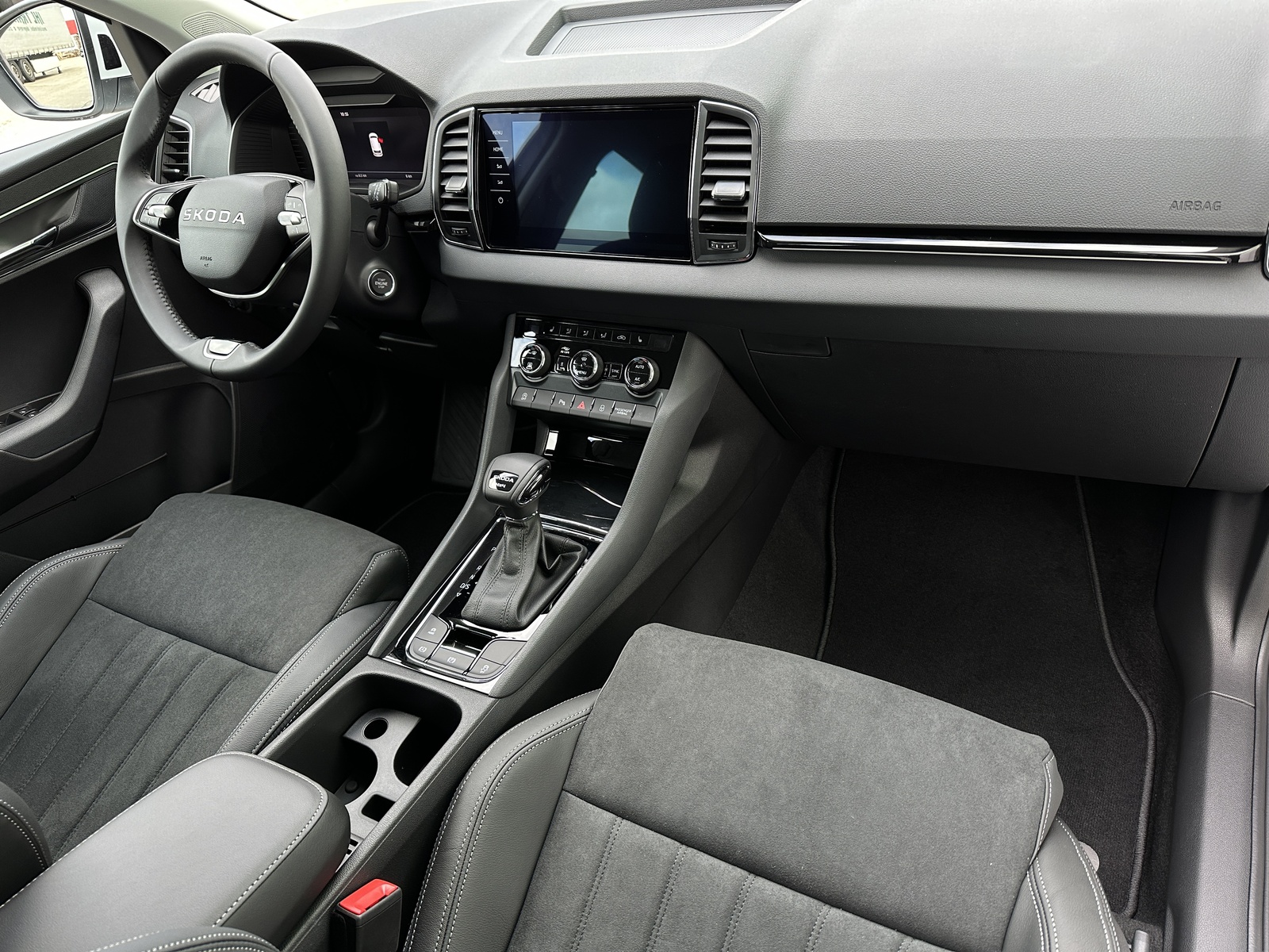 143/11087 Škoda Karoq 2.0TDi DSG 4x4 110kW/150PS, Pohon všech kol 4x4, 7st. Automatická převodovka DSG, Tovární záruka Škoda Auto 5let/100.000km, Výbava vozu: Nezávislé topení s dálkovým ovládáním - Webasto, Tažné zařízení sklopné - el. odjistitelné, Dvojitá podlaha v zavazadlovém prostoru, Kola z lehkých slitin ALU Škoda "SAGITARIUS" 8Jx19, 230V zásuvka a nabíjecí port USB-C pro cestující vzadu, Interiér Lounge – černý, Čalounění sedadel – Suedia/Kůže, Ambientní LED osvětlení, Matrix-LED světlomety, Asistovaná jízda 1.5 PLUS (Prediktivní adaptivní tempomat ACC, Adaptivní asistent pro udržování jízdního pruhu, Asistent mrtvého úhlu – Side Assist), Infotainment s navigací 9", Bluetooth, Webrádio, Digitální asistentka Laura, Bezdrátový SmartLink, Adaptivní tempomat ACC, Parkovací senzory vpředu a vzadu – PDC P/Z, Ostřikovače světlometů, Zadní parkovací KAMERA, KESSY – bezklíčové odemykání a startování, Nabíjecí box pro smartphone, Virtuální pedál, Virtuální kokpit 10", Vyhřívaná přední a zadní sedadla, Vyhřívané čelní sklo, Elektrické otvírání zavazadlového prostoru, Volba jízdního režimu, LED zadní světla s animovanými ukazateli směru jízdy, Front Assist (varování a brzdění při hrozící kolizi s vozidly, chodci a cyklisty), 7x airbag, Asistent pro udržování jízdního pruhu – Lane Assist, Rozpoznávání dopravních značek, Přední mlhovky, Asistent rozjezdu do kopce, Systém rozpoznání únavy řidiče, 2x ISOFIX a Top Tether vzadu, Vnější zpětná zrcátka el. nastavitelná, sklopná, vyhřívaná s automatickým stmíváním na straně řidiče, Zadní loketní opěrka s držákem nápojů, Automatické stmívání vnitřního zpětného zrcátka, Elektronická parkovací brzda, Elektricky ovládaná přední a zadní okna, Sada na opravu pneumatik, Přední loketní opěrka, 12V zásuvka, Dvouzónová klimatizace Climatronic, Výškově nastavitelná sedadla řidiče a spolujezdce s bederní opěrkou, Sunset – zatmavená okna, Nouzový systém SOS eCall+, Vyhřívaný multifunkční kožený volant pro DSG s pádly, Nový vůz, Servisní kniha + kompletní dokumentace Škoda Auto, Možnost odpočtu DPH 21%, Skladem - ihned k odběru.