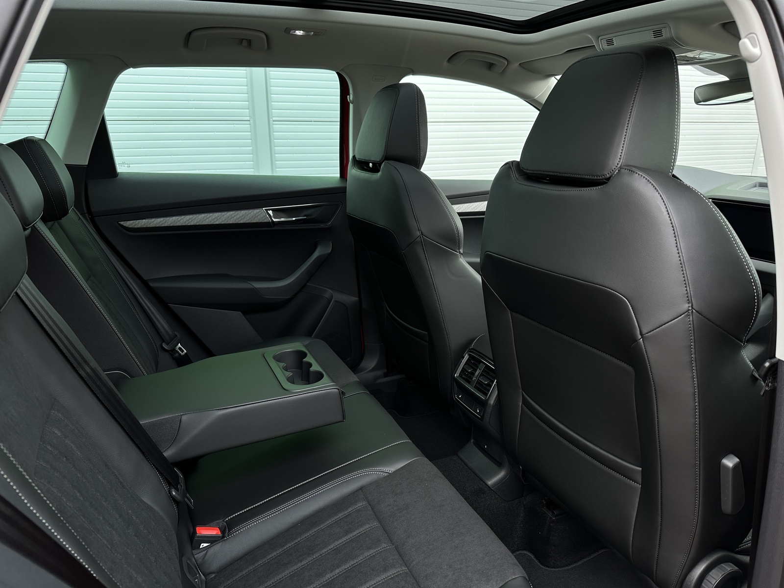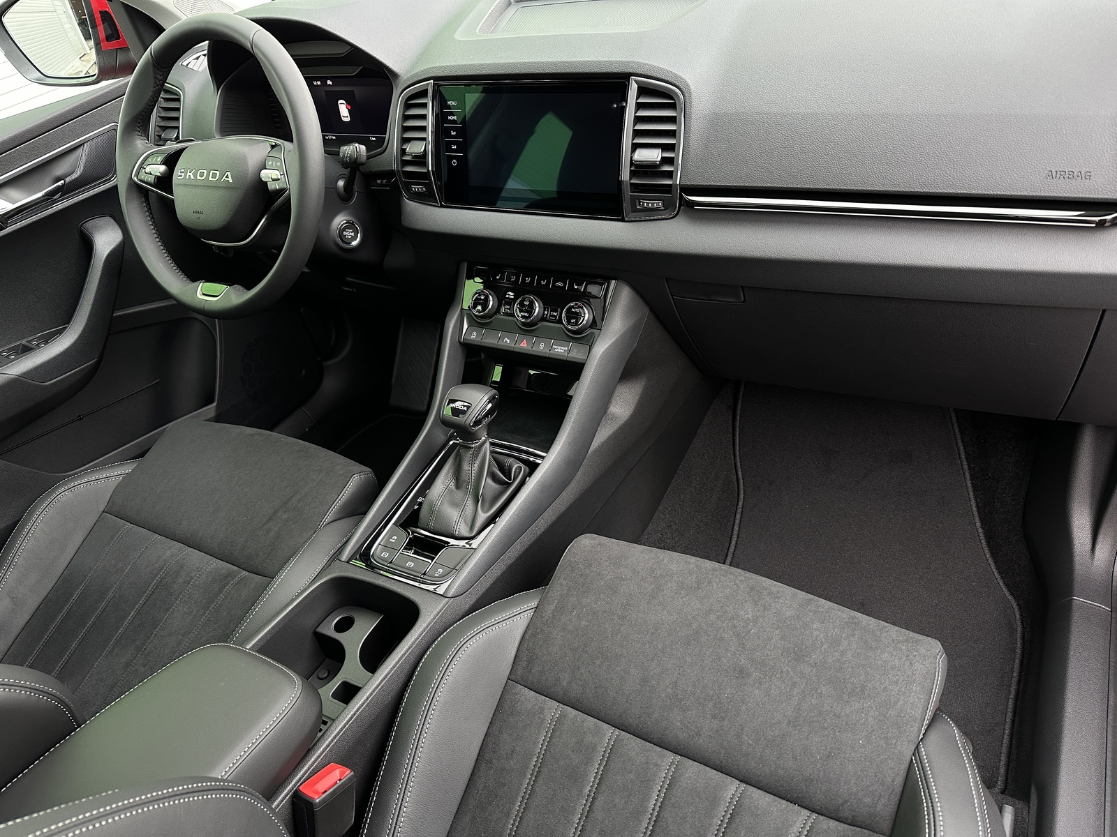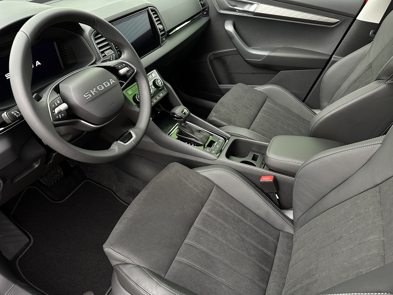 186/11113 Škoda Karoq Premium 1.5TSi DSG 110kW/150PS, 7st. Automatická převodovka, Tovární záruka Škoda Auto 5let/100.000km, Výbava vozu: Tažné zařízení sklopné - el. odjistitelné, Panoramatické střešní okno, Dvojitá podlaha zavazadlového prostoru, 230V zásuvka a nabíjecí port USB-C pro cestující vzadu, Kola z lehkých slitin ALU Škoda "MIRAN" 7Jx18" Černá/Leštěná, Interiér Lounge – černý, Potah sedadel – Suedia/Kůže, Ambientní LED osvětlení, Matrix-LED světlomety, Asistovaná jízda 1.5 PLUS – (Prediktivní adaptivní tempomat ACC, Adaptivní asistent udržování jízdního pruhu - Lane Assist+, Asistent mrtvého úhlu – Side Assist), Infotainment s Navigací 9", Bluetooth, Web rádio, Digitální asistentka Laura, Bezdrátový SmartLink, Adaptivní tempomat ACC, Parkovací senzory vpředu a vzadu – PDC, Ostřikovače světlometů, Parkovací kamera vzadu – KAMERA, KESSY – bezklíčové zamykání a startování, Nabíjecí box pro smartphone, Virtuální pedál, Virtuální Cockpit 10", Vyhřívaná přední a zadní sedadla, Vyhřívané čelní sklo, Volba jízdních režimů, LED zadní světla s animovanými směrovými ukazateli, Front Assist – s upozorněním a zabrzděním při hrozící kolizi s vozidly, chodci a cyklisty, 7x airbag, Asistent udržování jízdního pruhu – Lane Assist, Rozpoznávání dopravních značek, Přední mlhové světlomety, Asistent rozjezdu do kopce, Systém sledování únavy řidiče, 2x ISOFIX a Top Tether vzadu, Vnější zpětná zrcátka el. nastavitelná, sklopná, vyhřívaná s automatickým stmíváním na straně řidiče, Loketní opěrka vzadu s držákem nápojů, Automaticky stmívatelné vnitřní zpětné zrcátko, Elektronická parkovací brzda, Elektrické ovládání oken vpředu a vzadu, Sada na opravu pneumatik, Loketní opěrka vpředu, Škrabka na led ve víčku palivové nádrže, 12V zásuvka, Příprava pro tažné zařízení, Deštník pod sedadlem spolujezdce, Dvouzónová automatická klimatizace Climatronic, Výškově nastavitelná sedadla řidiče a spolujezdce s bederní opěrkou, Sunset, Nouzový systém volání SOS eCall+, Vyhřívaný multifunkční kožený volant pro DSG s pádly pro řazení pod volantem, Nový vůz ČR, Servisní kniha + kompletní dokumentace Škoda Auto, Možnost odpočtu DPH 21%, Skladem - ihned k odběru.
