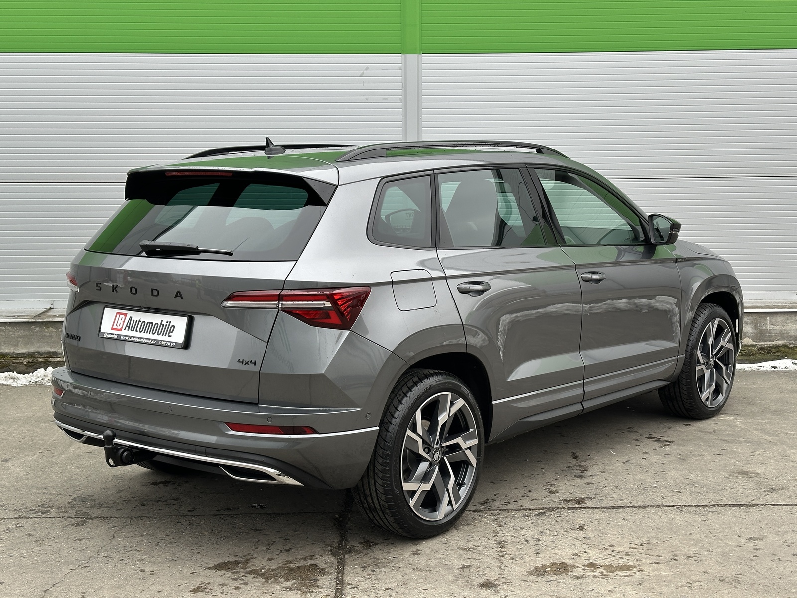 384/11179 Škoda Karoq Sportline 2.0TDi DSG 4x4 110kW/150PS, Pohon všech kol 4x4, 7st. Automatická převodovka DSG, Tovární záruka Škoda Auto 5let/100.000km, Výbava vozu: Nezávislé topení s dálkovým ovládáním - Webasto, Tažné zařízení sklopné - el. odjistitelné, Panoramatické střešní okno, Kola z lehkých slitin ALU Škoda "SAGITARIUS" 8Jx19" Antracitová/Leštěná, 230V zásuvka a USB-C nabíjecí port pro cestující vzadu, Paket Asistovaná jízda 2.0 - (Prediktivní tempomat - ACC, Rozpoznávání dopravních značek, Adaptivní asistent pro udržování v jízdním pruhu - Lane Assist+, Asistent sledování mrtvého úhlu - Side Assist, Automatické parkování), Panoramatický kamerový systém 360°, Parkovací senzory vpředu a vzadu - PDC P/Z, Asistent varování a brzdění při hrozící kolizi s vozidly, chodci a cyklisty - Front Assist, Asistent rozpoznání únavy řidiče, Asistent rozjezdu do kopce, Systém Start/Stop, Volba jízdního režimu, Bezklíčové odemykání a startování - KESSY, Vyhřívaný multifunkční kožený volant pro DSG s pádly pod volantem - výškově a podélně nastavitelný, Kožená hlavice řadicí páky, Elektronická parkovací brzda, Sportovní přední sedadla, Bederní opěrky na předních sedadlech, Výškově nastavitelné sedadlo řidiče a spolujezdce, Dvouzónová automatická klimatizace - Climatronic, Vyhřívaná přední i zadní sedadla s oddělenou regulací, Loketní opěrka s Jumbo Boxem, Zadní loketní opěrka, Potah sedadel – látka, Vyhřívané čelní sklo, Vnitřní zpětné zrcátko s automatickým stmíváním, Elektrické ovládání oken vpředu i vzadu, Zatmavená zadní okna - Sunset, Vnější zpětná zrcátka elektricky sklopná, nastavitelná a vyhřívaná, Virtuální Cockpit, Infotainment Amundsen 8" s navigací, Hlasové ovládání a digitální asistentka Laura, Bezdrátový Smartlink, Bluetooth, DAB, Soundsystém CANTON, 10x Reproduktor, Digitální ekvalizér, Bezdrátové nabíjení telefonu, 2x USB-C vpředu, Ambientní LED osvětlení interiéru, Matrix-LED světlomety s neoslňujícím dálkovým světlem, Ostřikovače světlometů, Mlhové světlomety, Top-LED zadní světla s animovanými ukazateli směru jízdy, Senzor světla a deště, Kontrola tlaku v pneumatikách, Virtuální pedál - Otevírání víka kufru pohybem nohy pod zavazadlovým prostorem, Dekorativní lišty prahů, Černě lakované doplňky karoserie, ABS, ESP, 8x Airbag, Deaktivace airbagu spolujezdce, Centrální zamykání s dálkovým ovládáním, Nouzové volání SOS - eCall, Ocelové rezervní kolo, Střešní nosič, Zatížení nebržděného tažného zařízení - 750kg, Zatížení bržděného tažného zařízení - 2100kg, Nový vůz s registrací, Servisní kniha + dokumentace Škoda Auto, Možnost odpočtu DPH 21%, Termín odběru a předání od 15.04.2026.