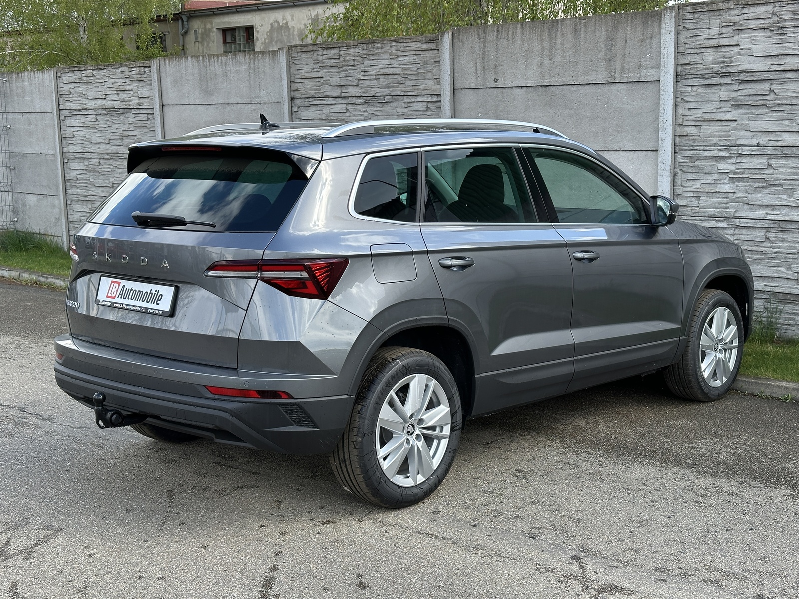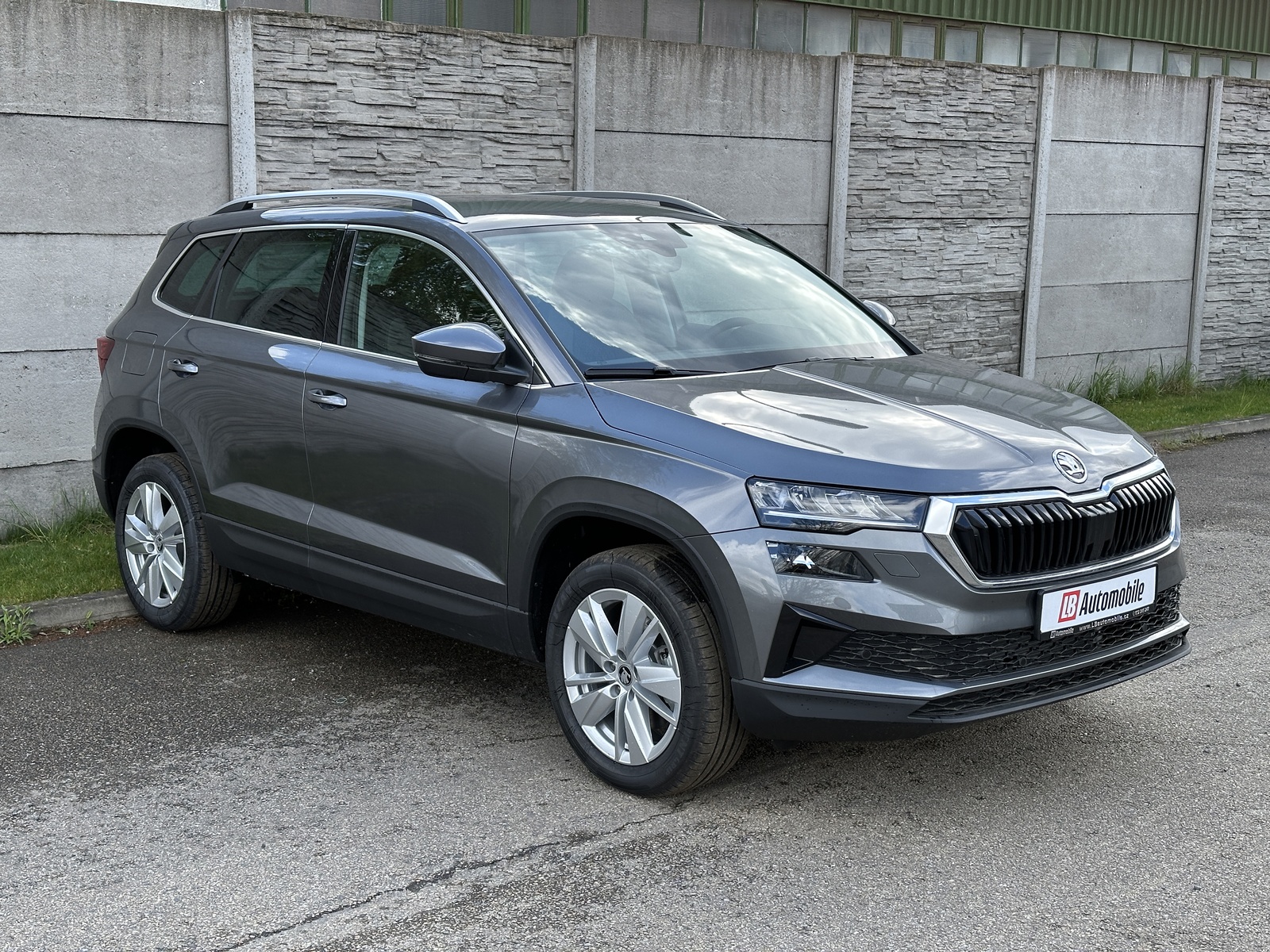 78/11274 Škoda Karoq Top & Selection 1.5TSi DSG 110 kW/150 PS, 7st. Automatická převodovka DSG, Tovární záruka Škoda Auto 5let/100.000km, Výbava vozu: Infotainment NAVI 8", Zásuvka 230 V a USB-C nabíjecí port pro cestující vzadu, Dvojitá podlaha v zavazadlovém prostoru, Tažné zařízení sklopné - Elektricky odjistitelné, Parkovací kamera vzadu, Parkovací senzory vpředu a vzadu - PDC P/Z, Asistent udržování v jízdním pruhu - Lane Assist, Asistent varování a brzdění při hrozící kolizi s vozidly, chodci a cyklisty - Front Assist, Asistent rozpoznání únavy řidiče, Asistent rozjezdu do kopce, Rozpoznávání dopravních značek, Volba jízdního režimu, Systém Start/Stop, Adaptivní tempomat - ACC, Vyhřívaný multifunkční kožený volant pro DSG s pádly pod volantem - Výškově a podélně nastavitelný, Bezklíčové zamykání a startování - KESSY, Hlavice řadicí páky z kůže, Elektronická parkovací brzda, Bederní opěrky na předních sedadlech, Výškově nastavitelné sedadlo řidiče a spolujezdce, Dvouzónová automatická klimatizace - Climatronic, Vyhřívaná přední a zadní sedadla s oddělenou regulací, Přední loketní opěrka s Jumbo Boxem, Zadní loketní opěrka, Potah sedadel - Látka, Vyhřívané čelní sklo, Vnitřní zpětné zrcátko s automatickým stmíváním, Elektrické ovládání oken vpředu i vzadu, Zatmavená zadní okna - Sunset, Vnější zpětná zrcátka elektricky nastavitelná, sklopná a vyhřívaná, Virtuální Cockpit 10", Bezdrátový SmartLink, Bluetooth, Webové rádio, Hlasové ovládání - Digitální asistentka Laura, Bezdrátové nabíjení telefonu, LED přední světlomety, Přední mlhové světlomety, Top-LED zadní světlomety s animovanými ukazateli směru jízdy, Ostřikovače světlometů, Světelný senzor, Dešťový senzor, Virtuální pedál - Otevírání víka kufru pohybem nohy pod zavazadlovým prostorem, Sada na opravu pneumatik, Kola z lehkých slitin ALU Škoda "SCUTUS" 7Jx17", ABS, ESP, 8x Airbag, Deaktivace airbagu spolujezdce, 2x Isofix a Top Tether vzadu, Centrální zamykání s dálkovým ovládáním, Nouzové volání SOS - eCall, Střešní nosiče - Stříbrné, Zatížení bržděného tažného zařízení - 1.500 kg, Zatížení nebržděného tažného zařízení - 700 kg, Nový vůz ČR s registrací 24. 10. 2025, Servisní kniha + dokumentace Škoda Auto, Možnost odpočtu DPH 21%, Termín odběru a předání od 25. 04. 2026.