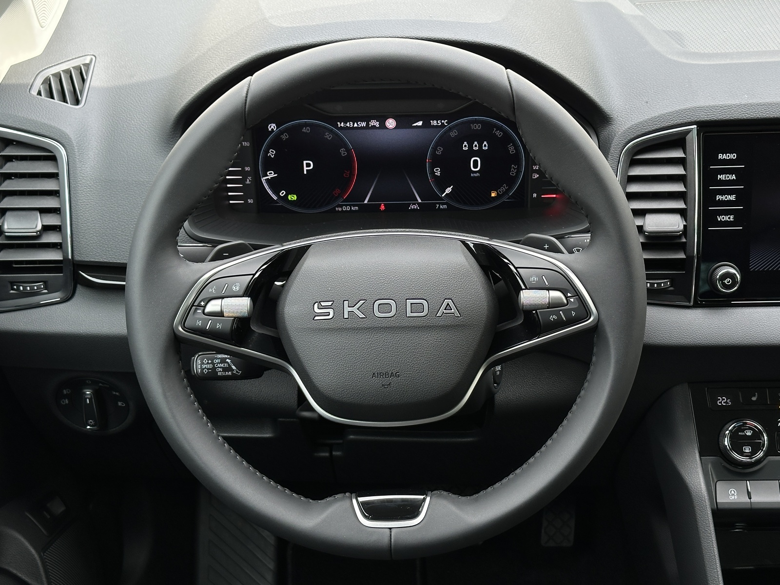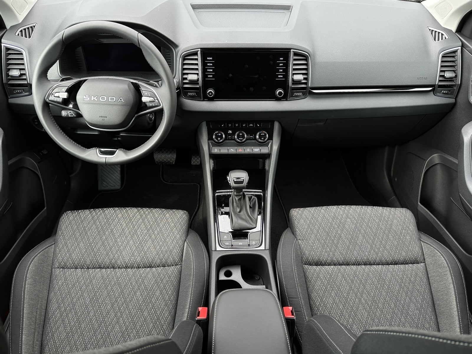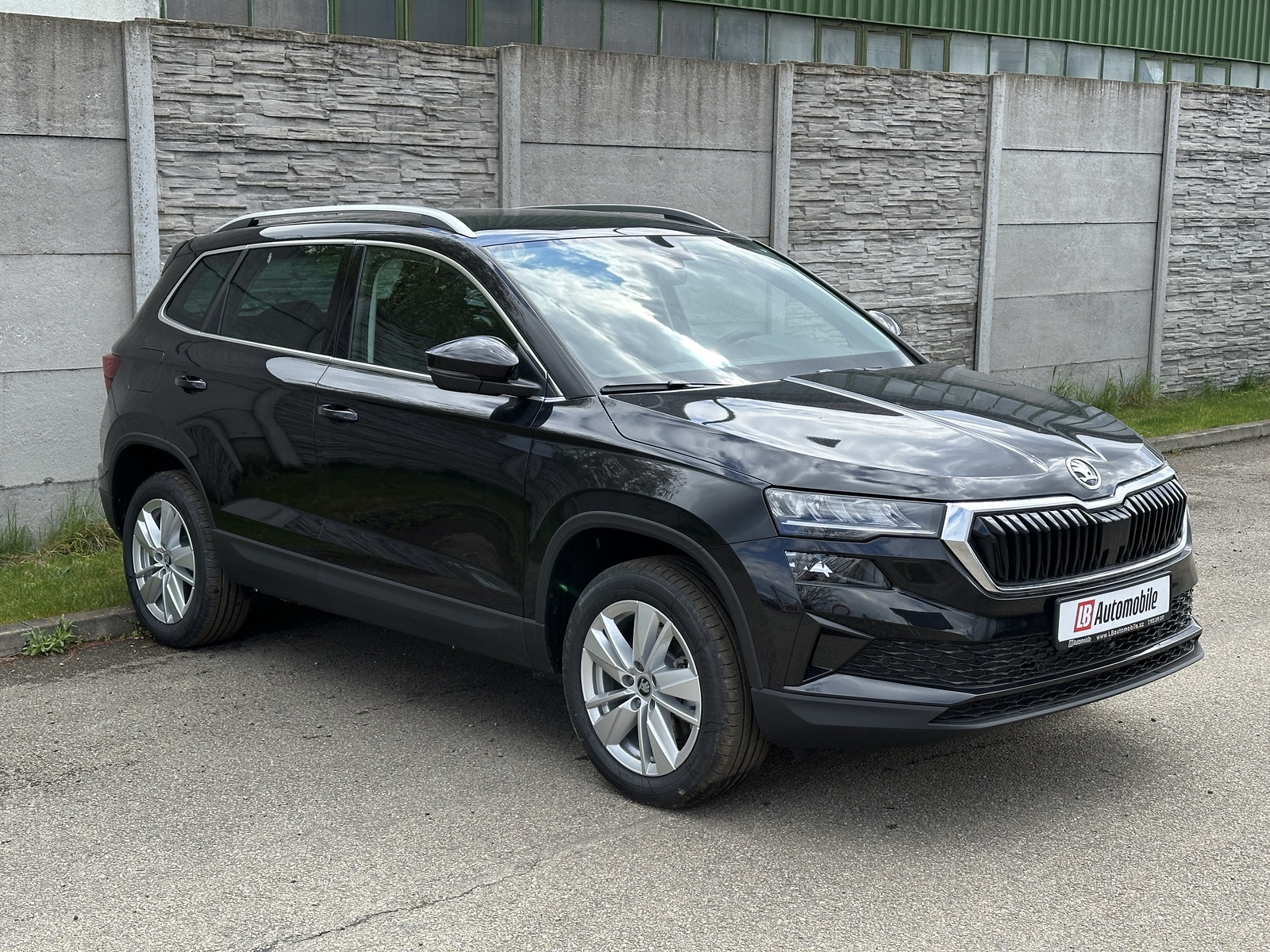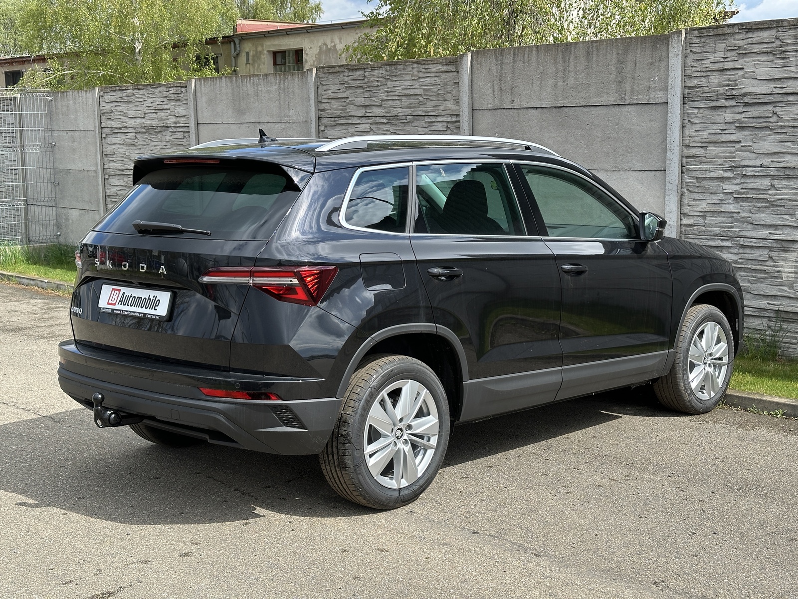 266/11277 Škoda Karoq Top & Selection 1.5TSi DSG 110 kW/150 PS, 7st. Automatická převodovka DSG, Tovární záruka Škoda Auto 5let/100.000km, Výbava vozu: Infotainment NAVI 8", Zásuvka 230 V a USB-C nabíjecí port pro cestující vzadu, Dvojitá podlaha v zavazadlovém prostoru, Tažné zařízení sklopné - Elektricky odjistitelné, Parkovací kamera vzadu, Parkovací senzory vpředu a vzadu - PDC P/Z, Asistent udržování v jízdním pruhu - Lane Assist, Asistent varování a brzdění při hrozící kolizi s vozidly, chodci a cyklisty - Front Assist, Asistent rozpoznání únavy řidiče, Asistent rozjezdu do kopce, Rozpoznávání dopravních značek, Volba jízdního režimu, Systém Start/Stop, Adaptivní tempomat - ACC, Vyhřívaný multifunkční kožený volant pro DSG s pádly pod volantem - Výškově a podélně nastavitelný, Bezklíčové zamykání a startování - KESSY, Hlavice řadicí páky z kůže, Elektronická parkovací brzda, Bederní opěrky na předních sedadlech, Výškově nastavitelné sedadlo řidiče a spolujezdce, Dvouzónová automatická klimatizace - Climatronic, Vyhřívaná přední a zadní sedadla s oddělenou regulací, Přední loketní opěrka s Jumbo Boxem, Zadní loketní opěrka, Potah sedadel - Látka, Vyhřívané čelní sklo, Vnitřní zpětné zrcátko s automatickým stmíváním, Elektrické ovládání oken vpředu i vzadu, Zatmavená zadní okna - Sunset, Vnější zpětná zrcátka elektricky nastavitelná, sklopná a vyhřívaná, Virtuální Cockpit 10", Bezdrátový SmartLink, Bluetooth, Webové rádio, Hlasové ovládání - Digitální asistentka Laura, Bezdrátové nabíjení telefonu, LED přední světlomety, Přední mlhové světlomety, Top-LED zadní světlomety s animovanými ukazateli směru jízdy, Ostřikovače světlometů, Světelný senzor, Dešťový senzor, Virtuální pedál - Otevírání víka kufru pohybem nohy pod zavazadlovým prostorem, Sada na opravu pneumatik, Kola z lehkých slitin ALU Škoda "SCUTUS" 7Jx17", ABS, ESP, 8x Airbag, Deaktivace airbagu spolujezdce, 2x Isofix a Top Tether vzadu, Centrální zamykání s dálkovým ovládáním, Nouzové volání SOS - eCall, Střešní nosiče - Stříbrné, Zatížení bržděného tažného zařízení - 1.500 kg, Zatížení nebržděného tažného zařízení - 700 kg, Nový vůz ČR s registrací 24. 10. 2025, Servisní kniha + dokumentace Škoda Auto, Možnost odpočtu DPH 21%, Termín odběru a předání od 25. 04. 2026.