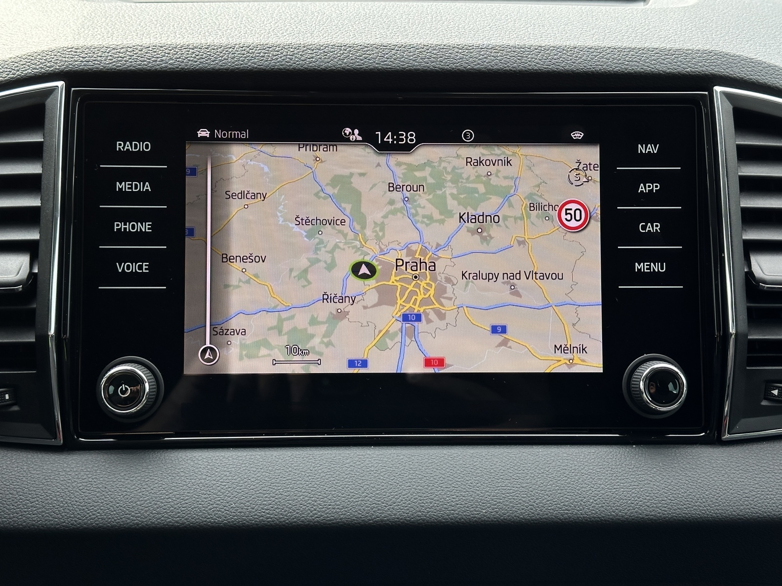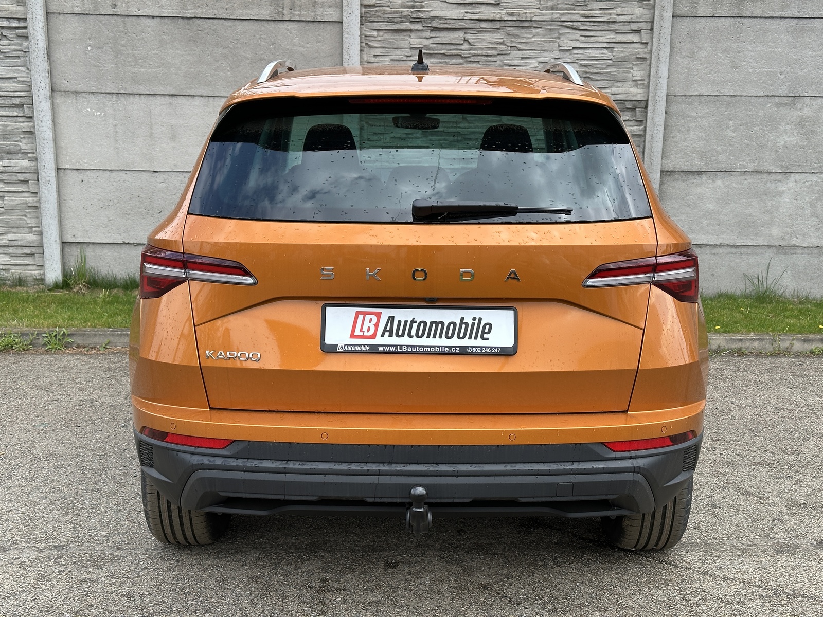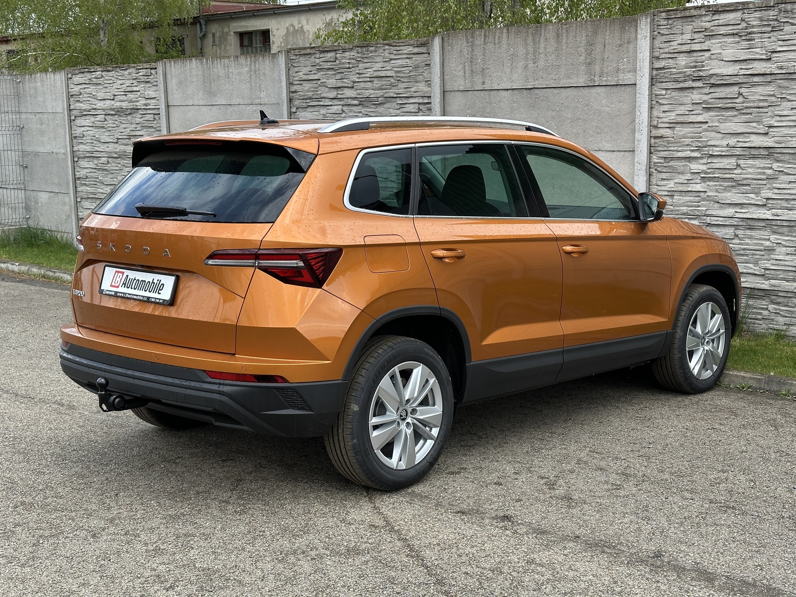410/11283 Škoda Karoq Top & Selection 1.5TSi DSG 110 kW/150 PS, 7st. Automatická převodovka DSG, Tovární záruka Škoda Auto 5let/100.000km, Výbava vozu: Infotainment NAVI 8", Zásuvka 230 V a USB-C nabíjecí port pro cestující vzadu, Dvojitá podlaha v zavazadlovém prostoru, Tažné zařízení sklopné - Elektricky odjistitelné, Parkovací kamera vzadu, Parkovací senzory vpředu a vzadu - PDC P/Z, Asistent udržování v jízdním pruhu - Lane Assist, Asistent varování a brzdění při hrozící kolizi s vozidly, chodci a cyklisty - Front Assist, Asistent rozpoznání únavy řidiče, Asistent rozjezdu do kopce, Rozpoznávání dopravních značek, Volba jízdního režimu, Systém Start/Stop, Adaptivní tempomat - ACC, Vyhřívaný multifunkční kožený volant pro DSG s pádly pod volantem - Výškově a podélně nastavitelný, Bezklíčové zamykání a startování - KESSY, Hlavice řadicí páky z kůže, Elektronická parkovací brzda, Bederní opěrky na předních sedadlech, Výškově nastavitelné sedadlo řidiče a spolujezdce, Dvouzónová automatická klimatizace - Climatronic, Vyhřívaná přední a zadní sedadla s oddělenou regulací, Přední loketní opěrka s Jumbo Boxem, Zadní loketní opěrka, Potah sedadel - Látka, Vyhřívané čelní sklo, Vnitřní zpětné zrcátko s automatickým stmíváním, Elektrické ovládání oken vpředu i vzadu, Zatmavená zadní okna - Sunset, Vnější zpětná zrcátka elektricky nastavitelná, sklopná a vyhřívaná, Virtuální Cockpit 10", Bezdrátový SmartLink, Bluetooth, Webové rádio, Hlasové ovládání - Digitální asistentka Laura, Bezdrátové nabíjení telefonu, LED přední světlomety, Přední mlhové světlomety, Top-LED zadní světlomety s animovanými ukazateli směru jízdy, Ostřikovače světlometů, Světelný senzor, Dešťový senzor, Virtuální pedál - Otevírání víka kufru pohybem nohy pod zavazadlovým prostorem, Sada na opravu pneumatik, Kola z lehkých slitin ALU Škoda "SCUTUS" 7Jx17", ABS, ESP, 8x Airbag, Deaktivace airbagu spolujezdce, 2x Isofix a Top Tether vzadu, Centrální zamykání s dálkovým ovládáním, Nouzové volání SOS - eCall, Střešní nosiče - Stříbrné, Zatížení bržděného tažného zařízení - 1.500 kg, Zatížení nebržděného tažného zařízení - 700 kg, Nový vůz ČR s registrací 24. 10. 2025, Servisní kniha + dokumentace Škoda Auto, Možnost odpočtu DPH 21%, Termín odběru a předání od 14. 05. 2026.