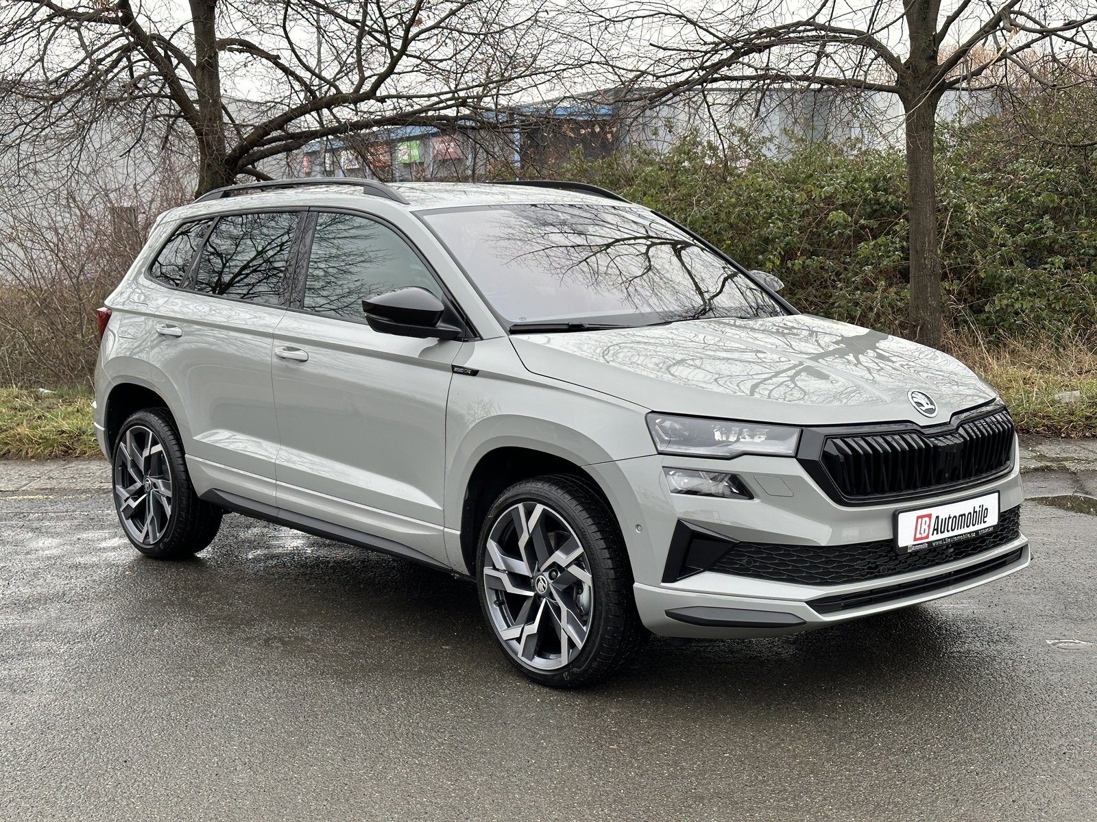 323/11295 Škoda Karoq Sportline 1.5TSi DSG 110kW/150PS, 7st. Automatická převodovka, Tovární záruka Škoda Auto 5let/100.000km, Výbava vozu: Tažné zařízení sklopné - el. odjistitelné, Kola z lehkých slitin ALU Škoda "SAGITARIUS" 8Jx19" Antracitová/Leštěná, 230V zásuvka a nabíjecí port USB-C pro cestující vzadu, Asistovaná jízda 2.0 - (Prediktivní tempomat - ACC, Rozpoznávání dopravních značek, Adaptivní asistent pro udržování jízdního pruhu – Lane Assist+, Asistent hlídání mrtvého úhlu – Side Assist, Automatické parkování), Panoramatický kamerový systém 360°KAMERA, Parkovací senzory přední a zadní - PDC P/Z, Asistent varování a brzdění při hrozící kolizi s vozidly, chodci a cyklisty - Front Assist, Asistent nouzového zastavení - Emergency Assist, Asistent pro jízdu v zácpě, Asistent rozpoznání únavy řidiče, Asistent rozjezdu do kopce, Systém Start/Stop, Volba jízdního režimu, Bezklíčové odemykání a startování - KESSY, Dvouzónová automatická klimatizace - Climatronic, Vyhřívané čelní sklo, Vyhřívané trysky ostřikovačů, Vyhřívaný multifunkční kožený volant pro DSG s pádly pod volantem - výškově a podélně nastavitelný, Kožená hlavice řadicí páky, Výškově nastavitelná sportovní přední sedadla s bederními opěrkami, Vyhřívaná sedadla vpředu i vzadu, Loketní opěrka s Jumbo Boxem, Zadní loketní opěrka, Potah sedadel - látka, Automaticky zatmavovací vnitřní zpětné zrcátko, Elektrické ovládání oken vpředu i vzadu, Zatmavená zadní okna - Sunset, Vnější zpětná zrcátka elektricky sklopná, nastavitelná a vyhřívaná, Infotainment 8" s navigací, Bezdrátový Smartlink, Bluetooth, Hlasové ovládání - digitální asistentka Laura, Soundsystem CANTON - (10x reproduktor, Digitální ekvalizér), DAB - Digitální příjem rádia, Virtual Cockpit 10", Bezdrátové nabíjení telefonu, 2x USB-C vpředu, USB-C pro vnitřní zpětné zrcátko, Ambientní LED osvětlení interiéru, Matrix-LED hlavní světlomety, Ostřikovače předních světlometů, Top-LED zadní světla s animovanými směrovými světly, Mlhová světla, Senzor světla a deště, Kontrola tlaku v pneumatikách, Centrální zamykání s dálkovým ovládáním, Isofix a Top Tether - 2x vzadu, ABS, ESP, 8x Airbag, Deaktivace airbagu spolujezdce, Nouzové volání SOS - eCall, Dvojitá podlaha zavazadlového prosotru, Virtuální pedál - otevírání víka kufru pohybem nohy pod zavazadlovým prostorem, Sportovní kryty pedálů, Střešní nosič, Dekorativní prahové lišty, Černě lakované doplňky karoserie, Zatížení bržděného tažného zařízení - 1500kg, Zatížení nebržděného tažného zařízení - 700kg, Servisní kniha + dokumentace Škoda Auto, Možnost odpočtu DPH 21%, Skladem - ihned k odběru.