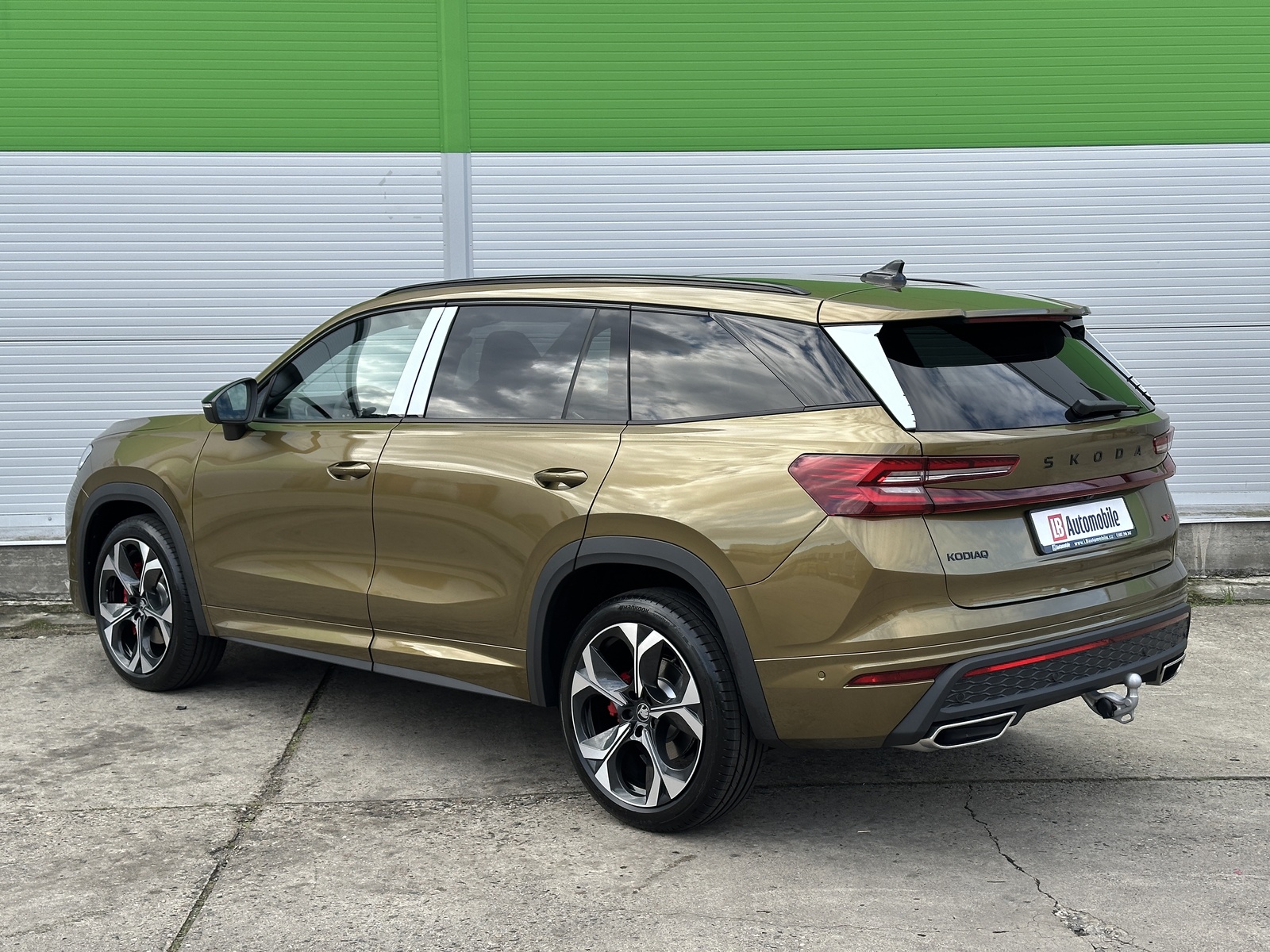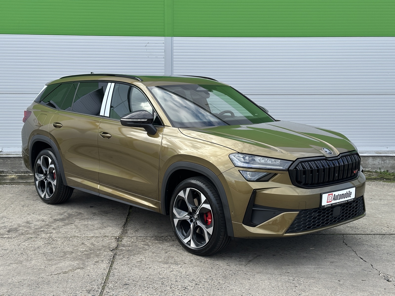 30/10695 Škoda Kodiaq RS 4x4 DSG 2.0TSi 195kW/265PS, 7st. Automatická převodovka DSG, Pohon všech kol 4x4, Tovární záruka Škoda Auto 5let/100.000km, Výbava vozu: Panoramatické střešní okno, Nezávislé topení - Webasto, Interiér RS Suite - Kožená sedadla s odvětráváním vpředu, Tažné zařízení sklopné - el.odjistitelné s Trailer Assist, 3.řada sedadel, Kola z lehkých slitin ALU Škoda "ELIAS" 8Jx20" černá/leštěná, Sportovní nárazníky RS, Adaptivní podvozek DCC+, Progresivní řízení, Volba jízdního režimu, Elektricky nastavitelná přední sedadla s pamětí, Offroad režim, Vyhřívané čelní sklo, Asistovaná jízda 2.5 PLUS - (Prediktivní tempomat, Adaptivní vedení v jízdním pruhu - Lane Assist+, Asistent jízdy v koloně, Nouzový asistent, Automatické parkování, Uložený parkovací manévr, Panoramatický kamerový systém, Proaktivní ochrana cestujících), Osvětlená maska chladiče s logem RS, Head-Up displej, Soundsystem CANTON - 14 reproduktorů včetně subwooferu, Virtuální pedál, Ocelové rezervní kolo, Vyhřívaná zadní sedadla, Vyhřívaný multifunkční sportovní kožený volant, Akustická boční okna vpředu, Infotainment Navi 13" - Webrádio, Čistič obrazovky, KESSY s alarmem - bezklíčové zamykání a startování, Elektrické otevírání zavazadlového prostoru, Matrix-LED přední světlomety, LED zadní světla s animovanými směrovkami, Ambientní osvětlení, Vyhřívaná přední sedadla, Třízónová klimatizace Climatronic, Tónovaná skla a Sunset, Multifunkční panel s otočnými ovladači Smart Dials, Rozpoznávání dopravních značek s ISA kontrolou rychlosti, Front Assist - s varováním a brzděním při hrozící kolizi s vozidly, chodci a cyklisty, Asistence při průjezdu křižovatkou, Asistent mrtvého úhlu - Side Assist, Antikolizní asistent, Kontrola tlaku v pneumatikách, Asistent rozjezdu do kopce, Parkovací senzory vpředu a vzadu - PDC, Upozornění na únavu a pozornost řidiče, 7x airbag, 2x i-Size a 2x Top Tether vzadu a 1x i-Size vpředu pro spolujezdce, Bezdrátové nabíjení pro dva telefony, Nouzové volání SOS eCall, Virtuální Cockpit 10", Senzor světla a deště, Vnější zpětná zrcátka - elektricky nastavitelná, sklopná, vyhřívaná a automaticky zatmavovací na straně řidiče, Elektronická parkovací brzda s funkcí Auto Hold, Elektrické ovládání oken vpředu a vzadu, Středová konzola s držáky nápojů, 12V zásuvka vpředu, 5x USB-C - 2x vpředu, 2x vzadu, 1x u vnitřního zpětného zrcátka, Deštník ve dveřích řidiče, Zadní loketní opěrka, Sada na opravu pneumatik, Nový vůz s registrací, Servisní kniha + dokumentace Škoda Auto, Možnost odpočtu DPH 21%, Skladem - ihned k odběru.