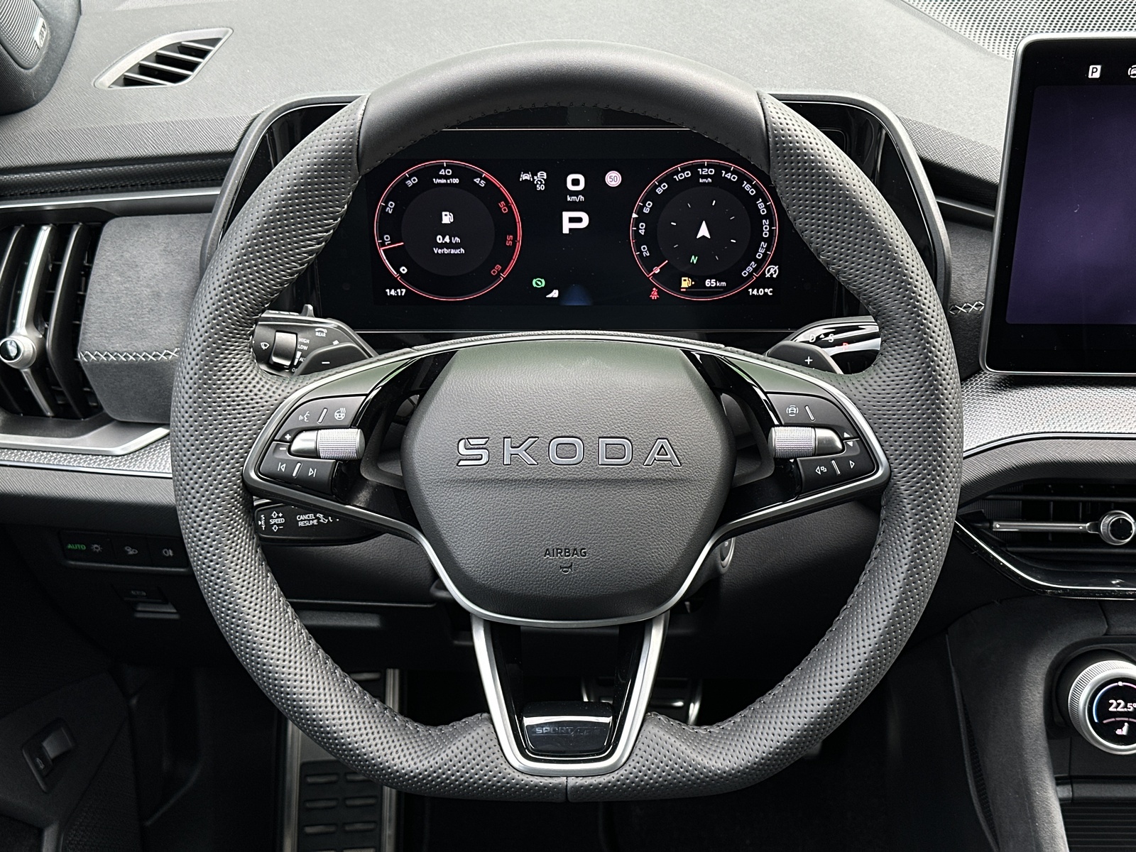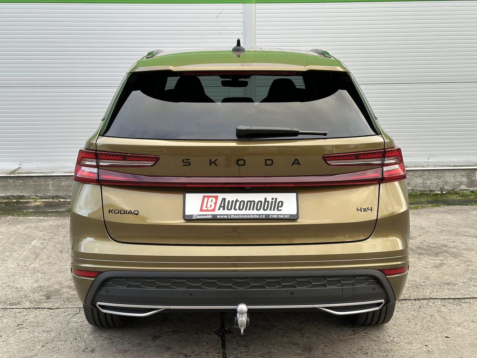 249/10785 Škoda Kodiaq Sportline 2.0TDi 4x4 DSG 142kW/193PS, 7st. Automatická převodovka DSG, Pohon všech kol 4x4, 7 MÍST, Tovární záruka Škoda Auto 5let/100.000km, Výbava vozu: Paket Drive PLUS - (Adaptivní podvozek - DCC+, Progresivní řízení, Volba jízdního režimu), Paket Comfort PLUS - (Bezklíčové zamykání a startování - KESSY, Alarm, Elektrické otevírání víka zavazadlového prostoru, Elektricky nastavitelné sedadlo řidiče, Virtual Pedal - otevírání víka kufru pohybem nohy pod zavazadlovým prostorem, Elektricky nastavitelná přední sedadla, Dvojitá podlaha v zavazadlovém prostoru, Soundsystém CANTON, Ocelové rezervní kolo), Vyhřívané čelní sklo, Nezávislé topení s dálkovým ovládáním - Webasto, Kola z lehkých slitin ALU Škoda "RILA AERO" 8Jx20" Antracitová/Leštěná, Tažné zařízení sklopné - el. odjistitelné, Třetí řada sedadel - 7 MIST k sezení, Paket Asistovaná jízda 1.5 PLUS - (Prediktivní tempomat - ACC, Adaptivní asistent vedení v jízdním pruhu - Lane Assist), Matrix-LED přední světlomety, LED zadní světla s animovanými směrovkami, KESSY s alarmem – bezklíčové odemykání a startování, Elektrické otevírání víka zavazadlového prostoru, Elektricky nastavitelné sedadlo řidiče, Vyhřívaná zadní sedadla, Vyhřívaný multifunkční kožený volant, Infotainment Navi 13" – internetové rádio, čistič obrazovky, Ambientní LED osvětlení interiéru, Vyhřívaná přední sedadla, Třízónová klimatizace Climatronic, Sunset - zatmavená zadní skla, Rozpoznávání dopravních značek s kontrolou rychlosti ISA, Front Assist – varování a brzdění při hrozící kolizi s vozidly, chodci a cyklisty, Asistent pro průjezd křižovatkou, Asistent hlídání mrtvého úhlu – Side Assist, Antikolizní asistent, Senzor tlaku v pneumatikách, Tempomat, Asistent rozjezdu do kopce, Parkovací senzory vpředu a vzadu – PDC P/Z, Zadní parkovací KAMERA, Asistent upozornění na únavu řidiče, 7x airbag, 2x i-Size a 2x Top Tether vzadu a 1x i-Size vpředu pro spolujezdce, Bezdrátové nabíjení telefonu (15 W), Nouzové volání SOS – eCall, Startování tlačítkem, Centrální zamykání s dálkovým ovládáním, Virtual Cockpit 10", Světelný a dešťový senzor, Vnější zpětná zrcátka elektricky nastavitelná, sklopná a vyhřívaná, Elektronická parkovací brzda s funkcí Auto Hold, Elektrické ovládání oken vpředu i vzadu, Středová konzola s držáky nápojů, 12V zásuvka vpředu, 5x USB-C – 2x vpředu (45 W), 2x vzadu (45 W), 1x u vnitřního zpětného zrcátka (15 W), Deštník ve dveřích řidiče, Zadní loketní opěrka, 12V zásuvka v zavazadlovém prostoru, Příprava pro tažné zařízení, Leskle černé lakovaní doplňků karoserie Sportline, Interiér Sportline – Suedia/umělá kůže, Nabíjecí kabel Mode-3 (pouze iV), Nový vůz s registrací 06/2025, Servisní kniha + dokumentace Škoda Auto, Možnost odpočtu DPH 21%, Termín odběru a předání od 20.12.2025.