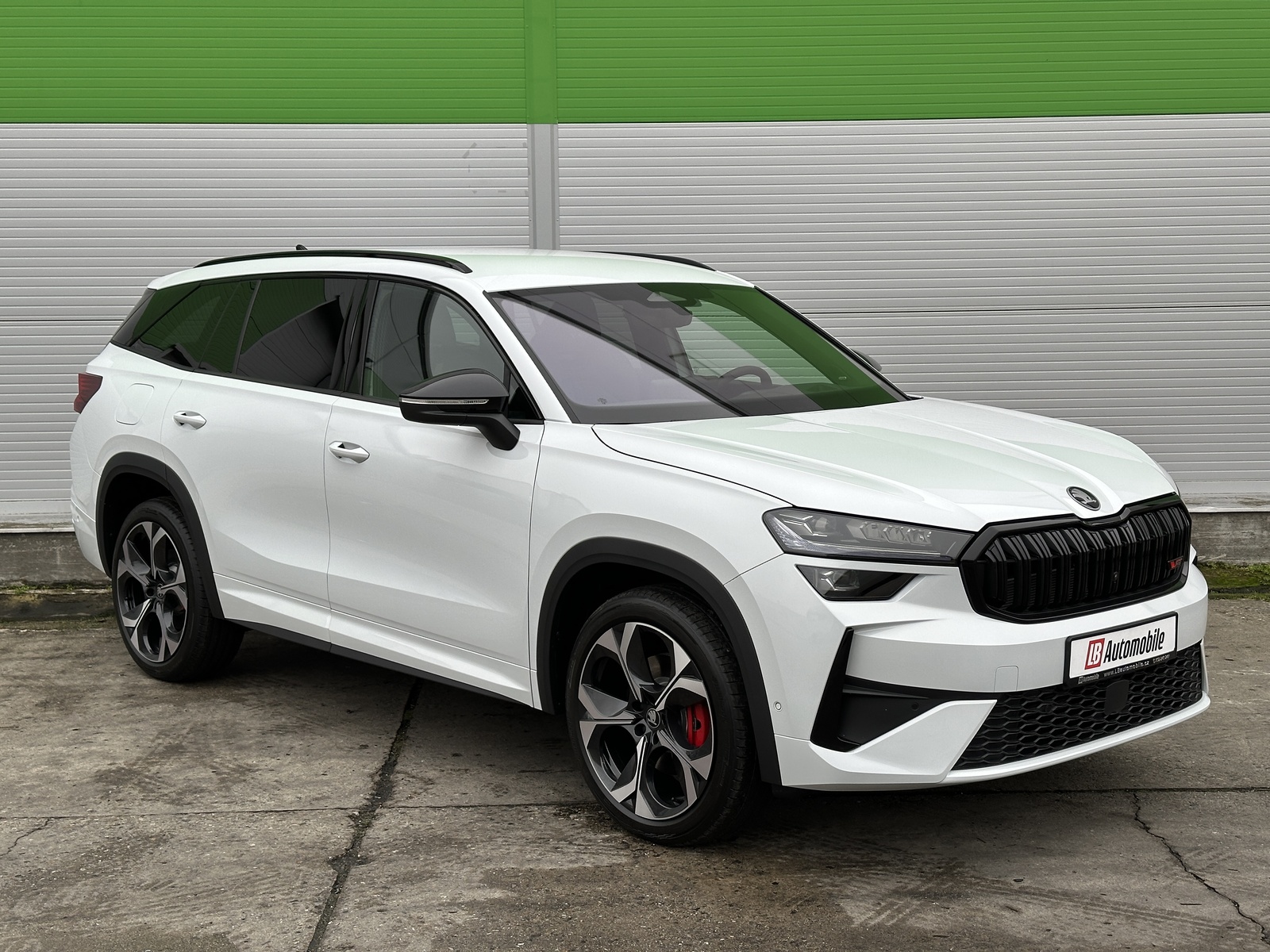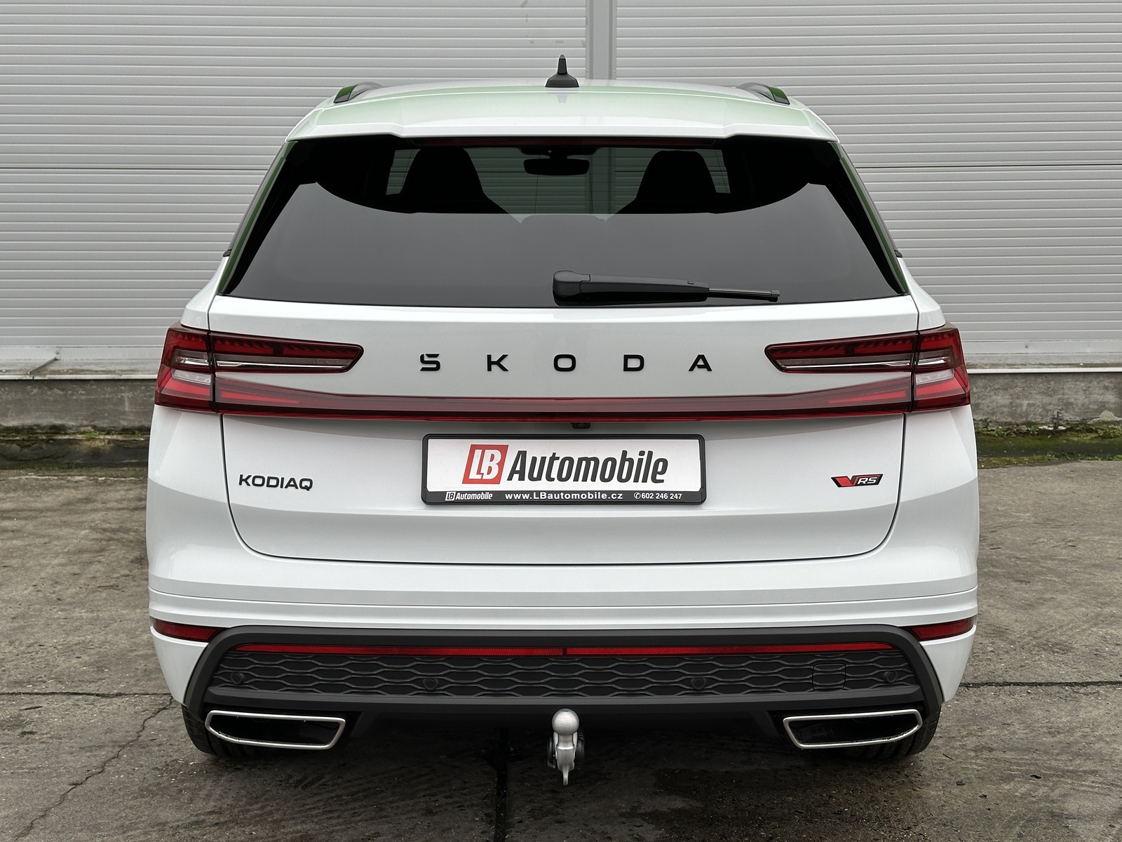 303/10941 Škoda Kodiaq RS 4x4 DSG 2.0TSi 195kW/265PS, Pohon všech kol 4x4, 7st. Automatická převodovka DSG, Tovární záruka Škoda Auto 5let/100.000km, Výbava vozu: Paket Family - (Sluneční rolety zadních bočních oken, Boční airbagy vzadu, Držák telefonu a tabletu, Ochrana hran dveří, Odkládací přihrádka za středovou konzolou, Odpadkový koš), Nezávislé topení - Webasto, Tažné zařízení sklopné - elektricky odjistitelné s asistentem pro manévrování s přívěsem, Kola z lehkých slitin ALU Škoda "ELIAS" 8Jx20" černá/leštěná, Sportovní nárazníky RS, Interiér RS - Suedia/umělá kůže, Adaptivní podvozek DCC+, Progresivní řízení, Volba jízdního režimu, Elektricky nastavitelná přední sedadla s pamětí, Offroad režim, Vyhřívané čelní sklo, Asistovaná jízda 2.5 PLUS - (Prediktivní tempomat, Adaptivní vedení v jízdním pruhu - Lane Assist+, Asistent jízdy v koloně, Nouzový asistent, Automatické parkování, Uložený parkovací manévr, Panoramatický kamerový systém - 360°KAMERA, Proaktivní ochrana cestujících), Osvětlená maska chladiče s logem RS, Head-Up displej, Soundsystém CANTON - 14 reproduktorů včetně Subwooferu, Virtuální pedál, Ocelové rezervní kolo, Vyhřívaná zadní sedadla, Vyhřívaný multifunkční sportovní kožený volant, Akustická boční okna vpředu, Infotainment Navi 13" - Webrádio, čistič obrazovky, KESSY s alarmem - bezklíčové zamykání a startování, Elektrické otevírání zavazadlového prostoru, Matrix-LED přední světlomety, LED zadní světla s animovanými směrovkami, Ambientní osvětlení, Vyhřívaná přední sedadla, Třízónová klimatizace Climatronic, Tónovaná skla a Sunset - zatmavená zadní okna, Multifunkční panel s otočnými ovladači Smart Dials, Rozpoznávání dopravních značek s ISA kontrolou rychlosti, Front Assist - asistent varování a brzdění při hrozící kolizi s vozidly, chodci a cyklisty, Asistence při průjezdu křižovatkou, Asistent mrtvého úhlu - Side Assist, Antikolizní asistent, Kontrola tlaku v pneumatikách, Asistent rozjezdu do kopce, Parkovací senzory vpředu a vzadu - PDC, Upozornění na únavu a pozornost řidiče, 7x airbag, 2x i-Size a 2x Top Tether vzadu a 1x i-Size vpředu pro spolujezdce, Bezdrátové nabíjení pro dva telefony, Nouzové volání SOS - eCall, Virtuální Cockpit 10", Senzor světla a deště, Vnější zpětná zrcátka - elektricky nastavitelná, sklopná, vyhřívaná a automaticky zatmavovací na straně řidiče, Elektronická parkovací brzda s funkcí Auto Hold, Elektrické ovládání oken vpředu a vzadu, Středová konzola s držáky nápojů, 12V zásuvka vpředu, 5x USB-C - 2x vpředu, 2x vzadu, 1x u vnitřního zpětného zrcátka, Deštník ve dveřích řidiče, Zadní loketní opěrka, Sada na opravu pneumatik, Nový vůz ČR, Servisní kniha + dokumentace Škoda Auto, Možnost odpočtu DPH 21%, Skladem - ihned k odběru.