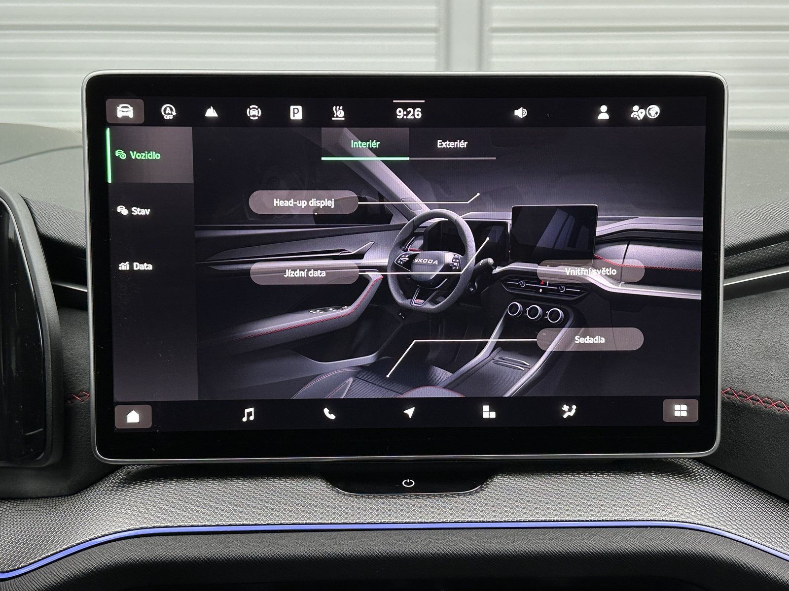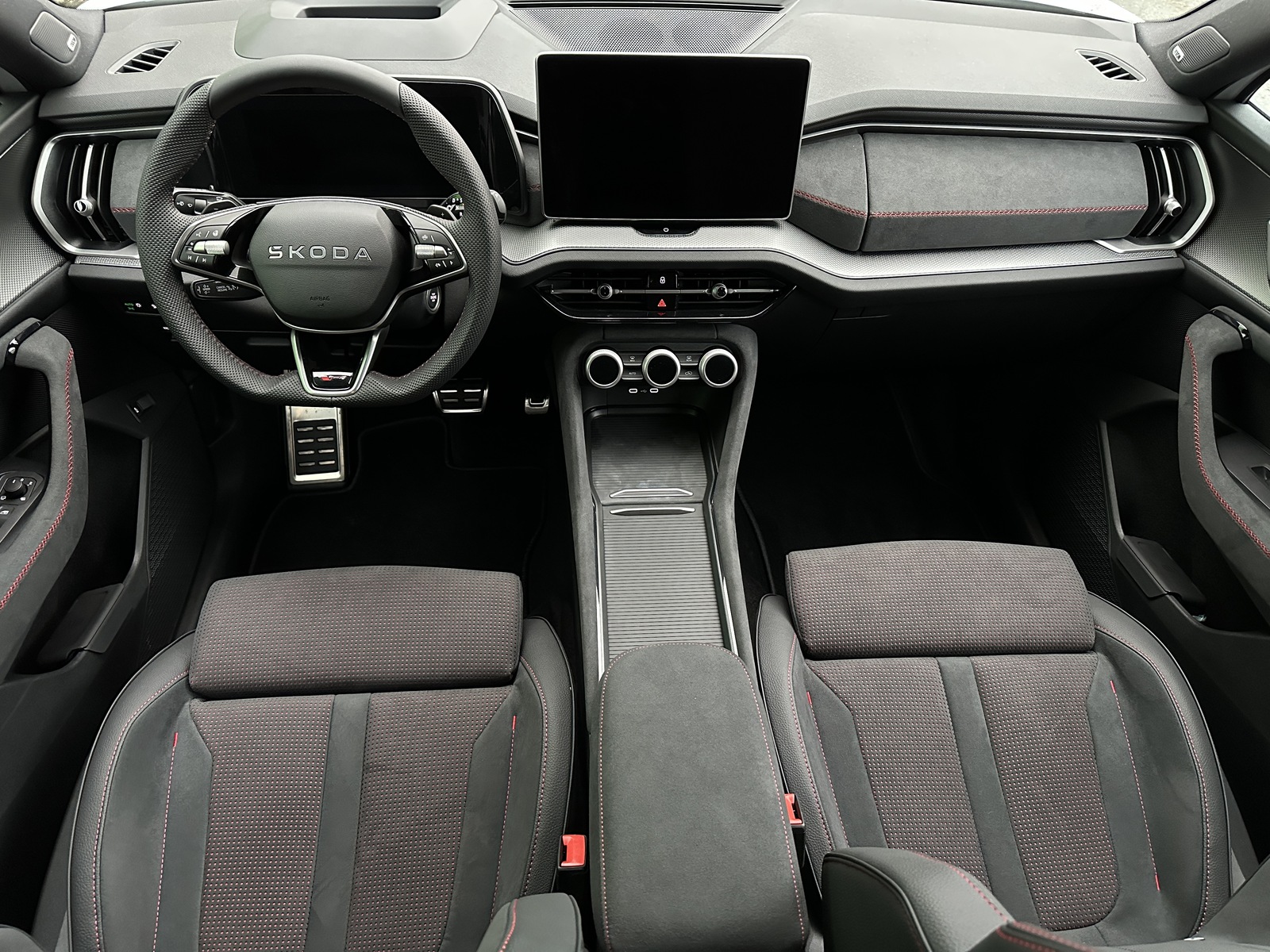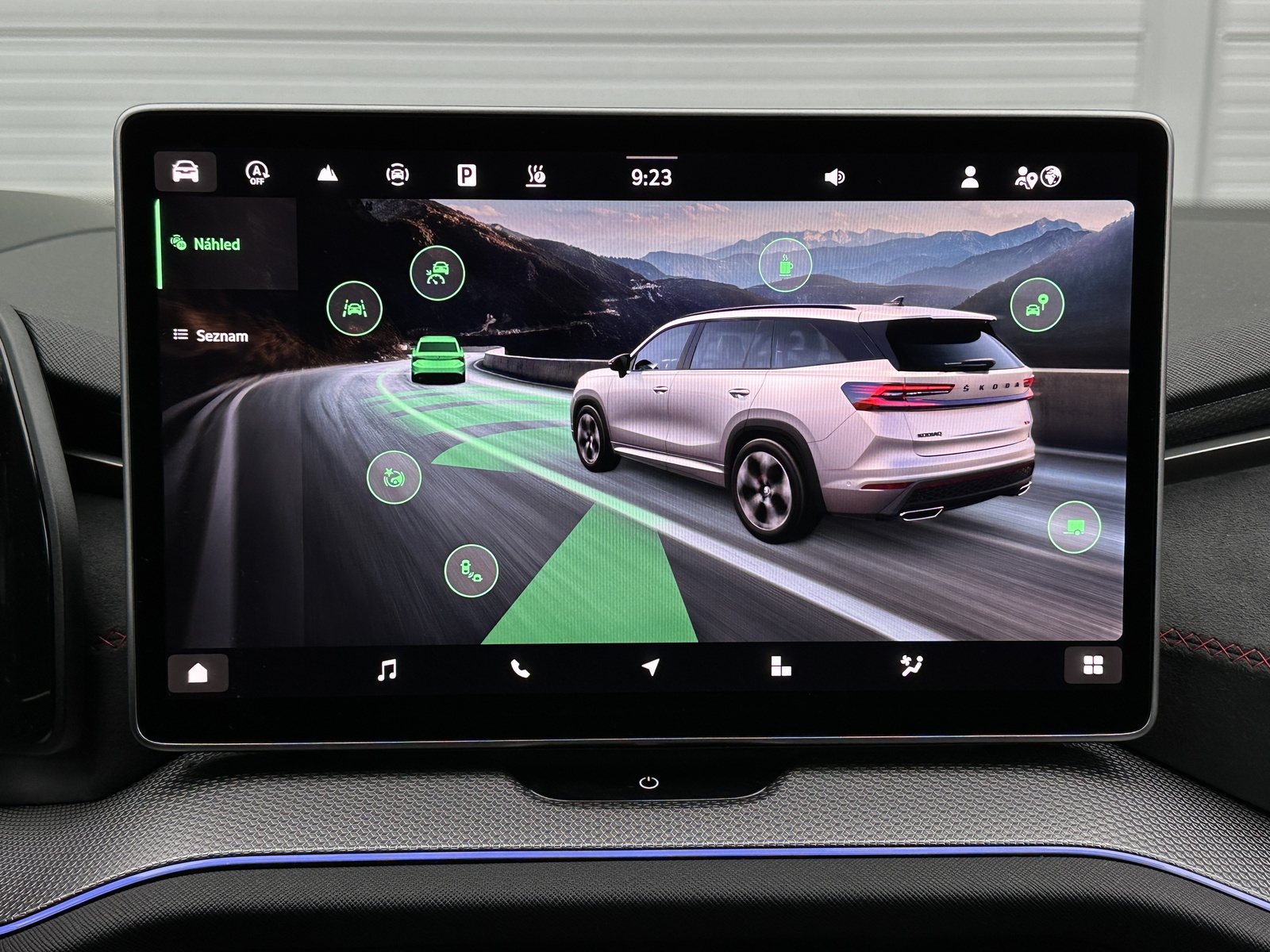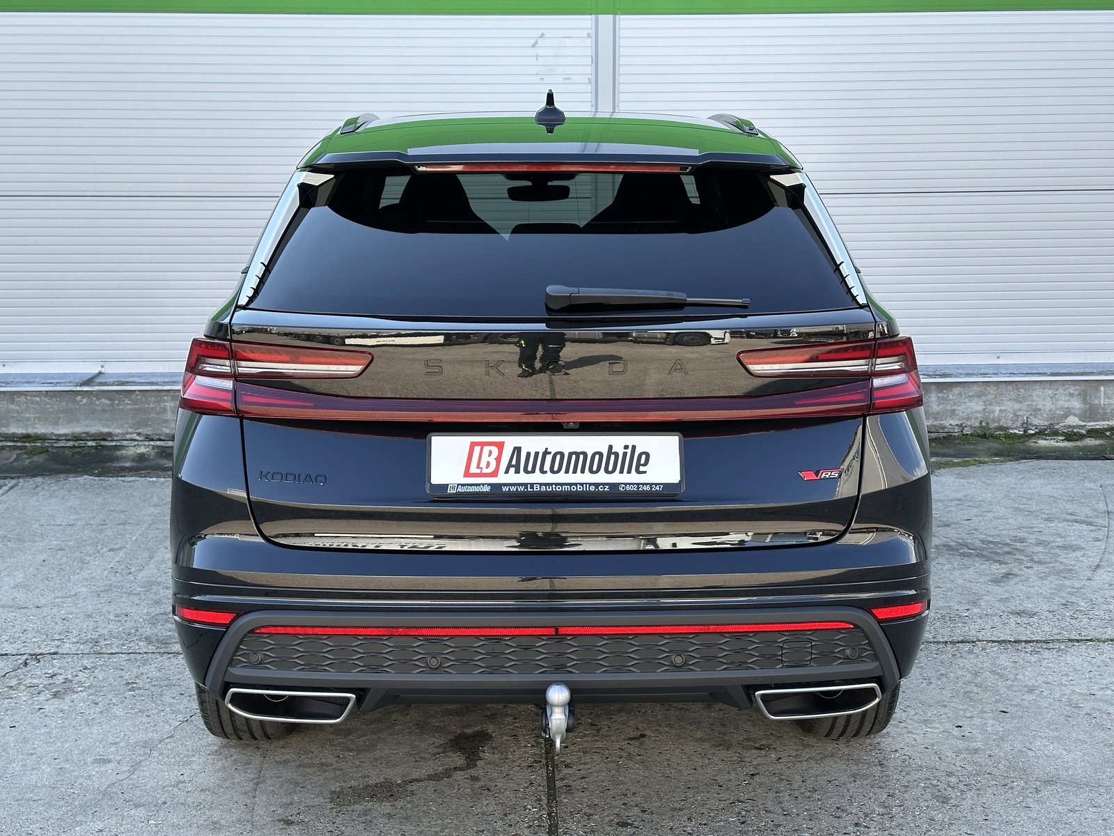 203/11026 Škoda Kodiaq RS DSG 4x4 7 MÍST, 2.0TSi 195kW/265PS, 7st. Automatická převodovka DSG, Pohon všech kol 4x4, Tovární záruka Škoda Auto 5let/100.000km, Výbava vozu: Panoramatické střešní okno, Nezávislé topení - Webasto, Tažné zařízení sklopné - el.odjistitelné s Trailer Assist pro manévrování s přívěsem, 3.řada sedadel, Kola z lehkých slitin ALU Škoda "ELIAS" 8Jx20" černá/leštěná, Sportovní nárazníky RS, Adaptivní podvozek DCC+, Progresivní řízení, Volba jízdního režimu, Elektricky nastavitelná přední sedadla s pamětí, Offroad režim, Vyhřívané čelní sklo, Asistovaná jízda 2.5 PLUS - (Prediktivní tempomat, Adaptivní vedení v jízdním pruhu - Lane Assist+, Asistent jízdy v koloně, Nouzový asistent, Automatické parkování, Uložený parkovací manévr, Panoramatický kamerový systém, Proaktivní ochrana cestujících), Osvětlená maska chladiče s logem RS, Head-Up displej, Soundsystem CANTON - 14 reproduktorů včetně subwooferu, Virtuální pedál, Ocelové rezervní kolo, Vyhřívaná zadní sedadla, Vyhřívaný multifunkční sportovní kožený volant, Akustická boční okna vpředu, Infotainment NAVI 13" - Webrádio, Čistič obrazovky, KESSY s alarmem - bezklíčové zamykání a startování, Elektrické otevírání zavazadlového prostoru, Matrix-LED přední světlomety, LED zadní světla s animovanými směrovkami, Ambientní osvětlení, Vyhřívaná přední sedadla, Třízónová klimatizace Climatronic, Tónovaná skla a Sunset, Multifunkční panel s otočnými ovladači Smart Dials, Rozpoznávání dopravních značek s ISA kontrolou rychlosti, Front Assist - s varováním a brzděním při hrozící kolizi s vozidly, chodci a cyklisty, Asistence při průjezdu křižovatkou, Asistent mrtvého úhlu - Side Assist, Antikolizní asistent, Kontrola tlaku v pneumatikách, Asistent rozjezdu do kopce, Parkovací senzory vpředu a vzadu - PDC P/Z, Upozornění na únavu a pozornost řidiče, 7x airbag, 2x i-Size a 2x Top Tether vzadu a 1x i-Size vpředu pro spolujezdce, Bezdrátové nabíjení pro dva telefony, Nouzové volání SOS eCall, Virtuální Cockpit 10", Senzor světla a deště, Vnější zpětná zrcátka - elektricky nastavitelná, sklopná, vyhřívaná a automaticky zatmavovací na straně řidiče, Elektronická parkovací brzda s funkcí Auto Hold, Elektrické ovládání oken vpředu a vzadu, Středová konzola s držáky nápojů, 12V zásuvka vpředu, 5x USB-C - 2x vpředu, 2x vzadu, 1x u vnitřního zpětného zrcátka, Deštník ve dveřích řidiče, Zadní loketní opěrka, Sada na opravu pneumatik, Nový vůz s registrací, NOVÉ ČR, Servisní kniha + dokumentace Škoda Auto, Možnost odpočtu DPH 21%, Termín odběru a převzetí 11.03.2026.