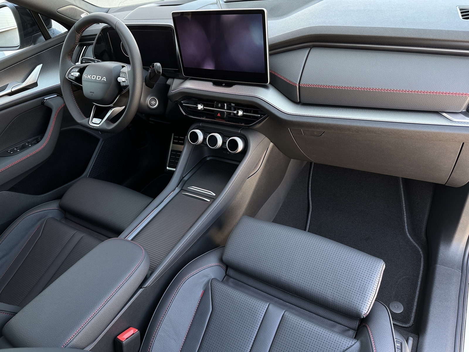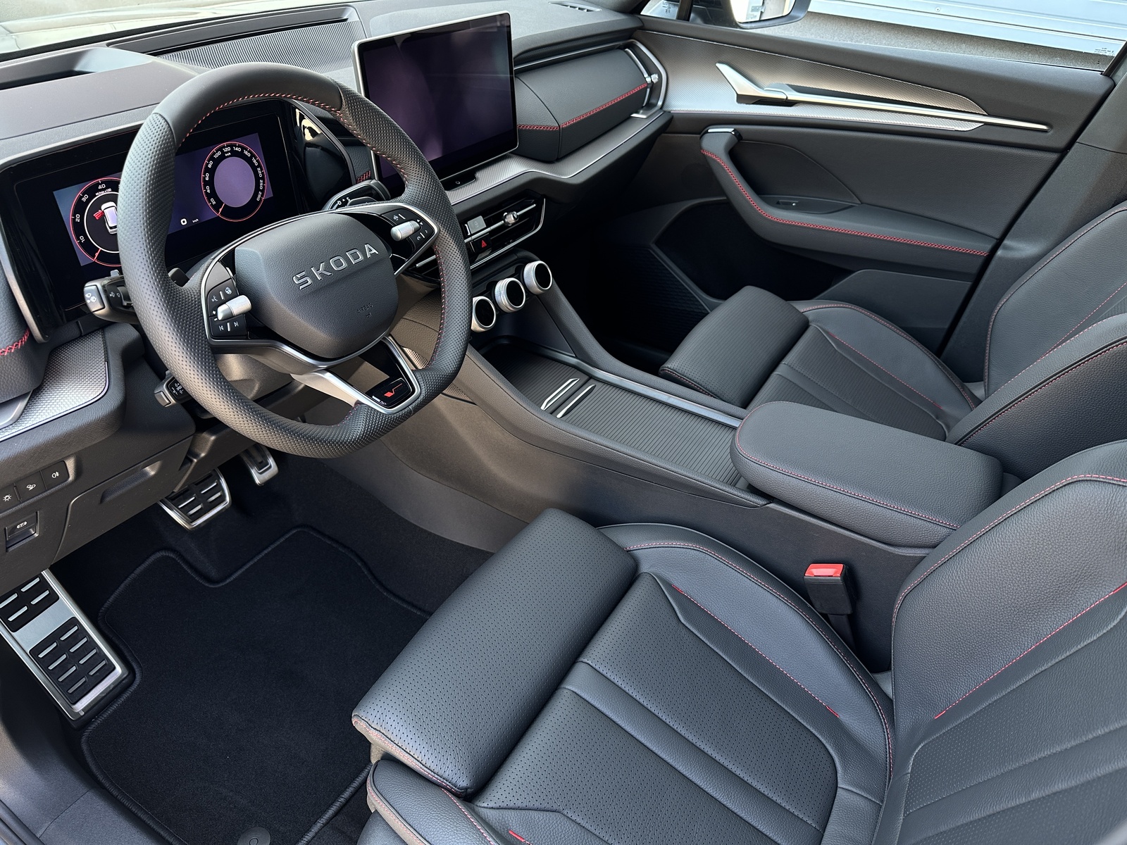 307/11046 Škoda Kodiaq RS DSG 4x4 2.0TSi 195kW/265PS, 7st. Automatická převodovka DSG, Pohon všech kol 4x4, Tovární záruka Škoda Auto 5let/100.000km, Výbava vozu: Paket Family - (Sluneční rolety zadních bočních oken, Boční airbagy vzadu, Držák telefonu a tabletu, Ochrana hran dveří, Odkládací přihrádka za středovou konzolou, Odpadkový koš), Nezávislé topení - Webasto, Interiér RS Suite - Kožená sedadla s odvětráváním vpředu, Tažné zařízení sklopné - el.odjistitelné s Trailer Assist pro manévrování s přívěsem, 3.řada sedadel - 7míst k sezení, Kola z lehkých slitin ALU Škoda "ELIAS" 8Jx20" černá/leštěná, Sportovní nárazníky RS, Adaptivní podvozek DCC+, Progresivní řízení, Volba jízdního režimu, Elektricky nastavitelná přední sedadla s pamětí, Offroad režim, Vyhřívané čelní sklo, Asistovaná jízda 2.5 PLUS - (Prediktivní tempomat, Adaptivní vedení v jízdním pruhu - Lane Assist+, Asistent jízdy v koloně, Nouzový asistent, Automatické parkování, Uložený parkovací manévr, Panoramatický kamerový systém, Proaktivní ochrana cestujících), Osvětlená maska chladiče s logem RS, Head-Up displej, Soundsystem CANTON - 14 reproduktorů včetně subwooferu, Virtuální pedál, Ocelové rezervní kolo, Vyhřívaná zadní sedadla, Vyhřívaný multifunkční sportovní kožený volant, Akustická boční okna vpředu, Infotainment Navi 13" - Webrádio, Čistič obrazovky, KESSY s alarmem - bezklíčové zamykání a startování, Elektrické otevírání zavazadlového prostoru, Matrix-LED přední světlomety, LED zadní světla s animovanými směrovkami, Ambientní osvětlení, Vyhřívaná přední sedadla, Třízónová klimatizace Climatronic, Tónovaná skla a Sunset, Multifunkční panel s otočnými ovladači Smart Dials, Rozpoznávání dopravních značek s ISA kontrolou rychlosti, Front Assist - s varováním a brzděním při hrozící kolizi s vozidly, chodci a cyklisty, Asistence při průjezdu křižovatkou, Asistent mrtvého úhlu - Side Assist, Antikolizní asistent, Kontrola tlaku v pneumatikách, Asistent rozjezdu do kopce, Parkovací senzory vpředu a vzadu - PDC, Upozornění na únavu a pozornost řidiče, 7x airbag, 2x i-Size a 2x Top Tether vzadu a 1x i-Size vpředu pro spolujezdce, Bezdrátové nabíjení pro dva telefony, Nouzové volání SOS eCall, Virtuální Cockpit 10", Senzor světla a deště, Vnější zpětná zrcátka - elektricky nastavitelná, sklopná, vyhřívaná a automaticky zatmavovací na straně řidiče, Elektronická parkovací brzda s funkcí Auto Hold, Elektrické ovládání oken vpředu a vzadu, Středová konzola s držáky nápojů, 12V zásuvka vpředu, 5x USB-C - 2x vpředu, 2x vzadu, 1x u vnitřního zpětného zrcátka, Deštník ve dveřích řidiče, Zadní loketní opěrka, Sada na opravu pneumatik, Servisní kniha + dokumentace Škoda Auto, NOVÉ ČR, Možnost odpočtu DPH 21%, Skladem - ihned k odběru.