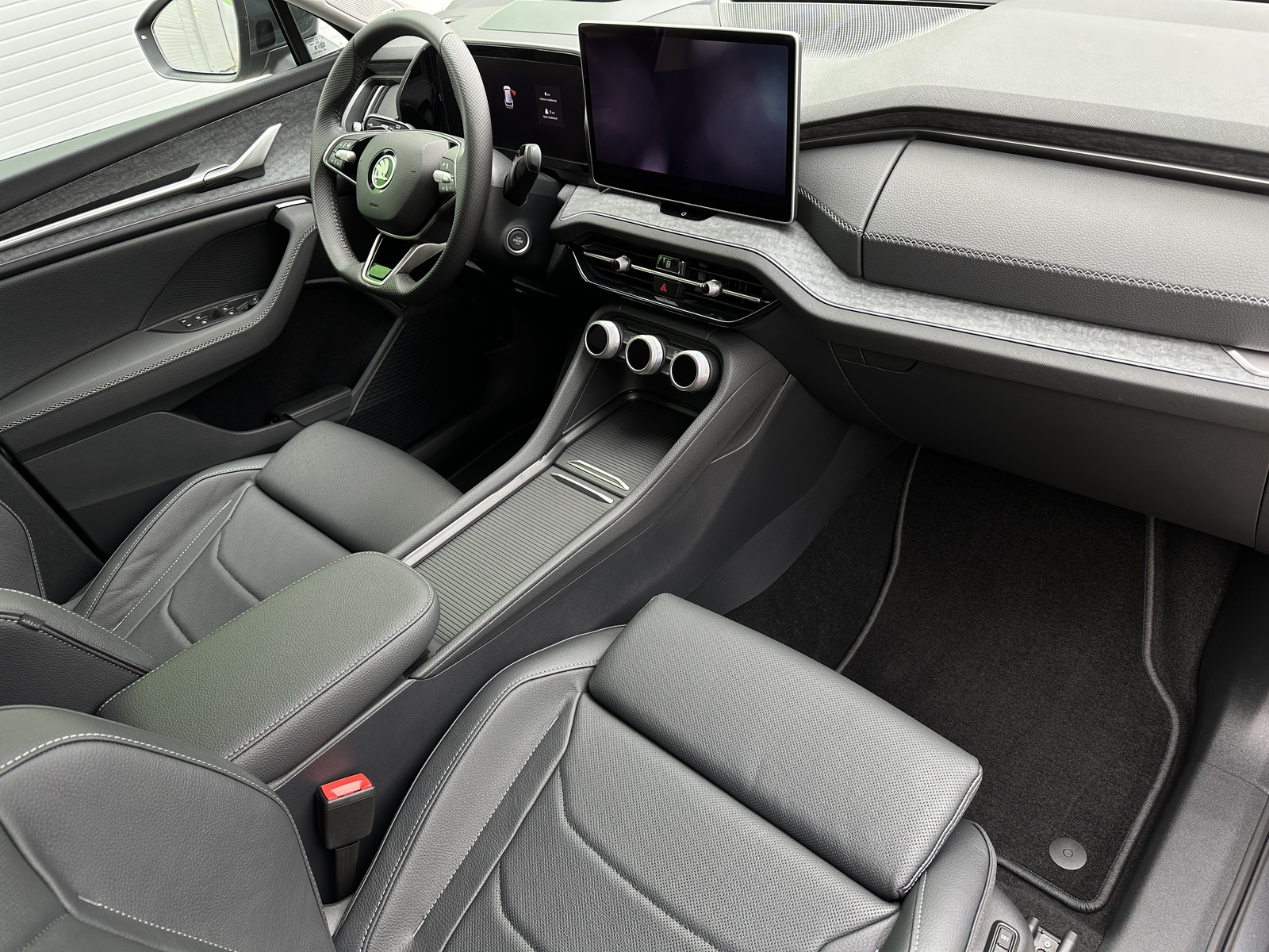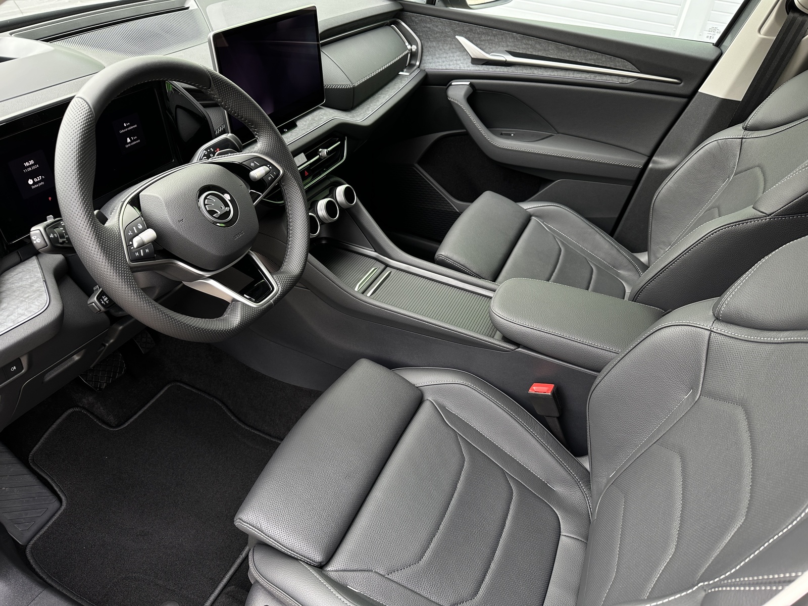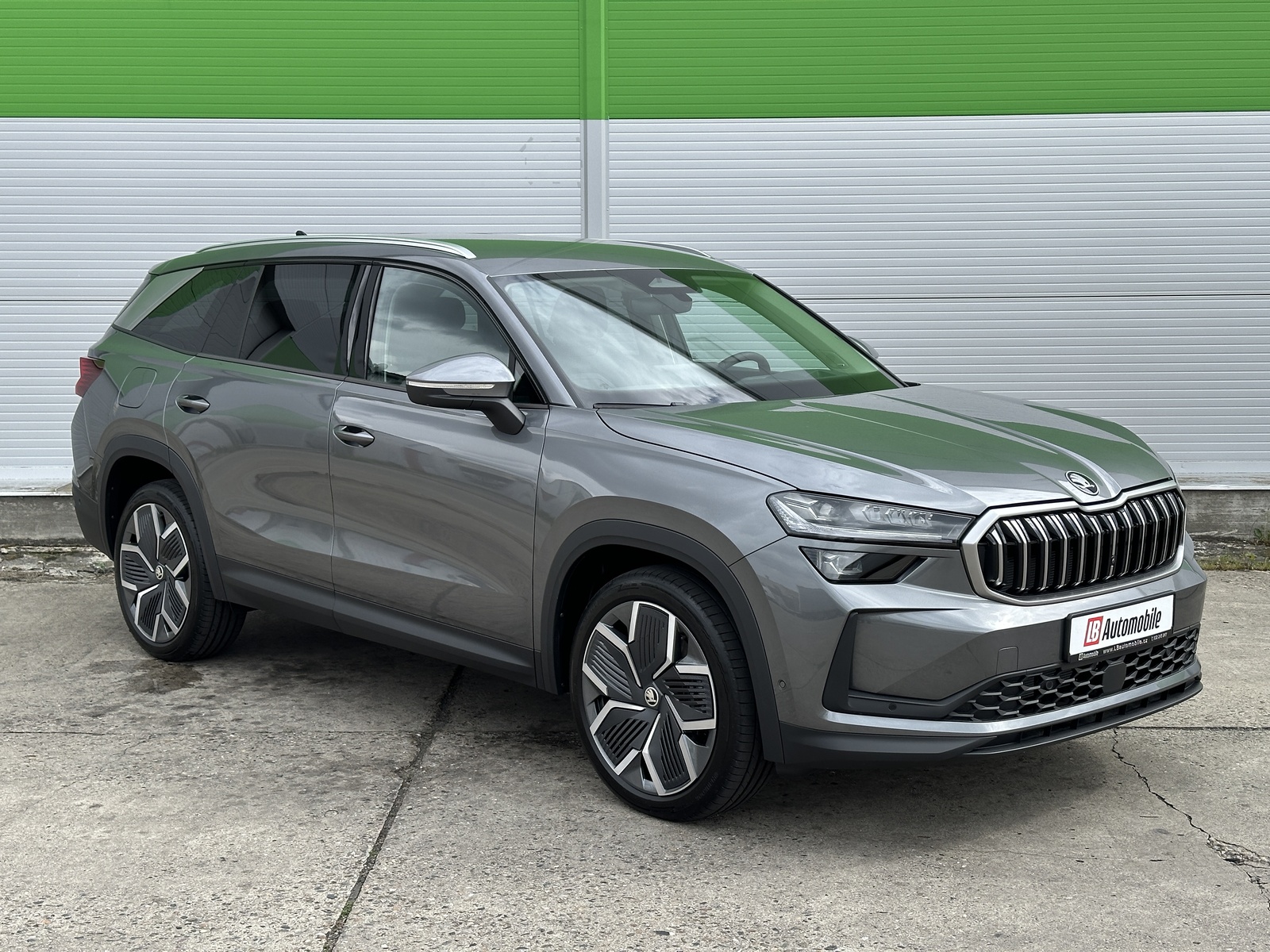 165/9806 Škoda Kodiaq Exclusive Selection 1.5TSi iV DSG, 150kW/204PS,6st. Automatická převodovka, Výbava vozu: Tovární záruka Škoda Auto do 12/2029 nebo 100.000km, Kola z lehkých slitin ALU Škoda "RILA AERO" 8Jx20" Antracitová/Leštěná, Tažné zařízení sklopné - el.odjistitelné s asistencí pro jízdu s přívěsem, Adaptivní podvozek DCC s 2-ventilovým tlumičem, Asistent pro jízdu v jízdním pruhu – Lane Assist+, Nouzový asistent, Asistent v dopravní zácpě, Parkovací asistent, Asistent změny jízdního pruhu – Side Assist, Adaptivní tempomat - ACC, KESSY – systém bezklíčového zamykání a startování s bezpečnostním zámkem, Třízónová klimatizace Climatronic, Head-up displej, Matrix-LED světlomety, Virtuální pedál - El. otvírání zavazadlového prostoru pomocí přejetím nohy pod zavazadlovým prostorem, Virtuální Cockpit, Panoramatický kamerový systém – 360° Kamera, Parkovací asistent IPA – Intelligent Park Assist, Sluneční rolety na zadních bočních dveřích, Soundsystem CANTON, Vyhřívaná přední a zadní sedadla, Rozpoznávání dopravních značek, Front Assist – čelní asistent s varováním a brzděním pro vozidla, chodce a cyklisty, Kožený multifunkční vyhřívaný volant s pádly řazení pro DSG, Alarm proti krádeži – monitorování interiéru, couvací siréna a ochrana proti odtažení, TOP zadní LED světla s animovanými ukazateli směru a vítacím efektem, 7x Airbag + Boční airbagy vzadu, DAB – příjem digitálního rádia, Detekce únavy řidiče, Dvojitá podlaha v zavazadlovém prostoru, Bederní opěrka na obou stranách, Kontrola tlaku v pneumatikách, Kožené potahy sedadel, Pokročilý bezpečnostní systém PreCrash, Světla pro denní svícení s pomocnými světly a funkcemi automatického příchodu a odchodu z domova, 2x i-Size a 2x Top Tether vzadu a 1x i-Size vpředu pro spolujezdce, 12V zásuvka, 2x držák tabletu na opěradla předních sedadel, Ambientní osvětlení, Asistent rozjezdu do kopce, Nový vůz, Servisní kniha + kompletní dokumentace Škoda Auto, Možnost odpočtu DPH 21%, Skladem - ihned k odběru.