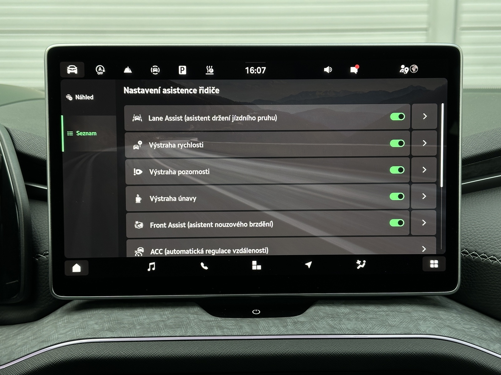 ABS, Adaptivní regulace podvozku, adaptivní tempomat, airbag, alarm, Ambientní LED osvětlení interiéru, Android Auto, Apple Car Play, Asistent pro jízdu v koloně, Asistent pro odbočování, Asistent pro vedení vozu v jízdních pruzích, Asistent při jízdě ze svahu, asistent rozjezdu do kopce, Asistent stability přívěsu (TSA), Asistent udržování odstupu, Asistent změny jízdního pruhu, automatická klimatizace, automatická převodovka, automatická uzávěrka diferenciálu, Automatické přepínání dálkových světel, automatické svícení, autorádio, Bezdrátová nabíječka mobilních telefonů (Qi), bezklíčkové ovládání, bluetooth, centrální zamykání, dálkové centrální zamykání, deaktivace airbagu spolujezdce, dělená zadní sedadla, Denní svícení, Digitální příjem rádia (DAB), Digitální přístrojová deska, Digitální přístrojový štít, Dotykové ovládání palubního počítače, EDS, Elektrické dovírání zavazadlového prostoru, Elektrické tažné zařízení, Elektrochromatické vnitřní zpětné zrcátko, Elektronická uzávěrka diferenciálu (EDS), el. ovládání oken, el. ovládání zrcátek, el. ovládaný kufr, El. parkovací brzda, el. seřiditelná sedadla, El. seřiditelné sedadlo řidiče, el. sklopná zrcátka, el. startér, ESP, Head-up display, Hlasové ovládání palubního počítače, hlídání mrtvého úhlu, imobilizér, isofix, kožená sedadla, kožené čalounění, LED adaptivní světlomety, LED denní svícení, LED matrixové světlomety, LED světlomety plnohodnotné, litá kola, Malý kožený paket, Mobilní připojení, multifunkční volant, nastavitelná sedadla, nastavitelný volant, natáčecí světlomety, navigační systém, nezávislé topení, nouzové brždění, Ochrana proti odcizení a vloupání, originál autorádio, Originální autorádio, Pádla řazení na volantu, palubní počítač, Pamět nastavení sedadla řidiče, panoramatická střecha, parkovací asistent, parkovací kamera, parkovací senzory, Parkovací senzory přední, Parkovací senzory zadní, podélný posuv sedadel, pohon 4 x 4, posilovač řízení, Premiový audiosystém, protiprokluzový systém kol (ASR), Přístrojová deska s barevným displejem, rádio, regulace při jízdě ze svahu, regulace tuhosti podvozku, rezervní kolo, Roletky na zadní okna, Rozpoznávání dopravních značek, satelitní navigace, senzor stěračů, senzor tlaku v pneumatikách, sledování jízdního pruhu, sledování únavy řidiče, sportovní podvozek, Start/Stop systém, střešní nosič, střešní okno, Systém nouzového zastavení, tažné zařízení, tempomat, tónovaná skla, Upozornění na přijíždějící vozidla při couvání (RCTA), USB, uzávěrka mezinápravového diferenciálu, venkovní teploměr, Volba jízdního režimu, vyhřívaná sedadla, Vyhřívaná zadní sedadla, vyhřívaná zrcátka, Vyhřívané trysky ostřikovačů skla, vyhřívaný volant, výsuvné opěrky hlav, výškově nastavitelná sedadla, výškově nastavitelné sedadlo řidiče, Zadní loketní opěrka, zadní stěrač, záruka, Zatmavená zadní skla, 360° monitorovací systém (AVM), 7 x airbag
