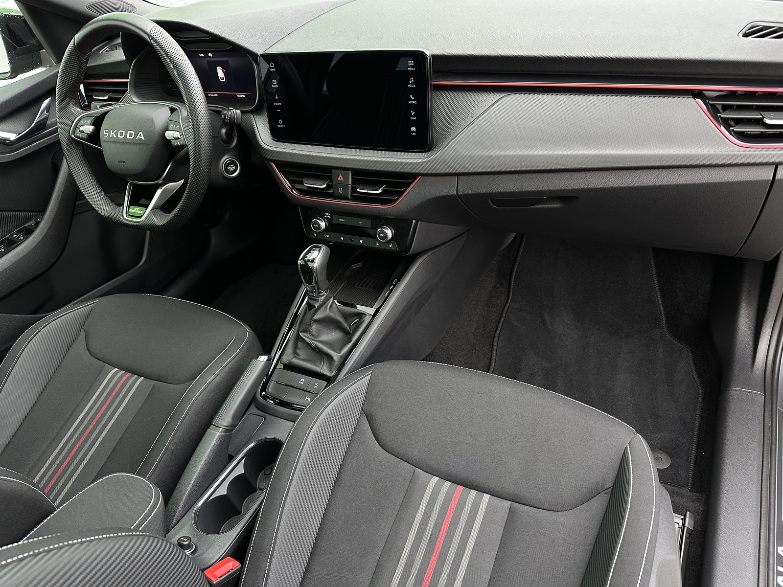 3/10799 Škoda Scala Monte Carlo 1.5TSi 110kW/150PS, 7st. Automatická převodovka DSG, Tovární záruka Škoda Auto 5let/100.000km, Výbava vozu: Asistovaná jízda 1.5 PLUS - (Adaptivní tempomat - ACC, Adaptivní vedení v jízdním pruhu - Lane Assist+, Hlídání mrtvého úhlu - Side Assist), Paket NAVI - (Infotainment Amundsen s Navigací, Webradio, Virtuální Cockpit, Digitální asistentka Laura), Tažné zařízení sklopné - el. odjistitelné, Ocelové rezervní kolo, Kola z lehkých slitin ALU Škoda "URSA" 7Jx18" Černá/Leštěná, Vyhřívané čelní sklo, Matrix-LED přední světlomety, Panoramatická střecha, Interiér – sportovní Monte Carlo s černou stropnicí, Černě lakované doplňky karoserie, LED zadní světla s animovanými směrovkami, Vyhřívaný sportovní multifunkční kožený volant – pro DSG s pádly pod volantem, Sportovní kryty pedálů, Dekorativní prahové lišty, KESSY – bezklíčové odemykání a startování, Volba jízdních režimů, Zadní parkovací kamera, Parkovací senzory vpředu a vzadu – PDC, Mlhové světlomety, Elektricky sklopná vnější zrcátka s automatickým stmíváním, 2x USB-C vzadu, Dešťový senzor, Světelný senzor, Vnitřní zpětné zrcátko s automatickým stmíváním, Bezdrátové nabíjení pro Smartphone, Zadní loketní opěrka, Loketní opěrka s Jumbo Boxem vpředu, Dvouzónová automatická klimatizace Climatronic, Vyhřívaná přední sedadla, Bederní opěrky na předních sedadlech, Výškově nastavitelná sedadla řidiče a spolujezdce, Kožená hlavice řadicí páky a madlo ruční brzdy, Vyhřívané trysky ostřikovačů, Elektrické ovládání oken vpředu i vzadu, 12V zásuvka vpředu a vzadu, 2x USB-C, 8 reproduktorů, Bluetooth, 4 reproduktory, DAB, Bezdrátový Smartlink - zrcadlení aplikací z telefonu na Infotainment vozidla, Front Assist – varování a brzdění při hrozící kolizi s vozidly, chodci a cyklisty, Rozpoznávání dopravních značek, Upozornění na únavu řidiče, Asistent rozjezdu do kopce, Virtualní Cockpit , 6x airbag, 3x Isofix a Top Tether, Deaktivace airbagu spolujezdce, Nouzový volání SOS eCall+, Potah sedadel – látka, Sunset – zatmavená zadní okna, Servisní kniha + dokumentace Škoda Auto, Možnost odpočtu DPH 21%, Skladem - ihned k odběru.