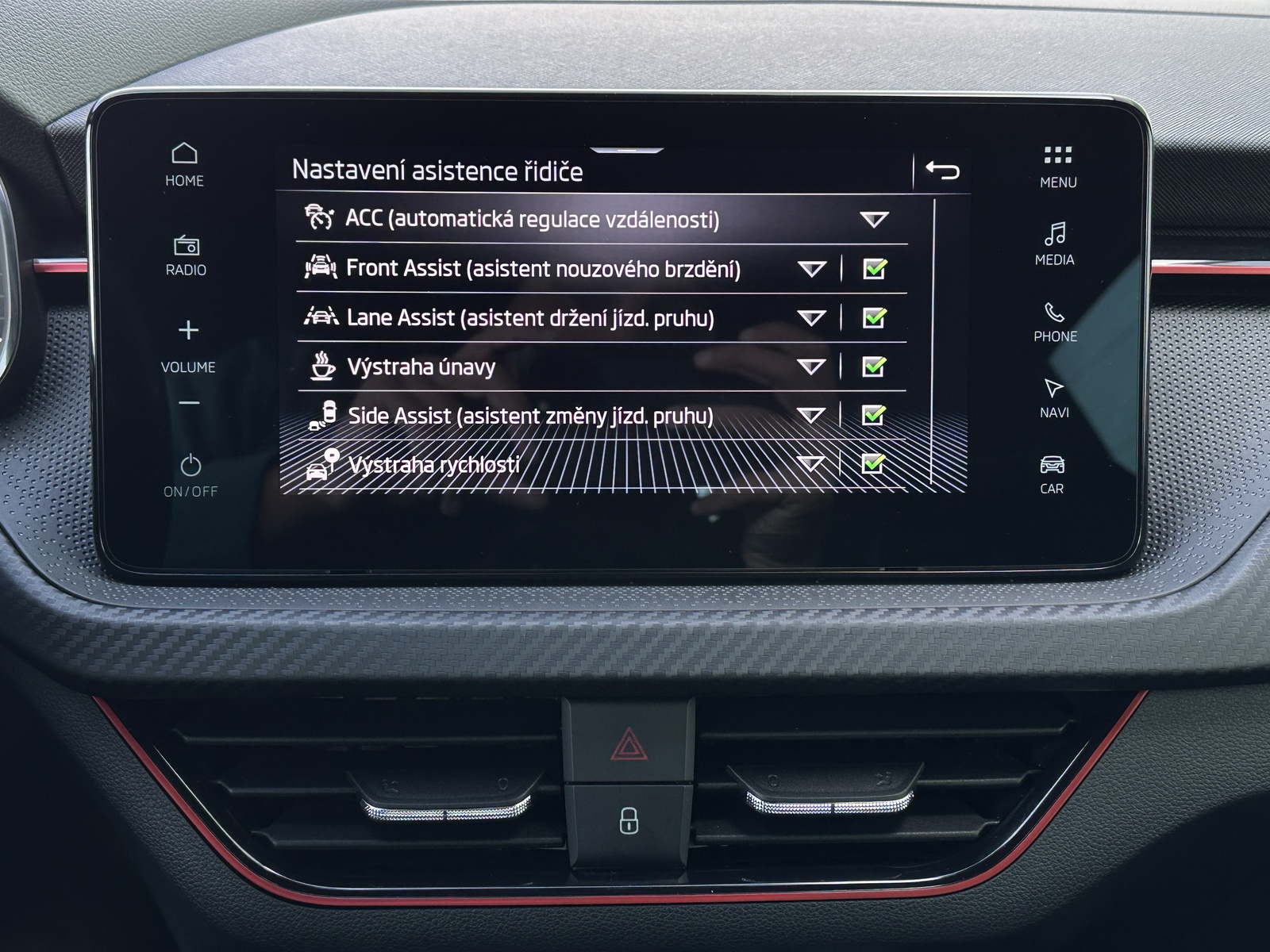 ABS, adaptivní tempomat, airbag, Ambientní LED osvětlení interiéru, Android Auto, Apple Car Play, Asistent pro odbočování, Asistent pro vedení vozu v jízdních pruzích, asistent rozjezdu do kopce, Asistent udržování odstupu, Asistent změny jízdního pruhu, automatická klimatizace, automatická převodovka, automatické svícení, autorádio, Bezdrátová nabíječka mobilních telefonů (Qi), bezklíčkové ovládání, bluetooth, centrální zamykání, dálkové centrální zamykání, deaktivace airbagu spolujezdce, dělená zadní sedadla, Denní svícení, Digitální příjem rádia (DAB), Digitální přístrojová deska, Dotykové ovládání palubního počítače, dvouzónová klimatizace, Elektrochromatické vnitřní zpětné zrcátko, el. ovládání oken, el. ovládání zrcátek, el. sklopná zrcátka, el. startér, ESP, Hlasové ovládání palubního počítače, hlídání mrtvého úhlu, imobilizér, isofix, LED adaptivní světlomety, LED denní svícení, LED matrixové světlomety, LED světlomety plnohodnotné, litá kola, Malý kožený paket, mlhovky, Mobilní připojení, multifunkční volant, nastavitelná sedadla, nastavitelný volant, natáčecí světlomety, navigační systém, nouzové brždění, originál autorádio, Originální autorádio, Pádla řazení na volantu, palubní počítač, panoramatická střecha, parkovací kamera, parkovací senzory, Parkovací senzory přední, Parkovací senzory zadní, podélný posuv sedadel, posilovač řízení, protiprokluzový systém kol (ASR), Přístrojová deska s barevným displejem, rádio, rezervní kolo, Rozpoznávání dopravních značek, satelitní navigace, senzor stěračů, senzor tlaku v pneumatikách, sledování jízdního pruhu, sledování únavy řidiče, sportovní sedadla, Start/Stop systém, Systém nouzového zastavení, tempomat, tónovaná skla, USB, venkovní teploměr, Volba jízdního režimu, vyhřívaná sedadla, vyhřívaná zrcátka, vyhřívané čelní sklo, Vyhřívané trysky ostřikovačů skla, vyhřívaný volant, výškově nastavitelná sedadla, výškově nastavitelné sedadlo řidiče, Zadní loketní opěrka, zadní stěrač, záruka, Zatmavená zadní skla, 6 x airbag