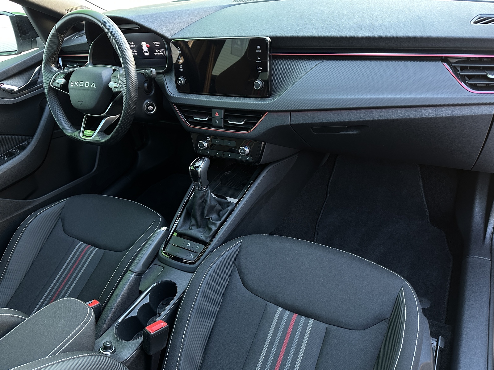 157/10976 Škoda Scala Monte Carlo 1.0TSi DSG 85kW/116PS, 7st. Automatická převodovka DSG, Tovární záruka Škoda Auto 5let/100.000km, Výbava vozu: Asistovaná jízda 1.5 PLUS - (Adaptivní tempomat - ACC, Adaptivní vedení v jízdním pruhu - Lane Assist+, Hlídání mrtvého úhlu - Side Assist), Dvojitá podlaha v zavazadlovém prostoru, Ocelové rezervní kolo, Kola z lehkých slitin ALU Škoda "URSA" 7Jx18" Černá/Leštěná, Vyhřívané čelní sklo, Matrix-LED přední světlomety, Panoramatická střecha, Interiér – sportovní Monte Carlo s černou stropnicí, Černě lakované doplňky karoserie, LED zadní světla s animovanými směrovkami, Vyhřívaný sportovní multifunkční kožený volant – pro DSG s pádly pod volantem, Sportovní kryty pedálů, Dekorativní prahové lišty, KESSY – bezklíčové odemykání a startování, Volba jízdních režimů, Zadní parkovací kamera , Parkovací senzory vpředu a vzadu – PDC, Mlhové světlomety, Elektricky sklopná vnější zrcátka s automatickým stmíváním, 2x USB-C vzadu, Dešťový senzor, Světelný senzor, Vnitřní zpětné zrcátko s automatickým stmíváním, Bezdrátové nabíjení pro Smartphone, Zadní loketní opěrka, Loketní opěrka s Jumbo Boxem vpředu, Dvouzónová automatická klimatizace Climatronic, Vyhřívaná přední sedadla, Bederní opěrky na předních sedadlech, Výškově nastavitelná sedadla řidiče a spolujezdce, Kožená hlavice řadicí páky a madlo ruční brzdy, Vyhřívané trysky ostřikovačů, Elektrické ovládání oken vpředu i vzadu, 12V zásuvka vpředu a vzadu, 2x USB-C, 8 reproduktorů, Bluetooth, 4 reproduktory, DAB, Bezdrátový Smartlink, Front Assist – varování a brzdění při hrozící kolizi s vozidly, chodci a cyklisty, Rozpoznávání dopravních značek, Upozornění na únavu řidiče, Asistent rozjezdu do kopce, Virtual Cockpit , 6x airbag, 3x Isofix a Top Tether, Deaktivace airbagu spolujezdce, Nouzový volání SOS eCall+, Potah sedadel – látka, Sunset – zatmavená zadní okna, Servisní kniha + dokumentace Škoda Auto, Možnost odpočtu DPH 21%, Skladem - ihned k odběru.