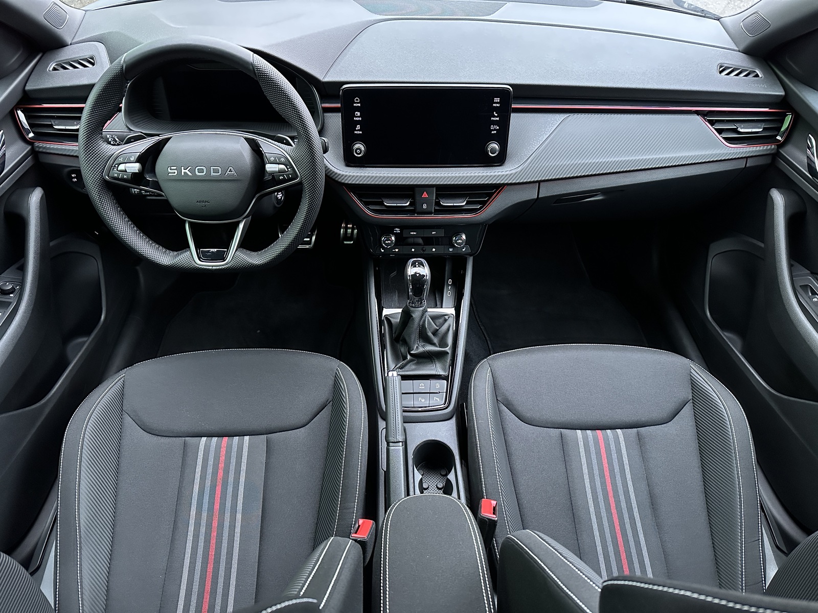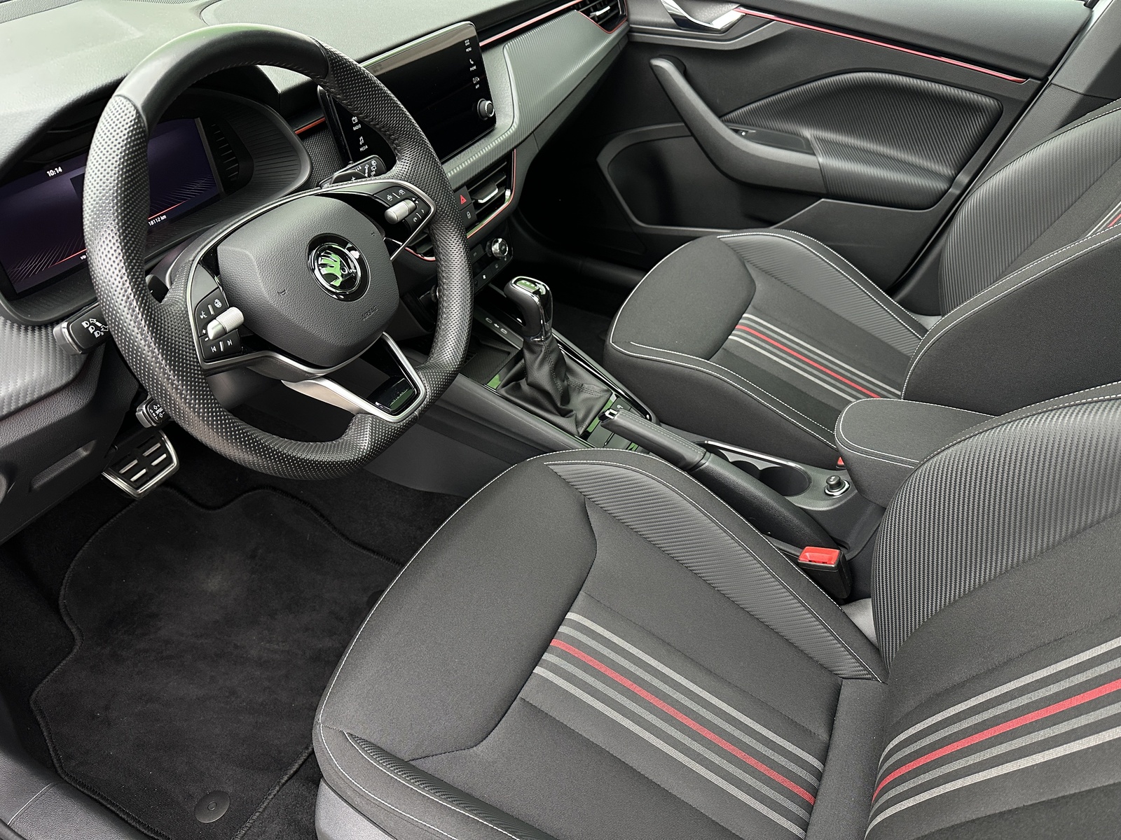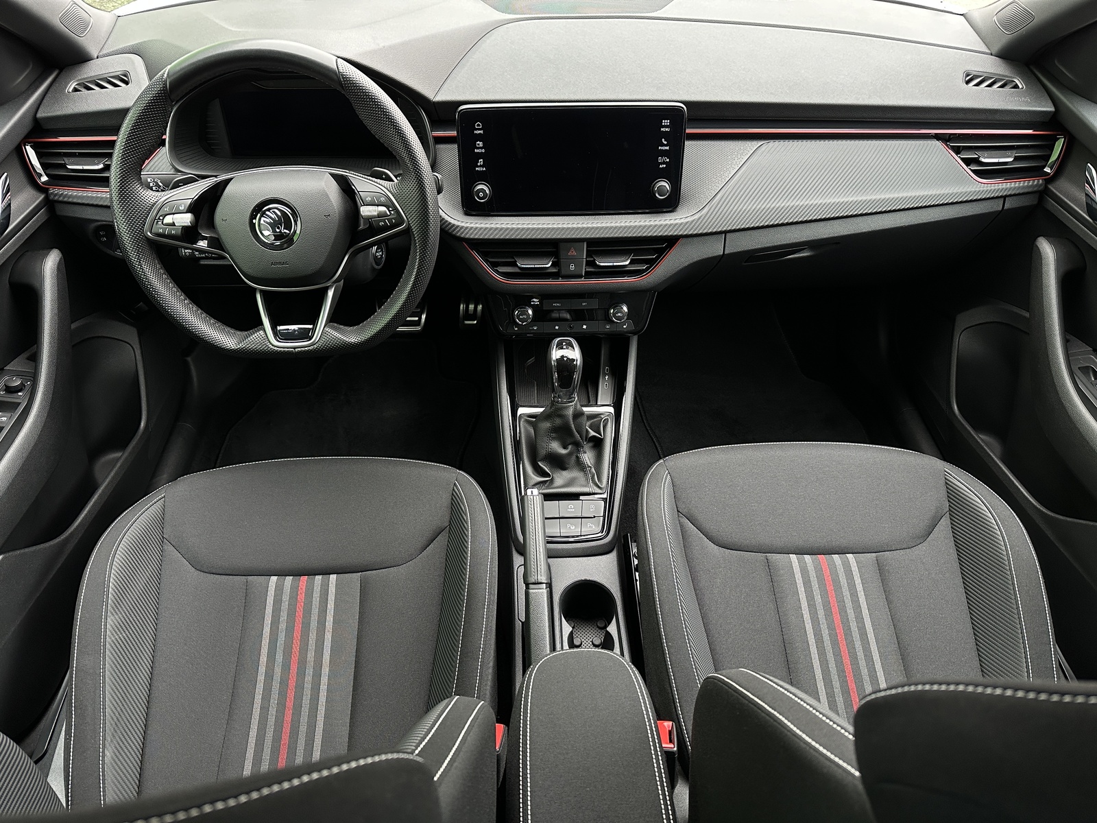 88/11008 Škoda Scala Monte Carlo 1.5TSi 110kW/150PS, 7st. Automatická převodovka DSG, Tovární záruka Škoda Auto 5 let/100.000km, Výbava vozu: Paket City PREMIUM - (Zadní parkovací KAMERA, Parkovací senzory vpředu - PDC, KESSY s Alarmem - bezklíčové zamykání a startování včetně Alarmu, Volba jízdních režimů, Virtuální pedál - otevírání víka kufru pohybem nohy pod zavazadlovým prostorem, Virtualní Cockpit, Automatické parkování - Park Assist), Asistovaná jízda 1.5 PLUS - (Adaptivní tempomat - ACC, Adaptivní vedení v jízdním pruhu - Lane Assist+, Hlídání mrtvého úhlu - Side Assist), Vyhřívané čelní sklo, Tažné zařízení sklopné - el. odjistitelné, Ocelové rezervní kolo, Kola z lehkých slitin ALU Škoda "URSA" 7Jx18" Černá/Leštěná, Matrix-LED přední světlomety, Panoramatická střecha, Interiér – sportovní Monte Carlo s černou stropnicí, Černě lakované doplňky karoserie, LED zadní světla s animovanými směrovkami, Vyhřívaný sportovní multifunkční kožený volant – pro DSG s pádly pod volantem, Sportovní kryty pedálů, Dekorativní prahové lišty, KESSY – bezklíčové odemykání a startování, Volba jízdních režimů, Zadní parkovací KAMERA, Parkovací senzory vpředu a vzadu – PDC, Mlhové světlomety, Elektricky sklopná vnější zrcátka s automatickým stmíváním, 2x USB-C vzadu, Dešťový senzor, Světelný senzor, Vnitřní zpětné zrcátko s automatickým stmíváním, Bezdrátové nabíjení pro Smartphone, Zadní loketní opěrka, Loketní opěrka s Jumbo Boxem vpředu, Dvouzónová automatická klimatizace Climatronic, Vyhřívaná přední sedadla, Bederní opěrky na předních sedadlech, Výškově nastavitelná sedadla řidiče a spolujezdce, Kožená hlavice řadicí páky a madlo ruční brzdy, Vyhřívané trysky ostřikovačů, Ukazatel hladiny kapaliny ostřikovačů, Elektrické ovládání oken vpředu i vzadu, 12V zásuvka vpředu a vzadu, 2x USB-C, 8 reproduktorů, Infotainment Media 8" – Bluetooth, 4 reproduktory, DAB, Bezdrátový SmartLink - zrcadlení aplikací z telefonu do Infotainmentu vozidla, Front Assist – varování a brzdění při hrozící kolizi s vozidly, chodci a cyklisty, Rozpoznávání dopravních značek, Upozornění na únavu řidiče, Asistent rozjezdu do kopce, Virtualní Cockpit, 6x airbag, 3x Isofix a Top Tether, Deaktivace airbagu spolujezdce, Nouzové volání SOS eCall+, Potah sedadel – látka, Sunset – zatmavená zadní okna, Servisní kniha + dokumentace Škoda Auto, Možnost odpočtu DPH 21%, Skladem - ihned k odběru.