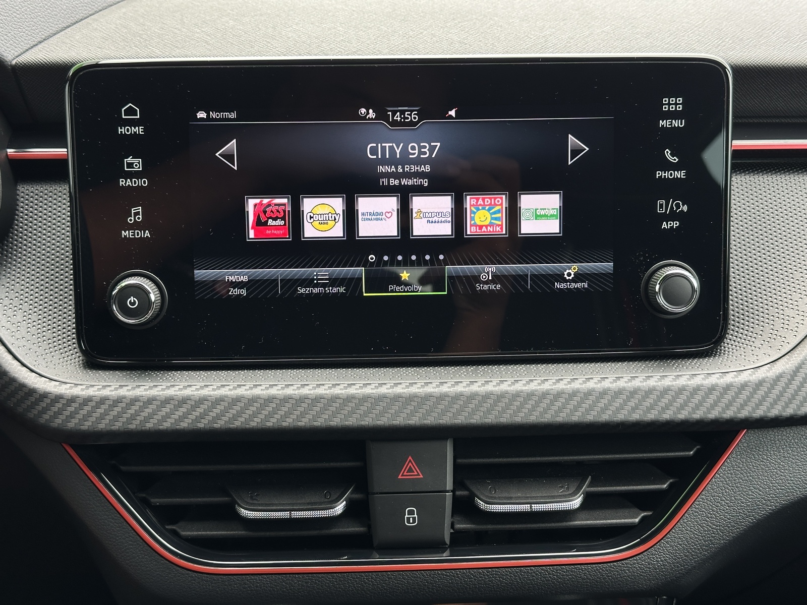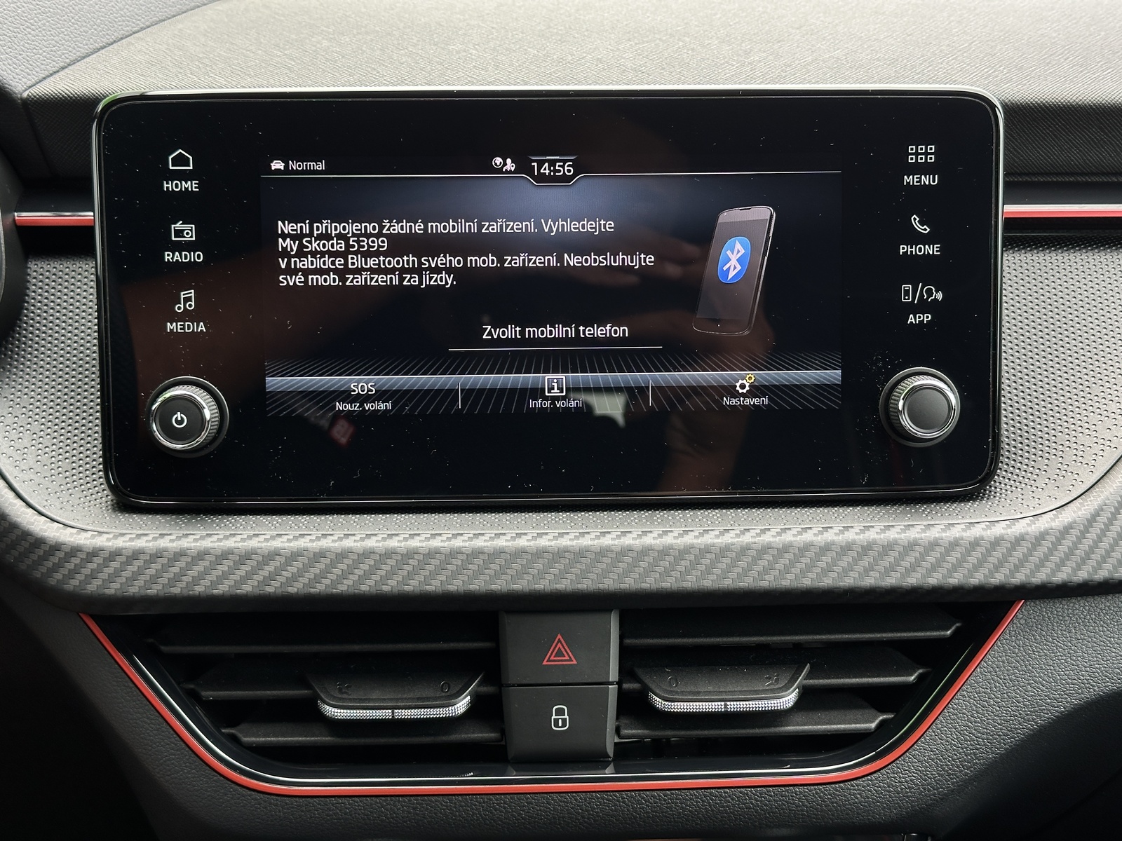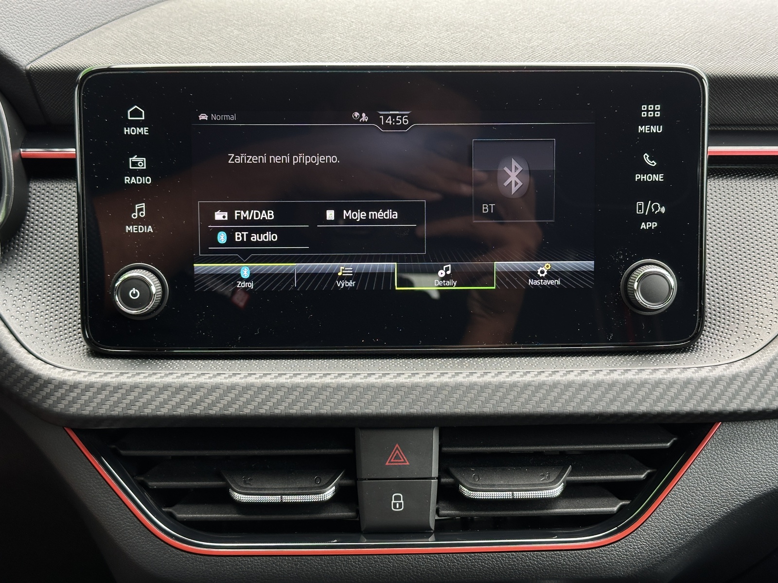 117/11011 Škoda Scala Monte Carlo 1.0TSi 85kW/116PS, 6st. Manuální převodovka, Tovární záruka Škoda Auto 5let/100.000km, Výbava vozu: Tažné zařízení sklopné - el. odjistitelné, Ocelové rezervní kolo, Matrix-LED přední světlomety, Panoramatická střecha, Interiér – sportovní Monte Carlo s černou stropnicí, Černě lakované doplňky karoserie, LED zadní světla s animovanými směrovkami, Vyhřívaný sportovní multifunkční kožený volant – pro DSG s pádly pod volantem, Sportovní kryty pedálů, Dekorativní prahové lišty, KESSY – bezklíčové odemykání a startování, Volba jízdních režimů, Zadní parkovací KAMERA, Parkovací senzory vpředu a vzadu – PDC P/Z, Mlhové světlomety, Elektricky sklopná vnější zrcátka s automatickým stmíváním, 2x USB-C vzadu, Dešťový senzor, Světelný senzor, Vnitřní zpětné zrcátko s automatickým stmíváním, Bezdrátové nabíjení pro Smartphone, Zadní loketní opěrka, Loketní opěrka s Jumbo Boxem vpředu, Dvouzónová automatická klimatizace Climatronic, Vyhřívaná přední sedadla, Bederní opěrky na předních sedadlech, Výškově nastavitelná sedadla řidiče a spolujezdce, Kožená hlavice řadicí páky a madlo ruční brzdy, Vyhřívané trysky ostřikovačů, Elektrické ovládání oken vpředu i vzadu, 12V zásuvka vpředu a vzadu, 2x USB-C, 8 reproduktorů, Bluetooth, 4 reproduktory, DAB, Bezdrátový Smartlink - zrcadlení aplikací z telefonu do Infotainmentu vozidla, Front Assist – varování a brzdění při hrozící kolizi s vozidly, chodci a cyklisty, Rozpoznávání dopravních značek, Upozornění na únavu řidiče, Asistent rozjezdu do kopce, Virtual Cockpit , 6x airbag, 3x Isofix a Top Tether, Deaktivace airbagu spolujezdce, Nouzový volání SOS eCall+, Potah sedadel – látka, Sunset – zatmavená zadní okna, Servisní kniha + dokumentace Škoda Auto, Možnost odpočtu DPH 21%, Skladem - ihned k odběru.